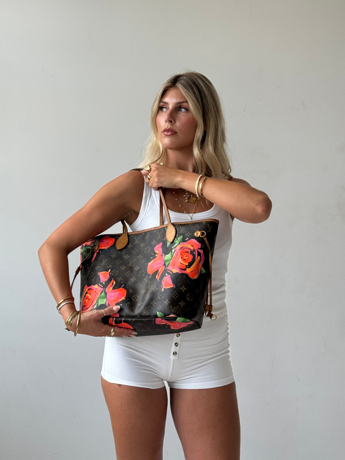 Limited Edition Louis Vuitton x Stephen Sprouse Roses Neverfull MM Handbag