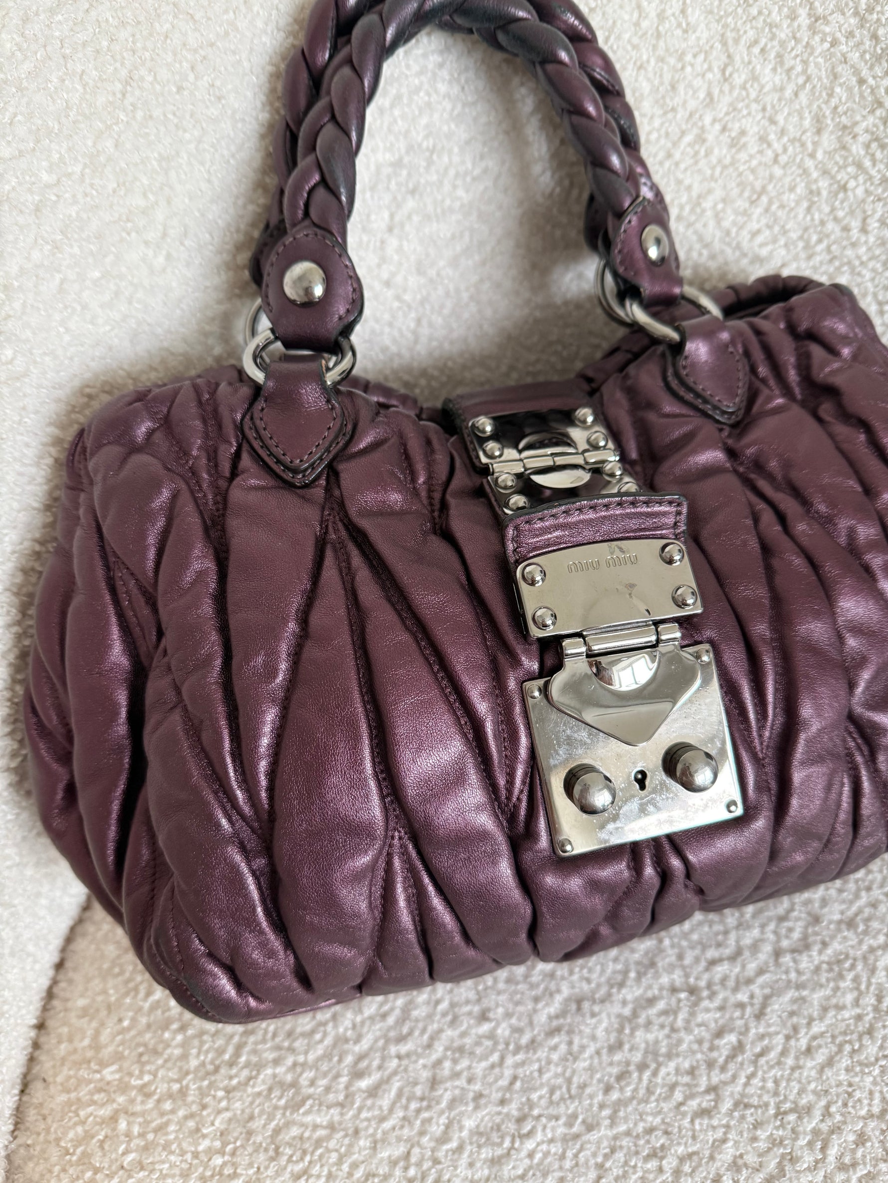 2010s Miu Miu Matelasse Coffer Hobo Handbag