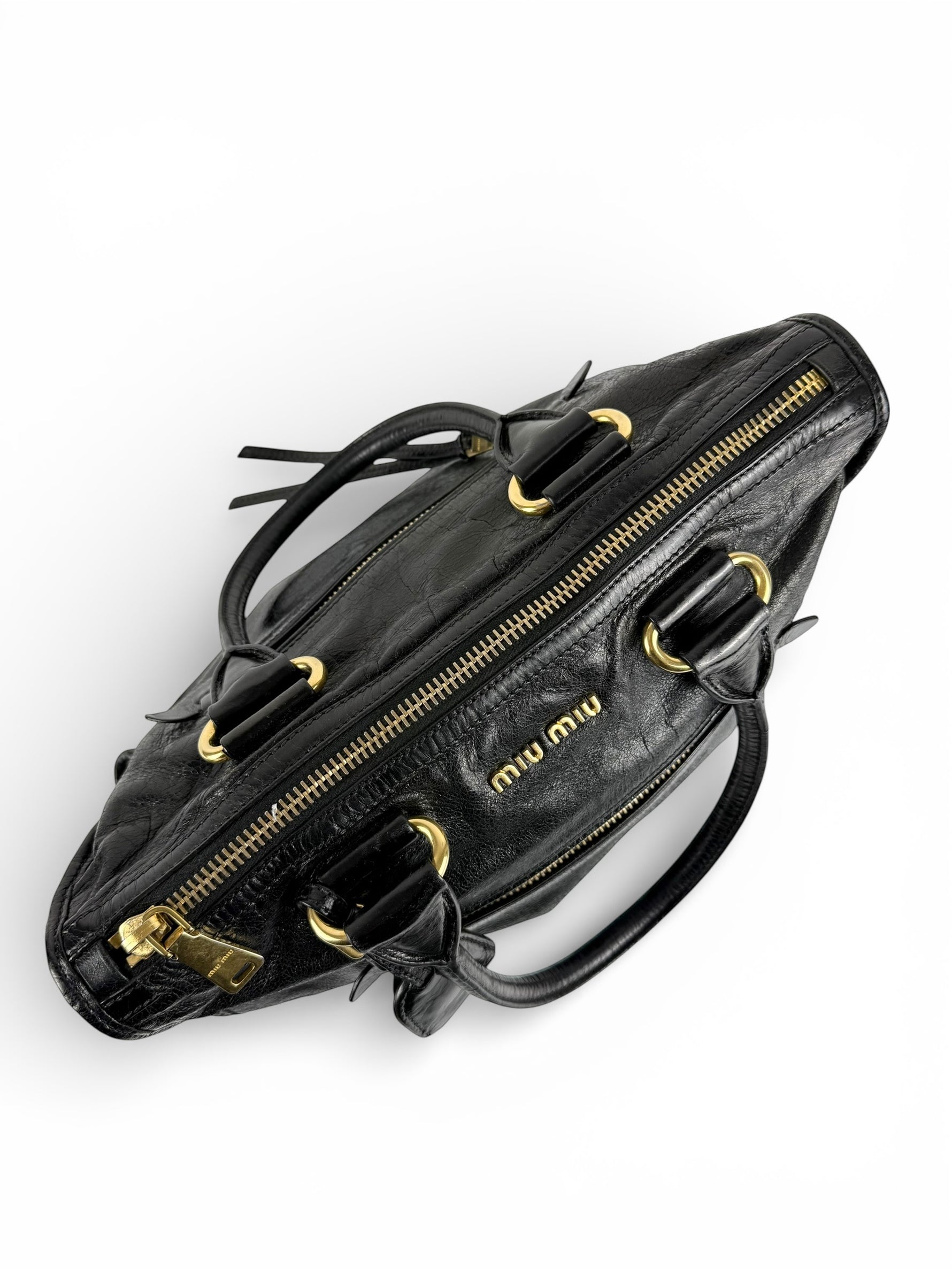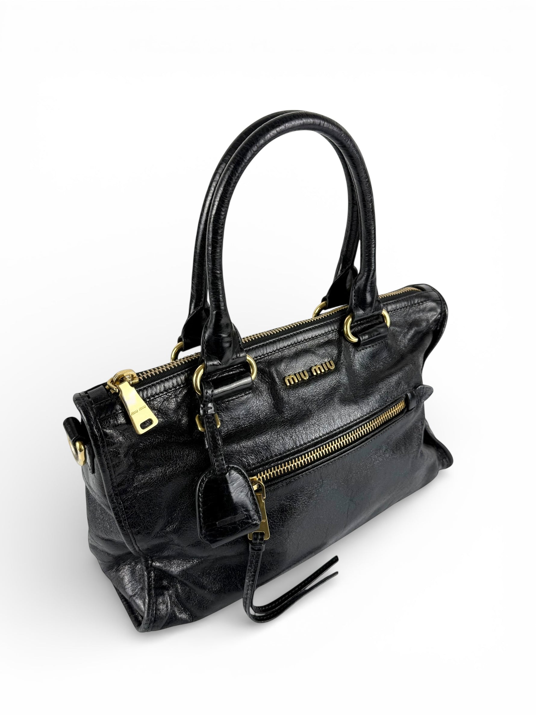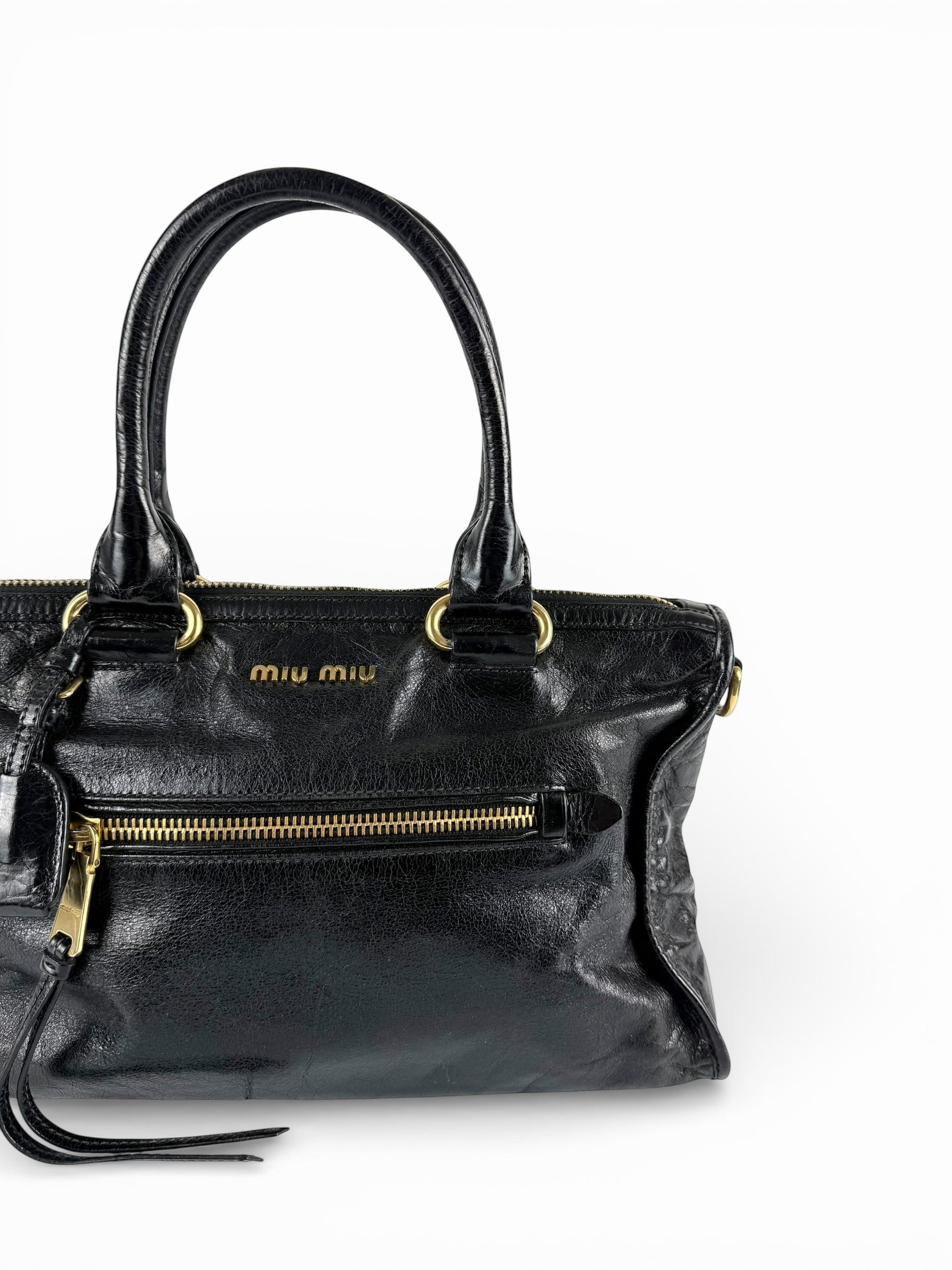 2010s Miu Miu Vitello Shine Black Handbag