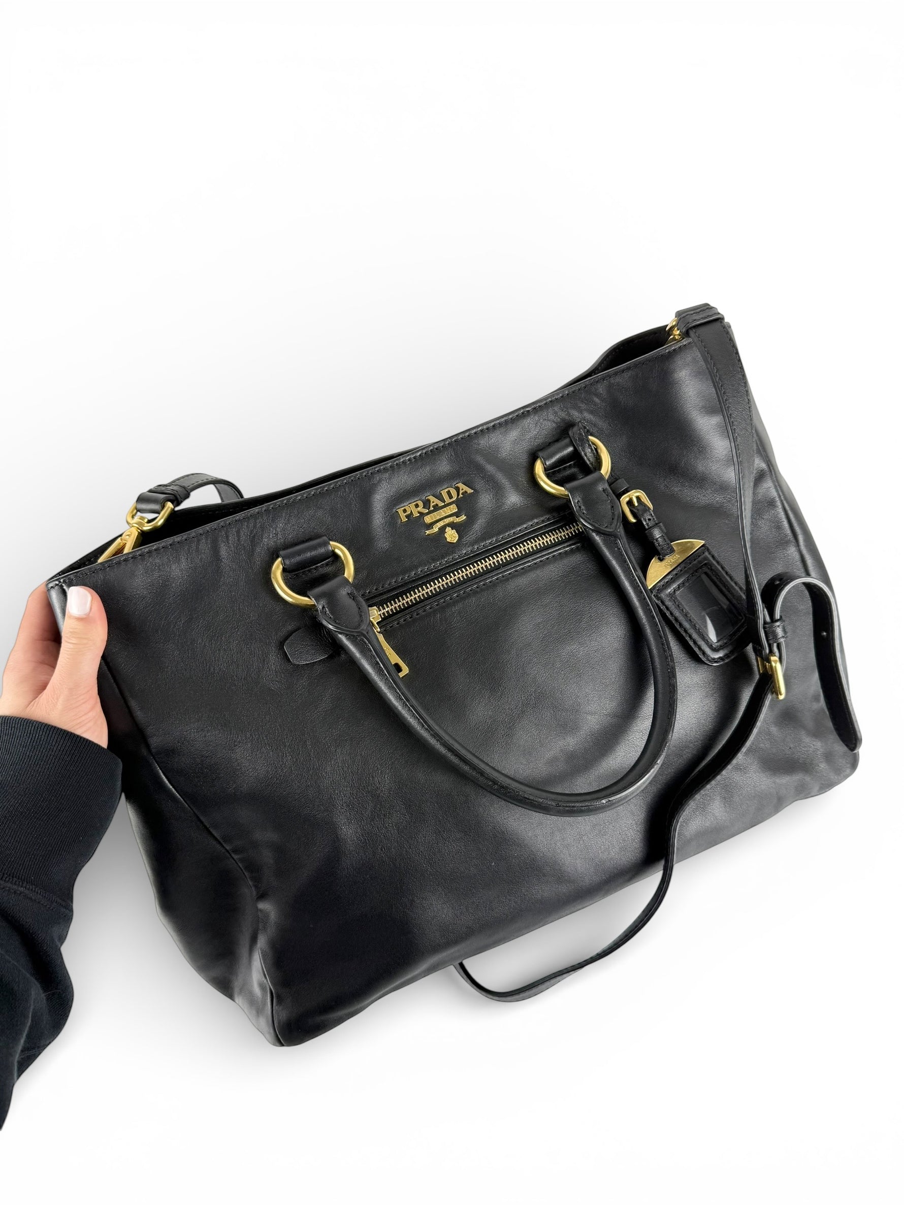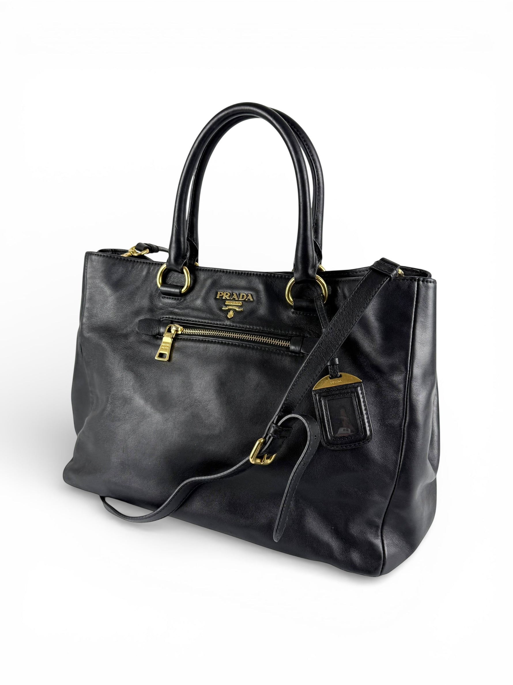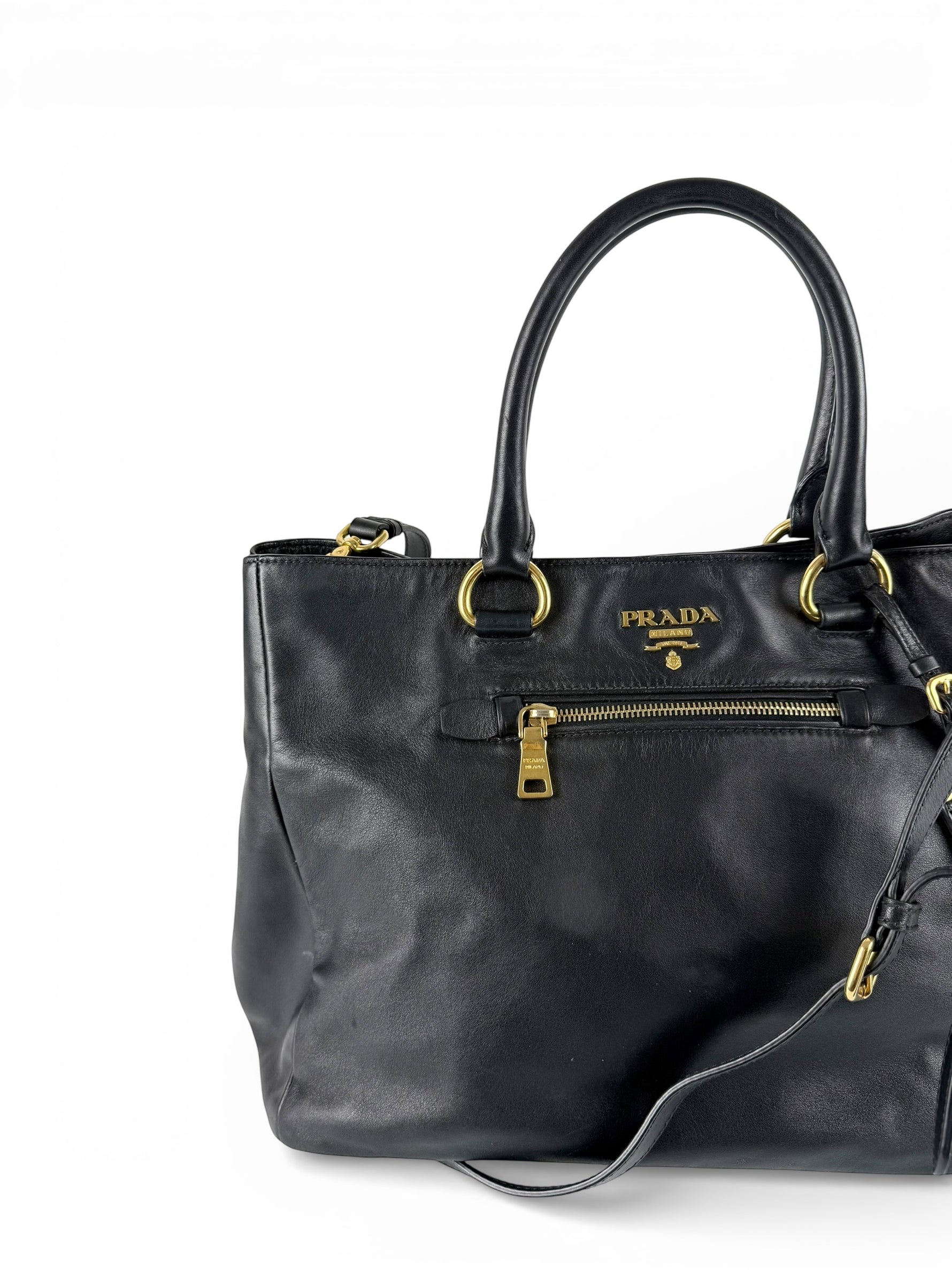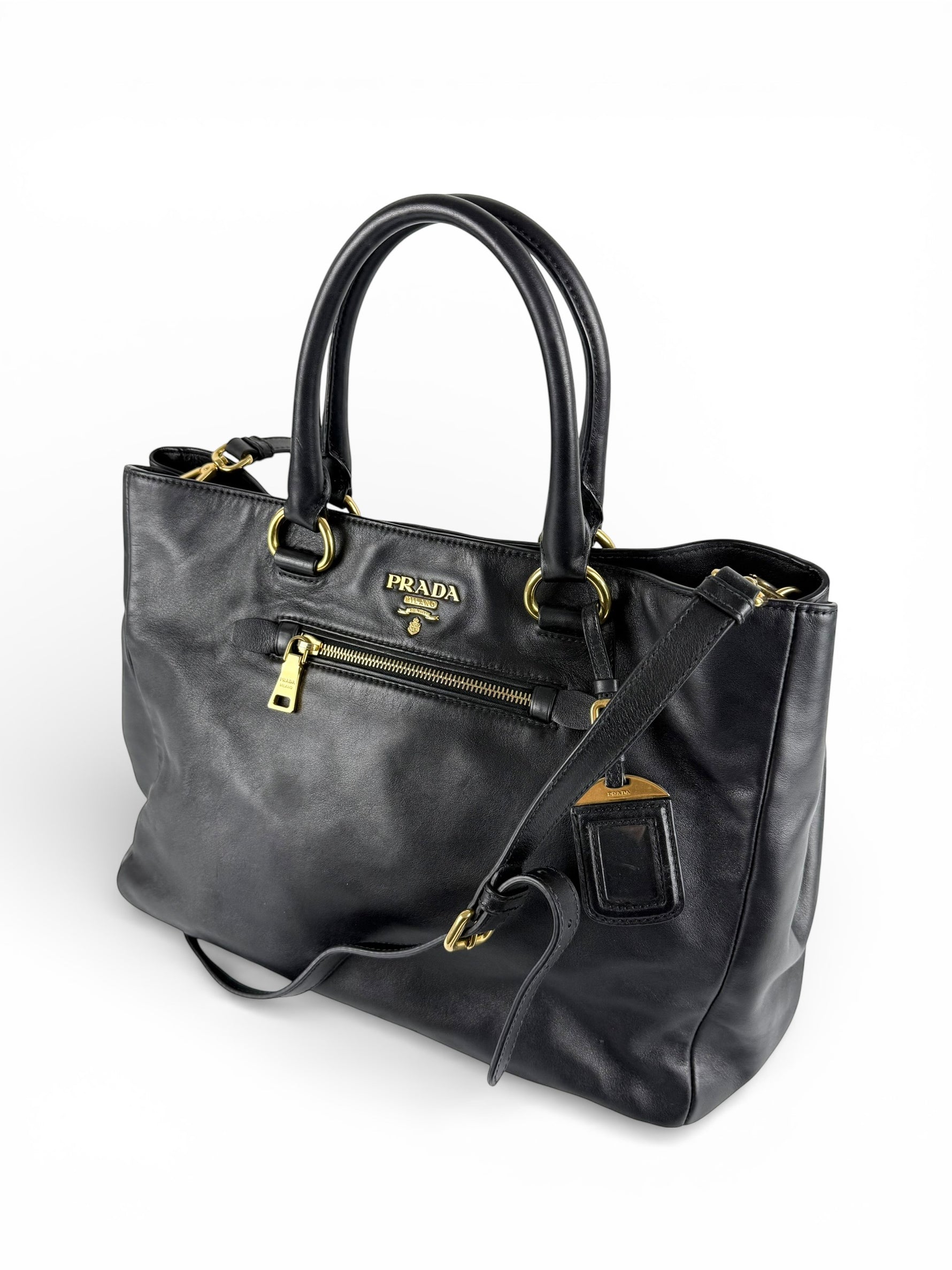 2010s Prada Nappa Leather 2Way Black Tote Bag