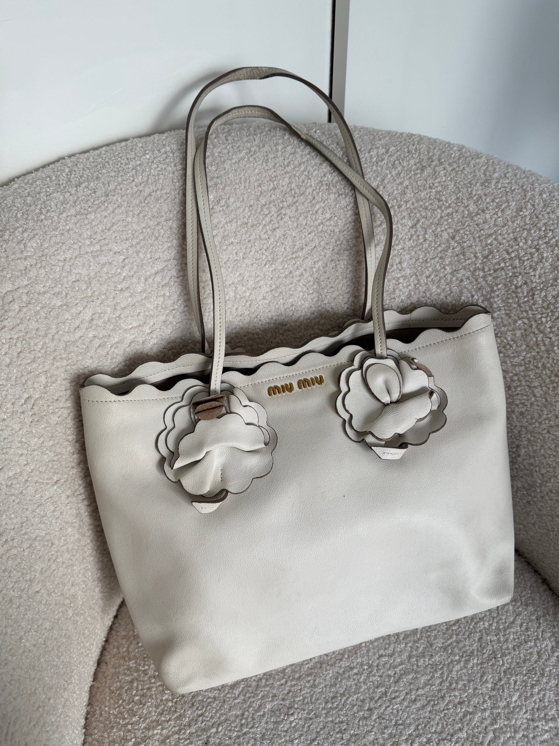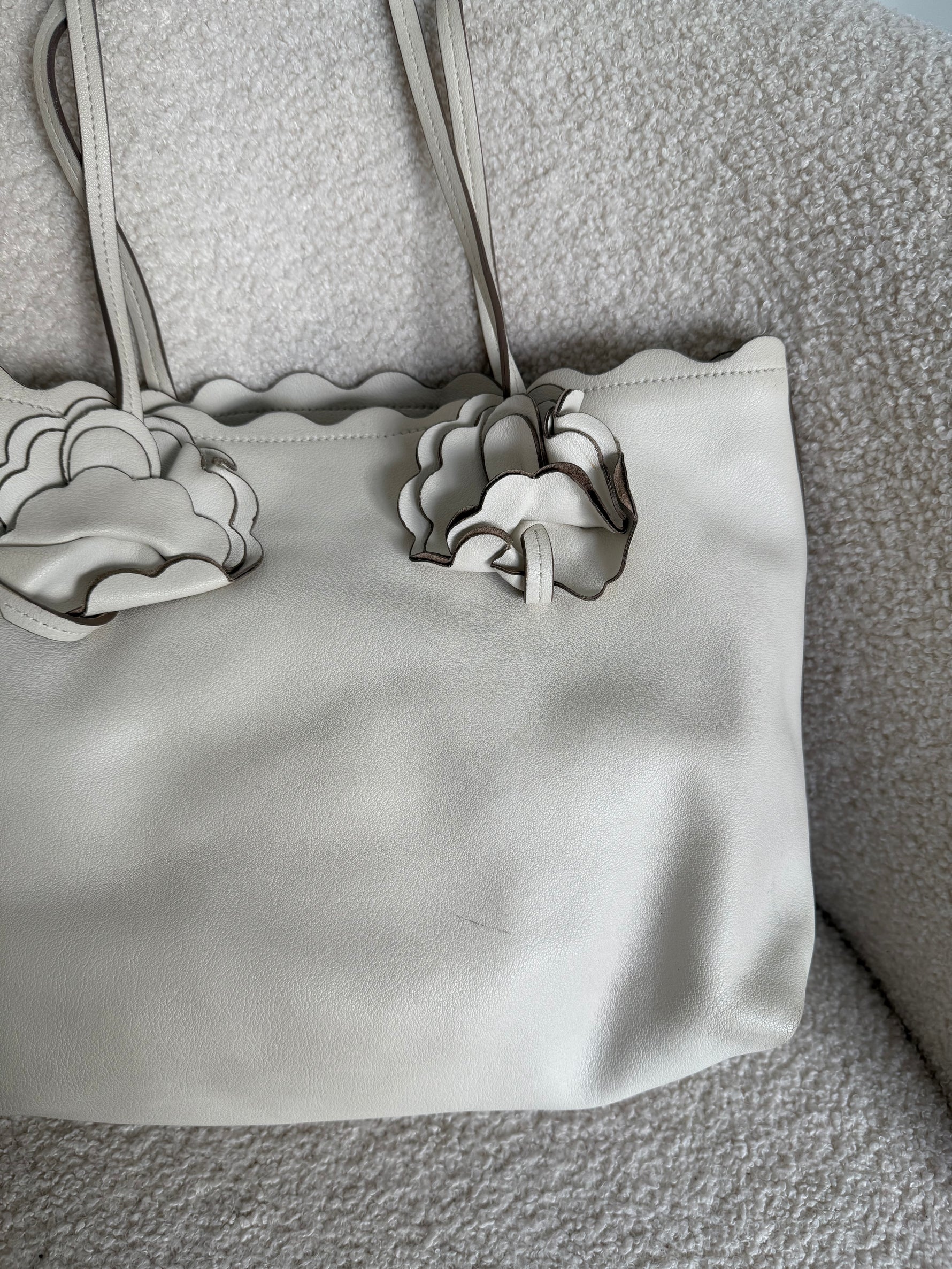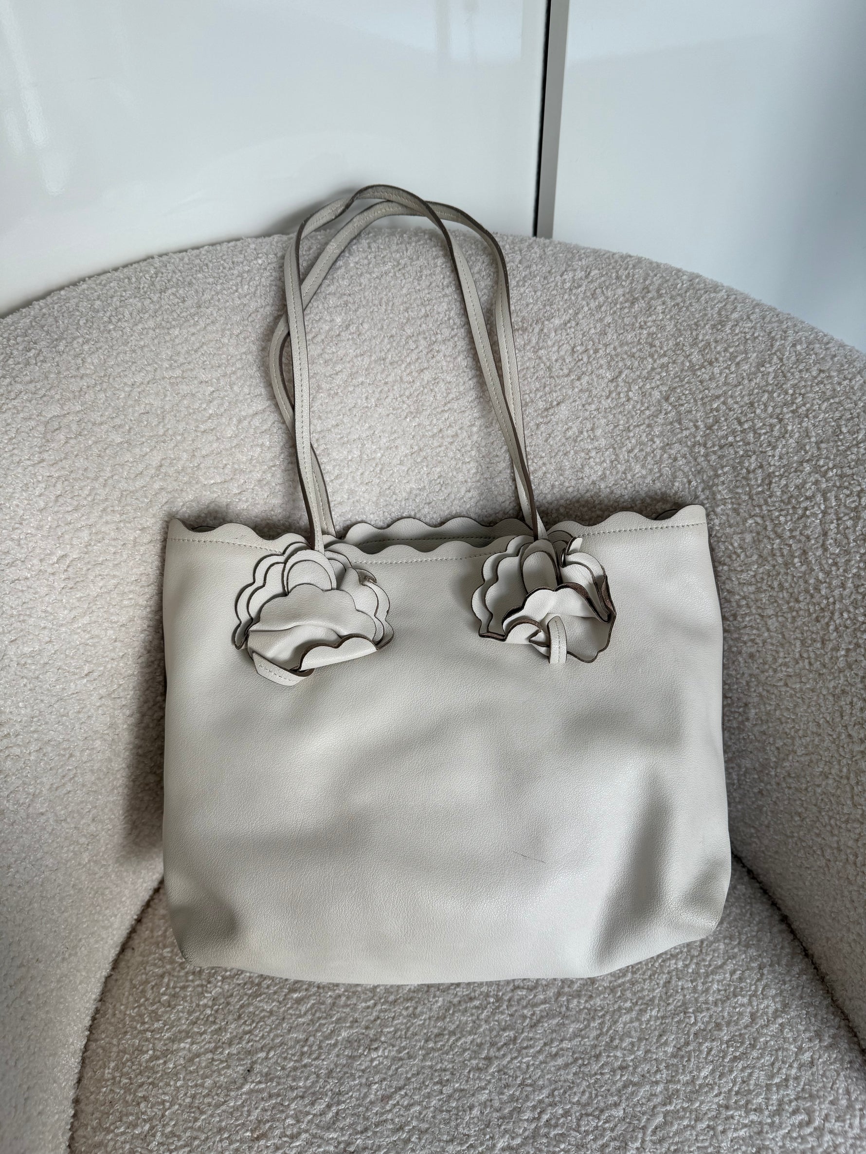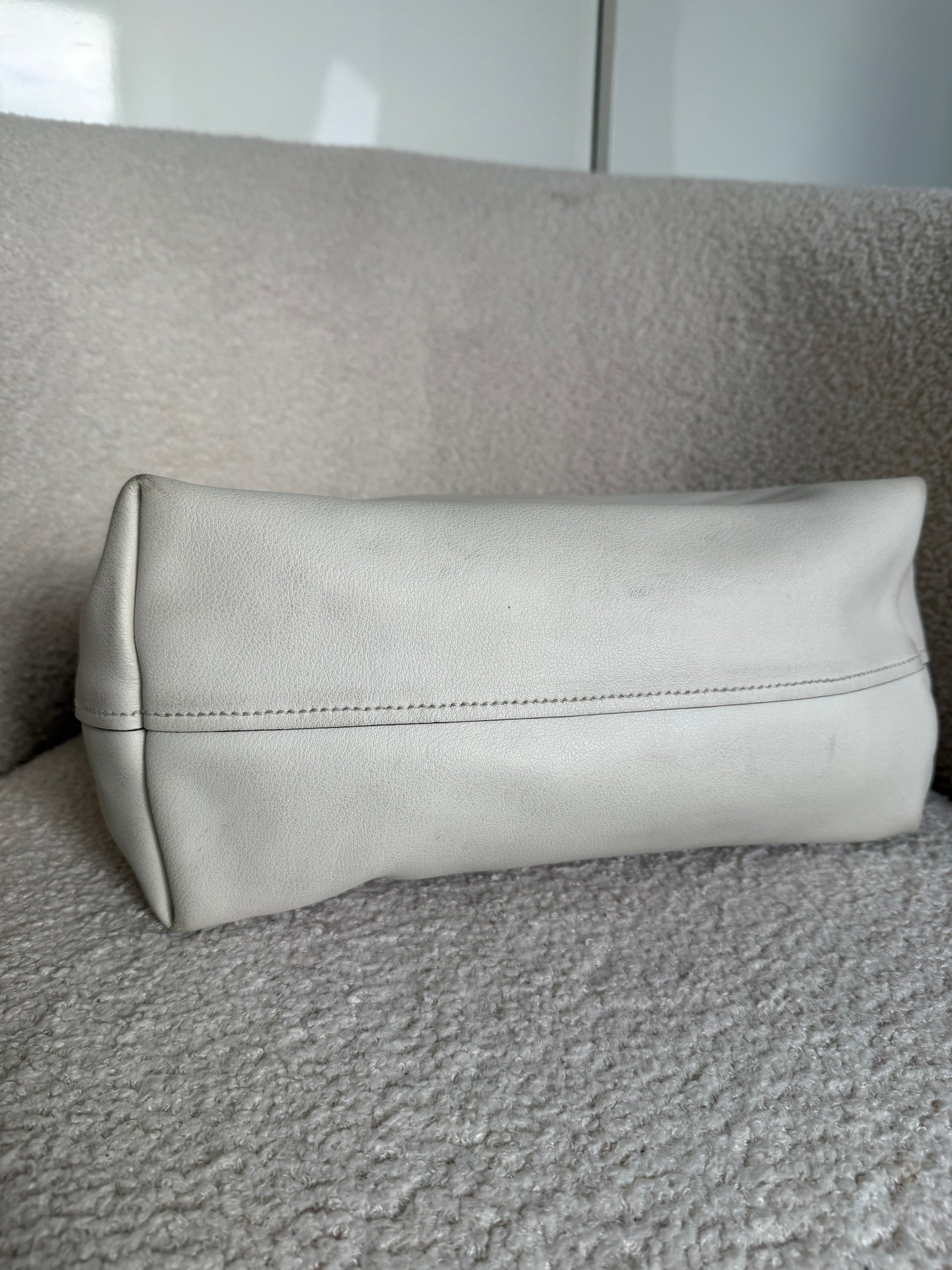 Outside: couple of tiny marks. Colour on the handles is a little worn.  The magnetic closure clasp doesn’t work, but could be replaced.