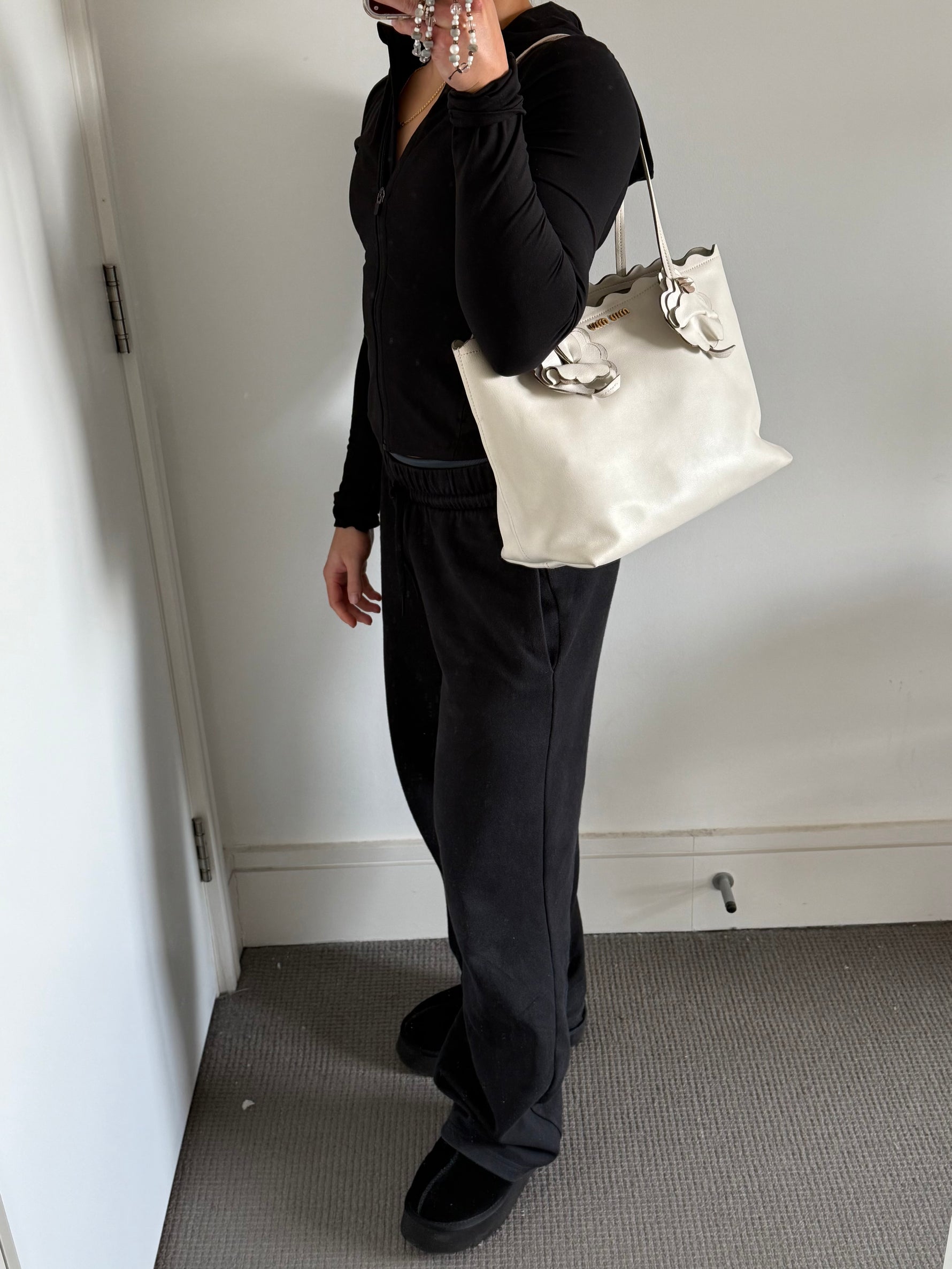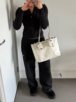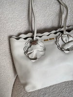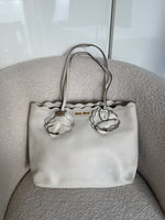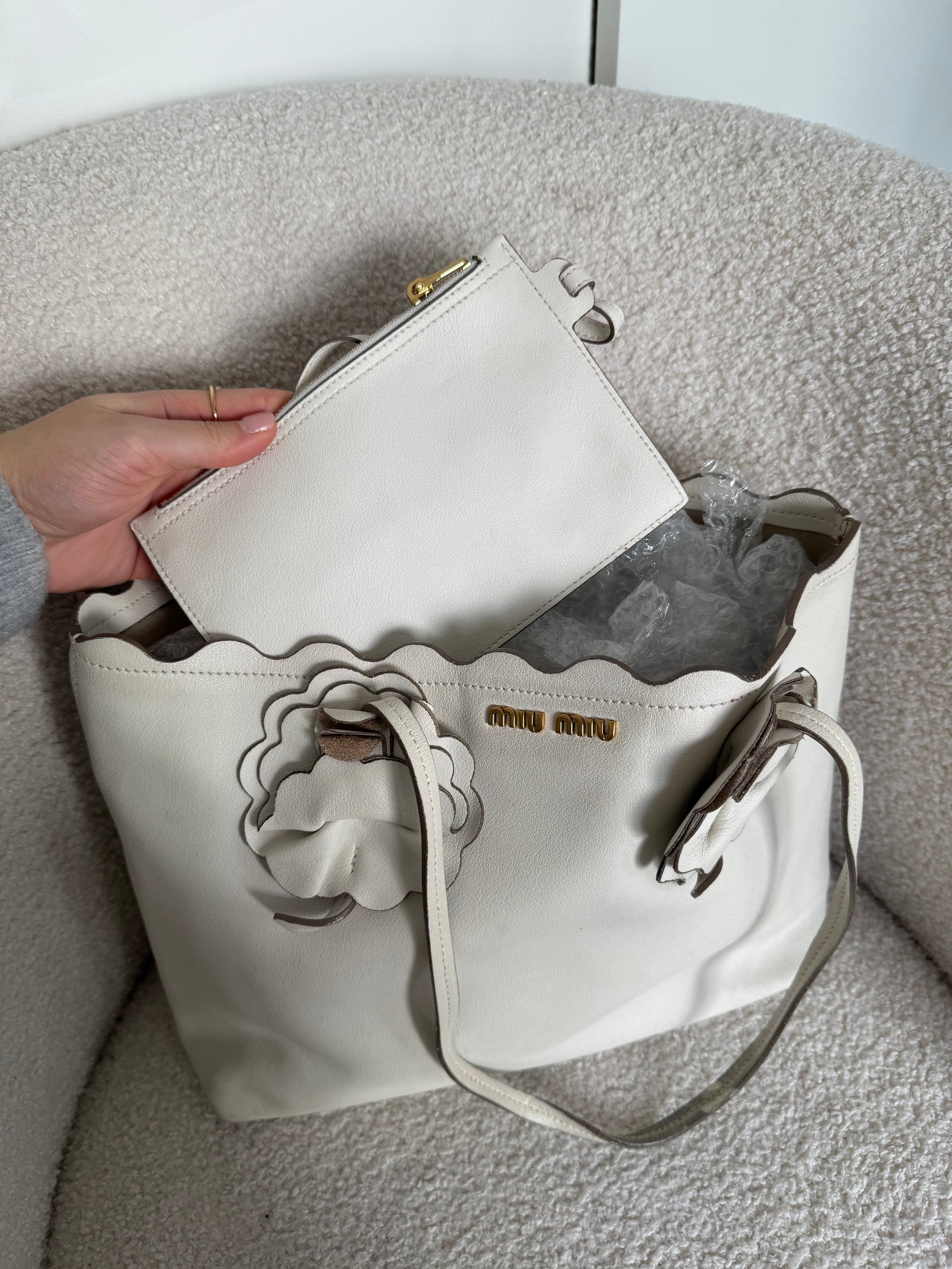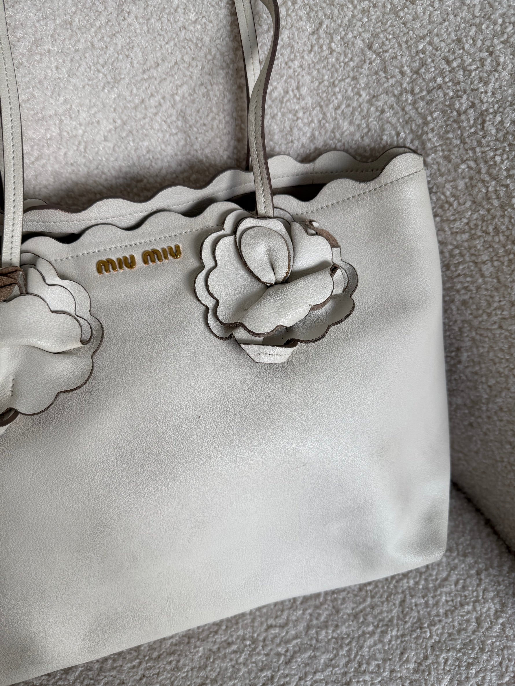 Outside: couple of tiny marks. Colour on the handles is a little worn.  The magnetic closure clasp doesn’t work, but could be replaced.