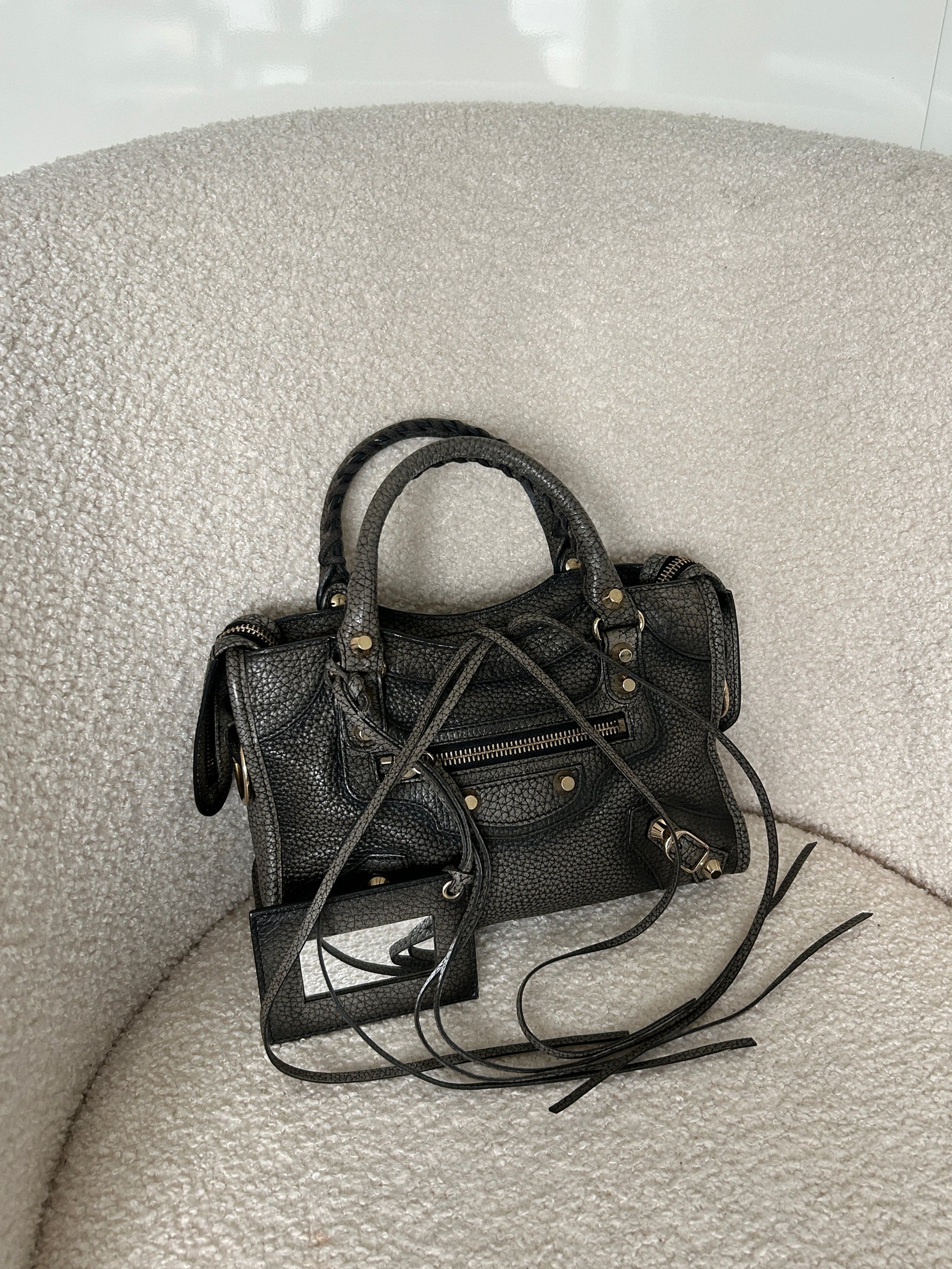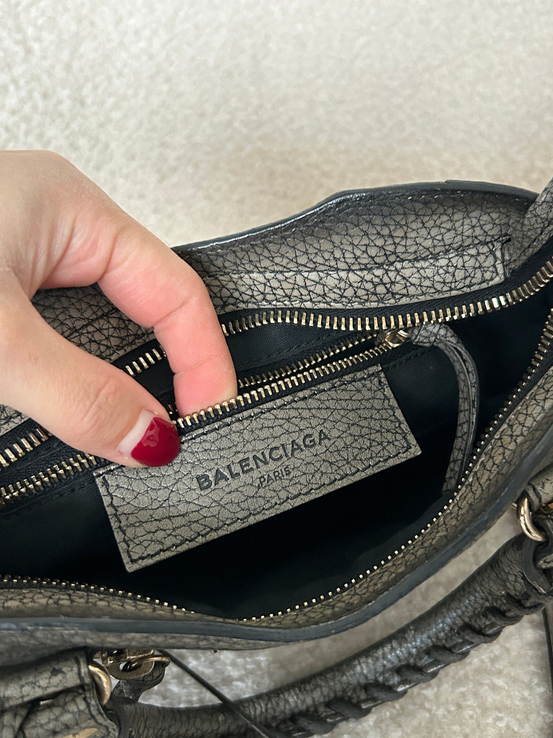 Outside: excellent condition throughout. A few small scratches on the mirror which aren’t noticeable. Note, the style of this bag is distressed.