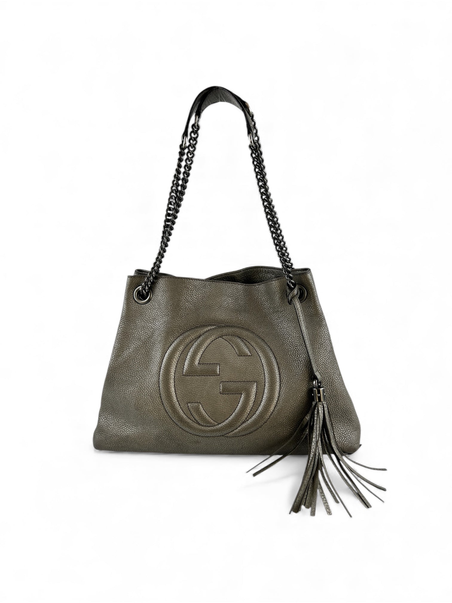 Gucci 2012 Gunmetal Metallic Soho Chain Tassel Shoulder Bag