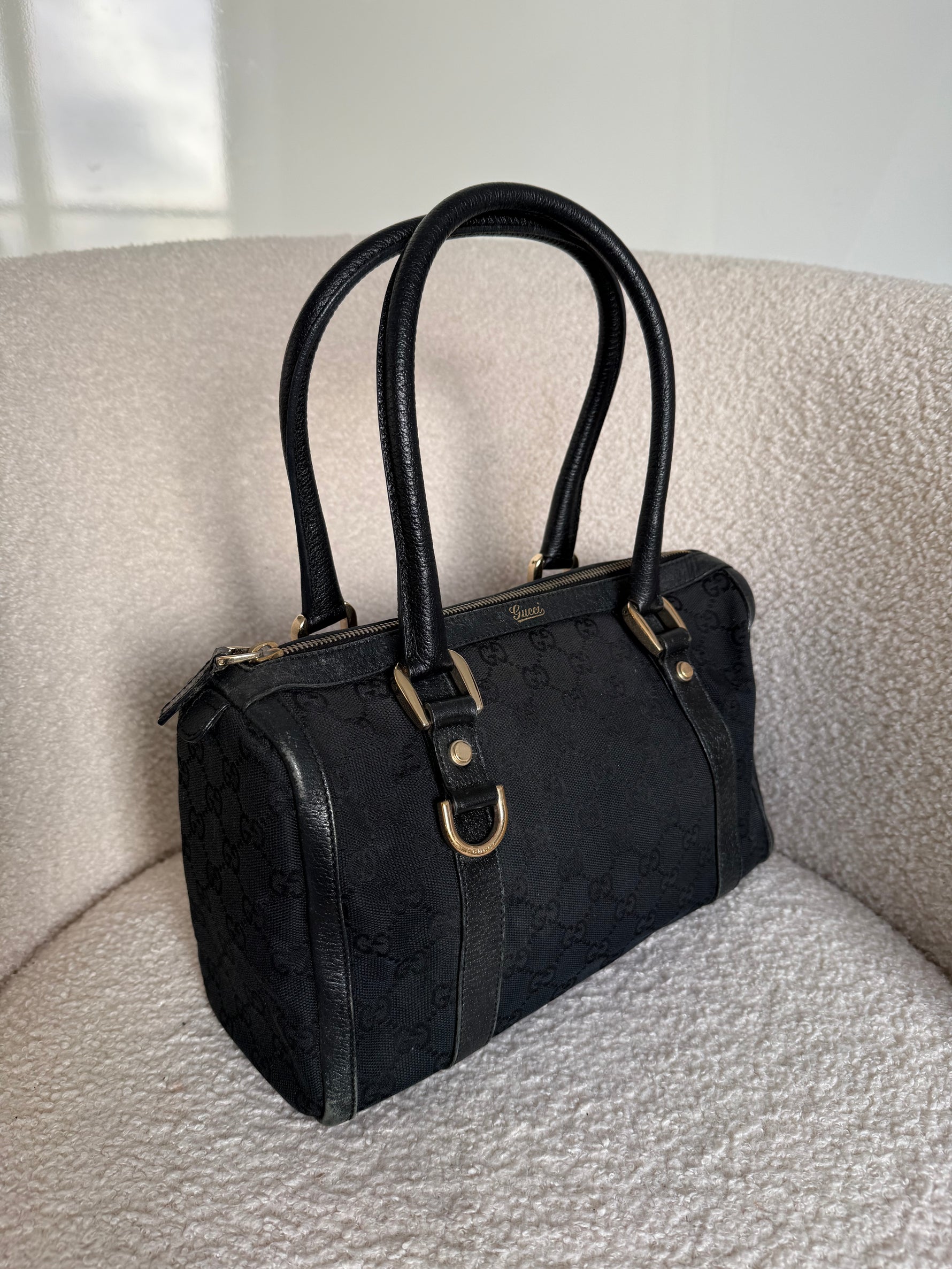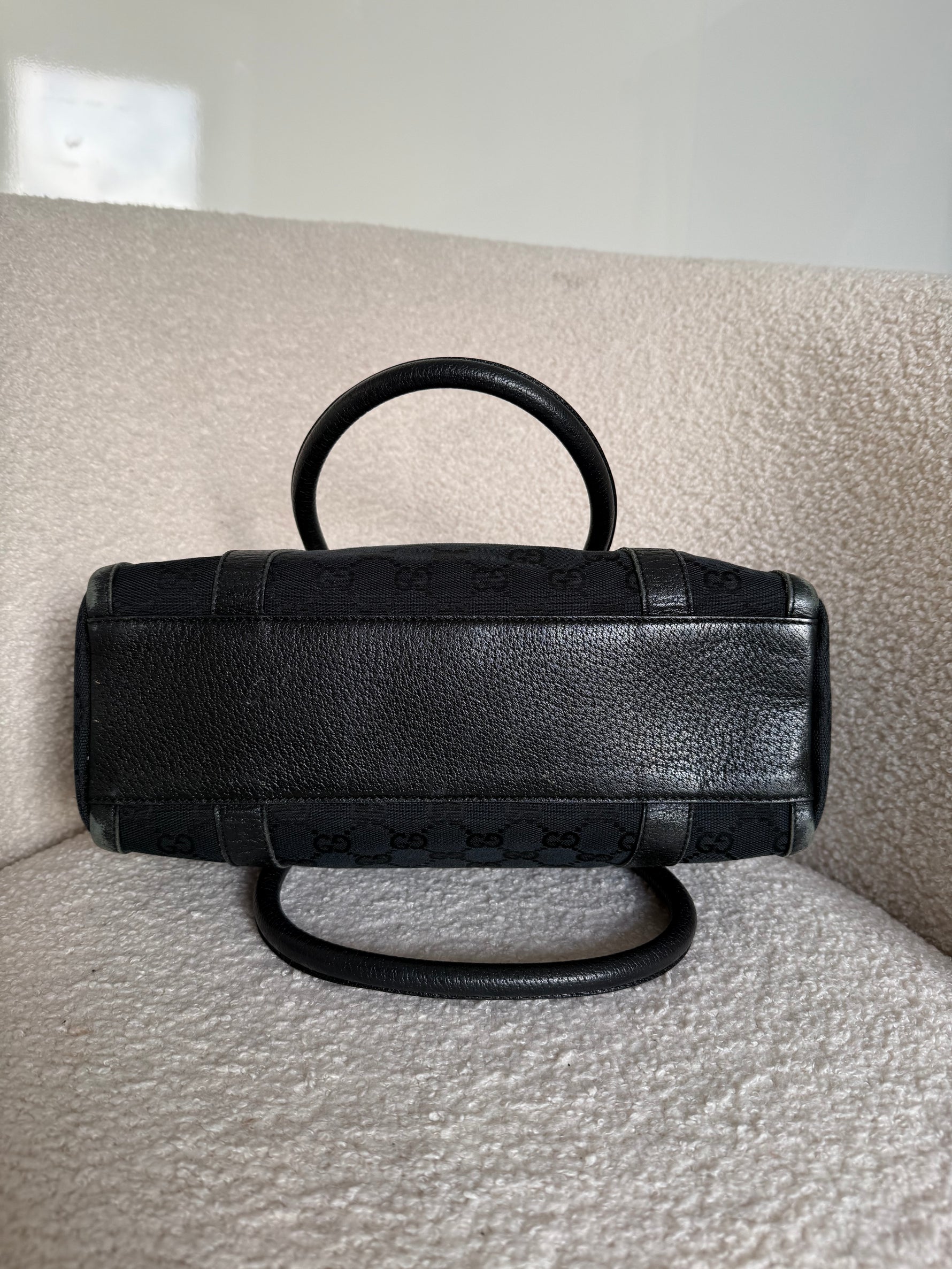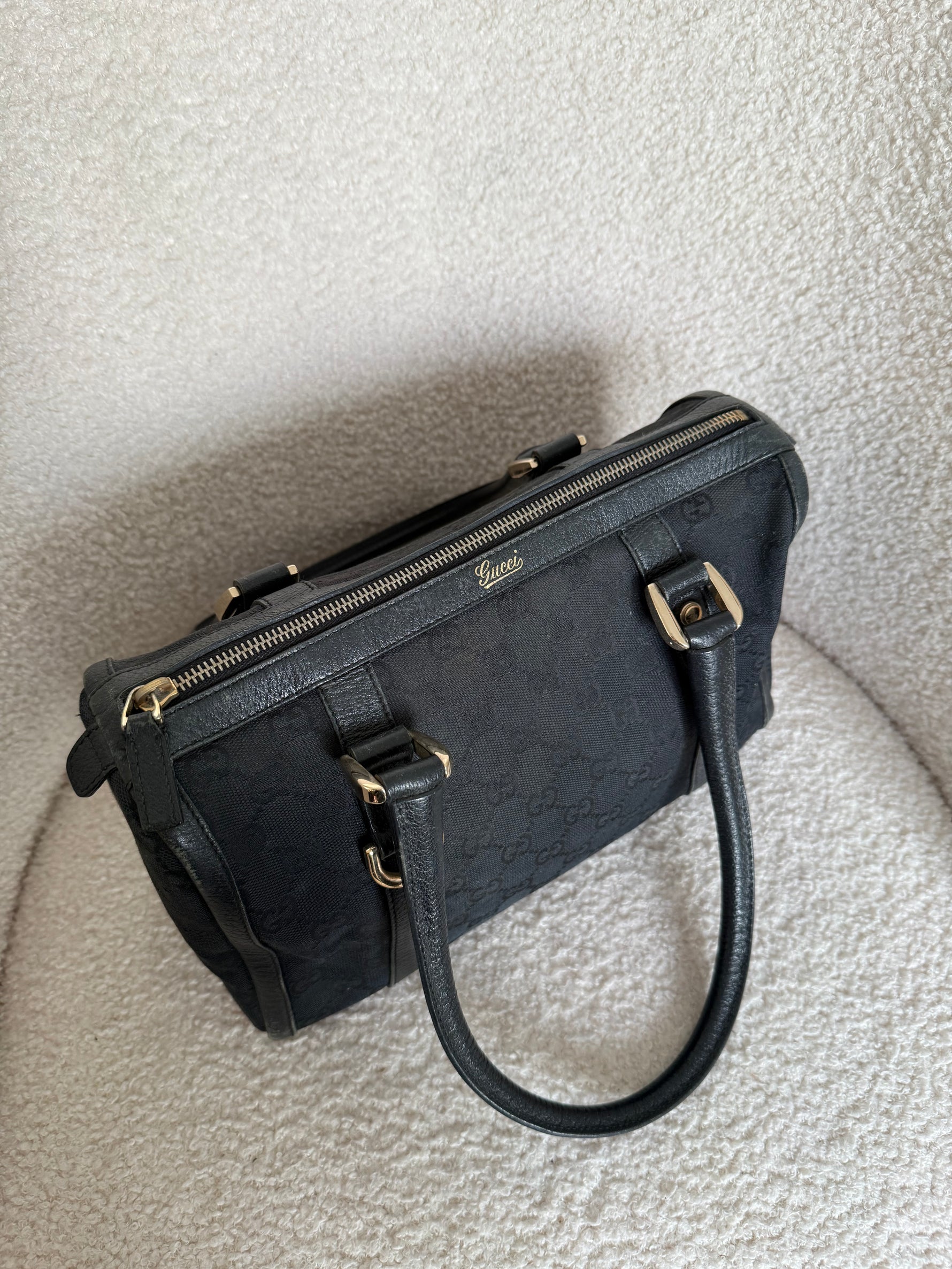 Vintage 90s Gucci Black Monogram Boston Handbag