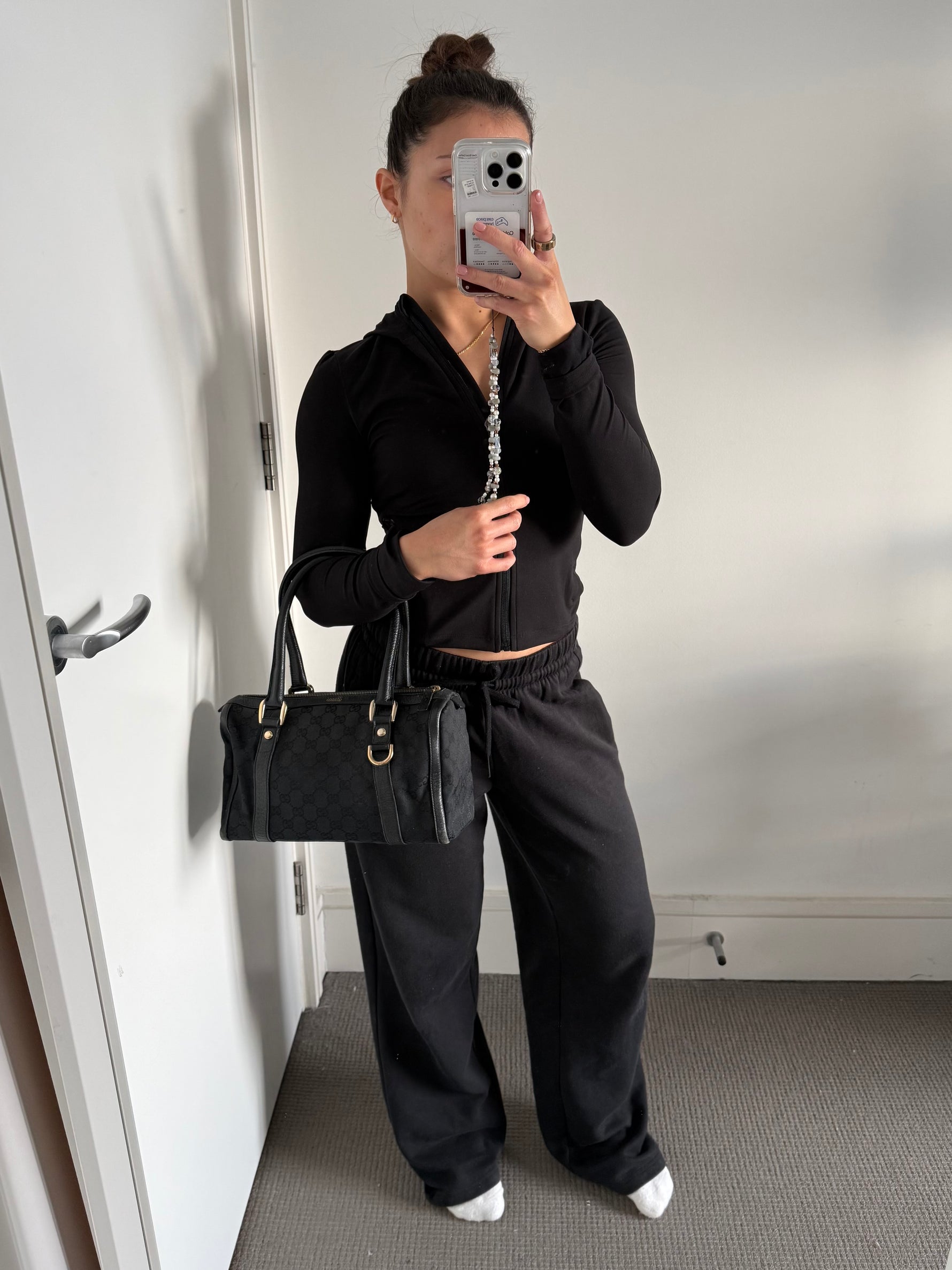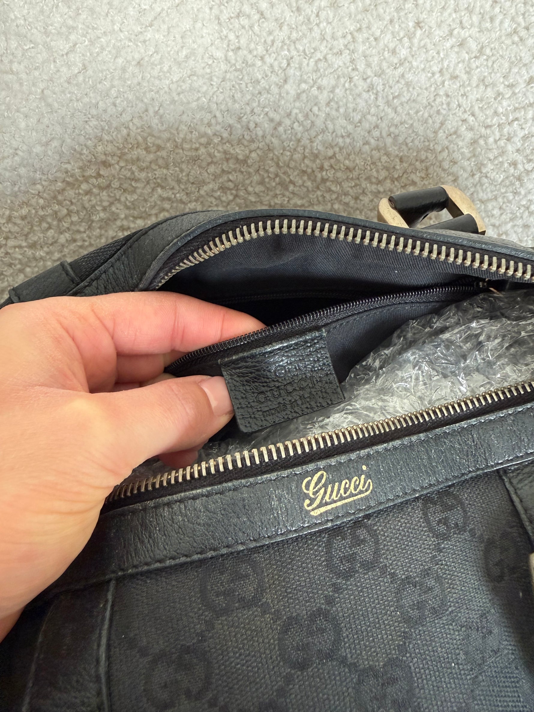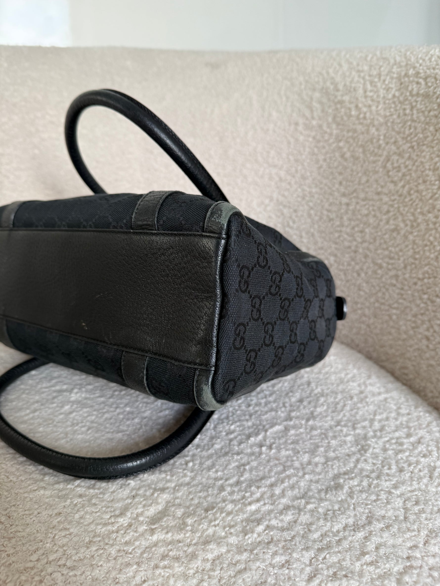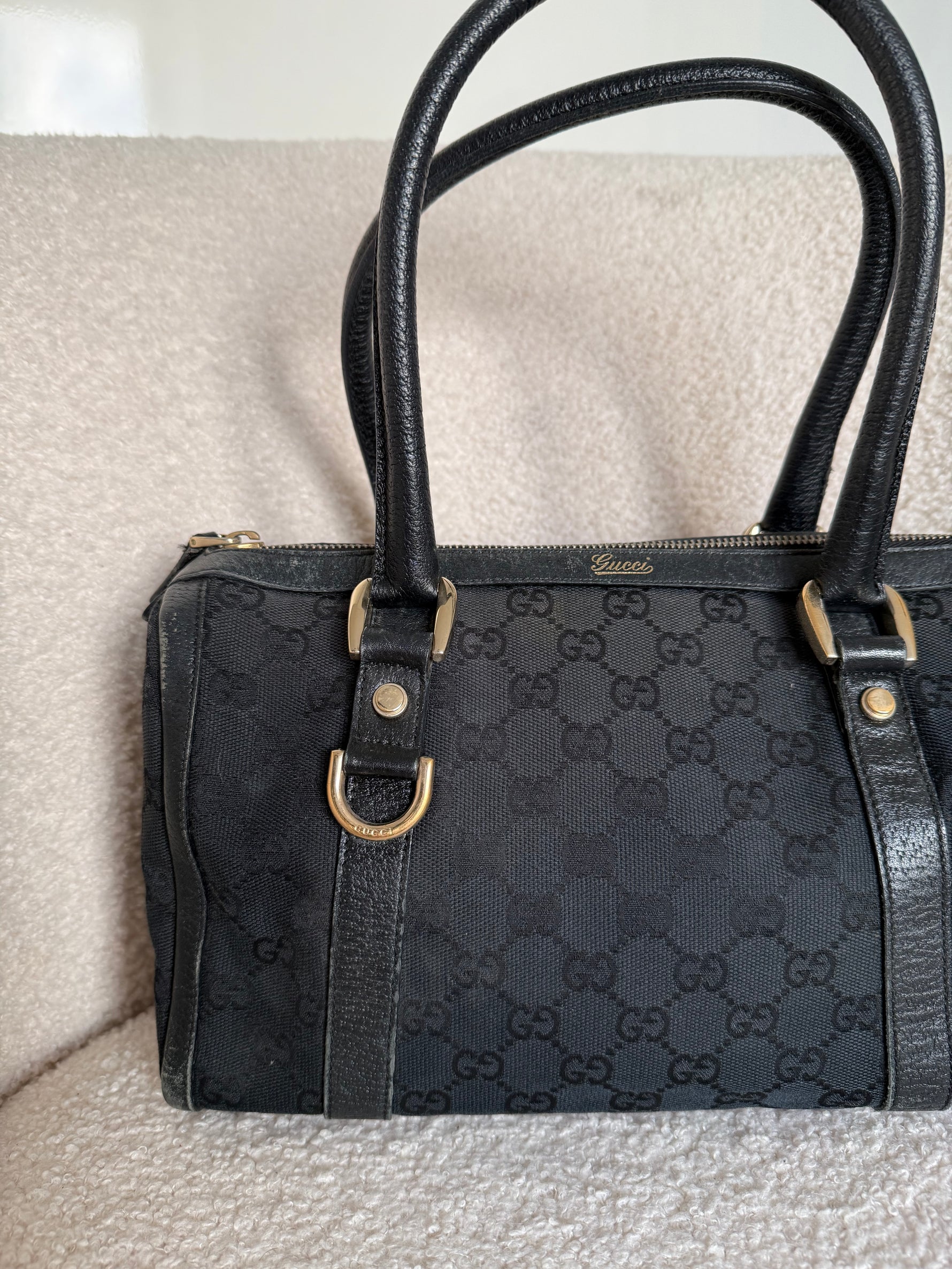 Vintage 90s Gucci Black Monogram Boston Handbag