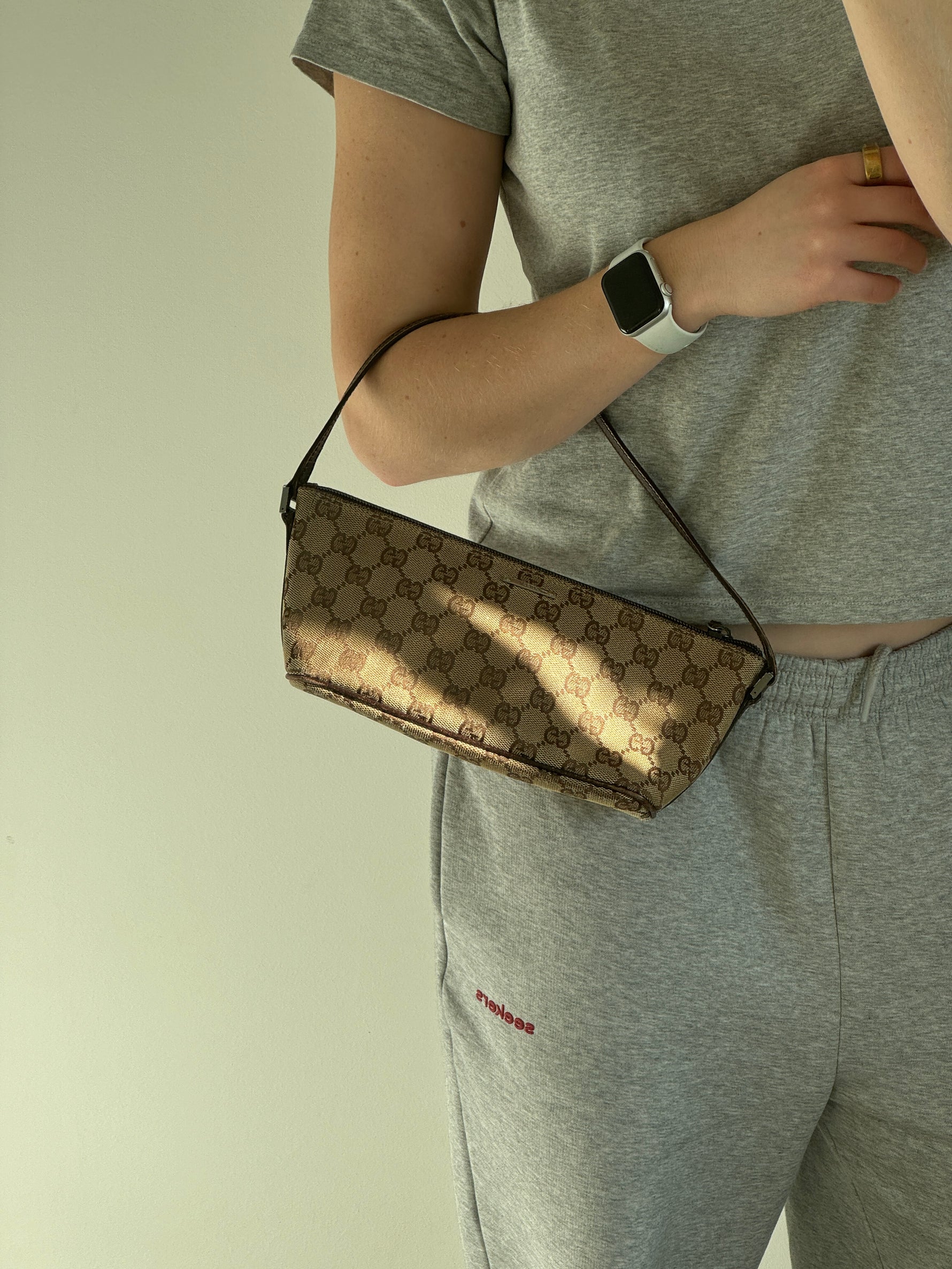 Vintage 90s Gucci Monogram Pochette Boat Bag