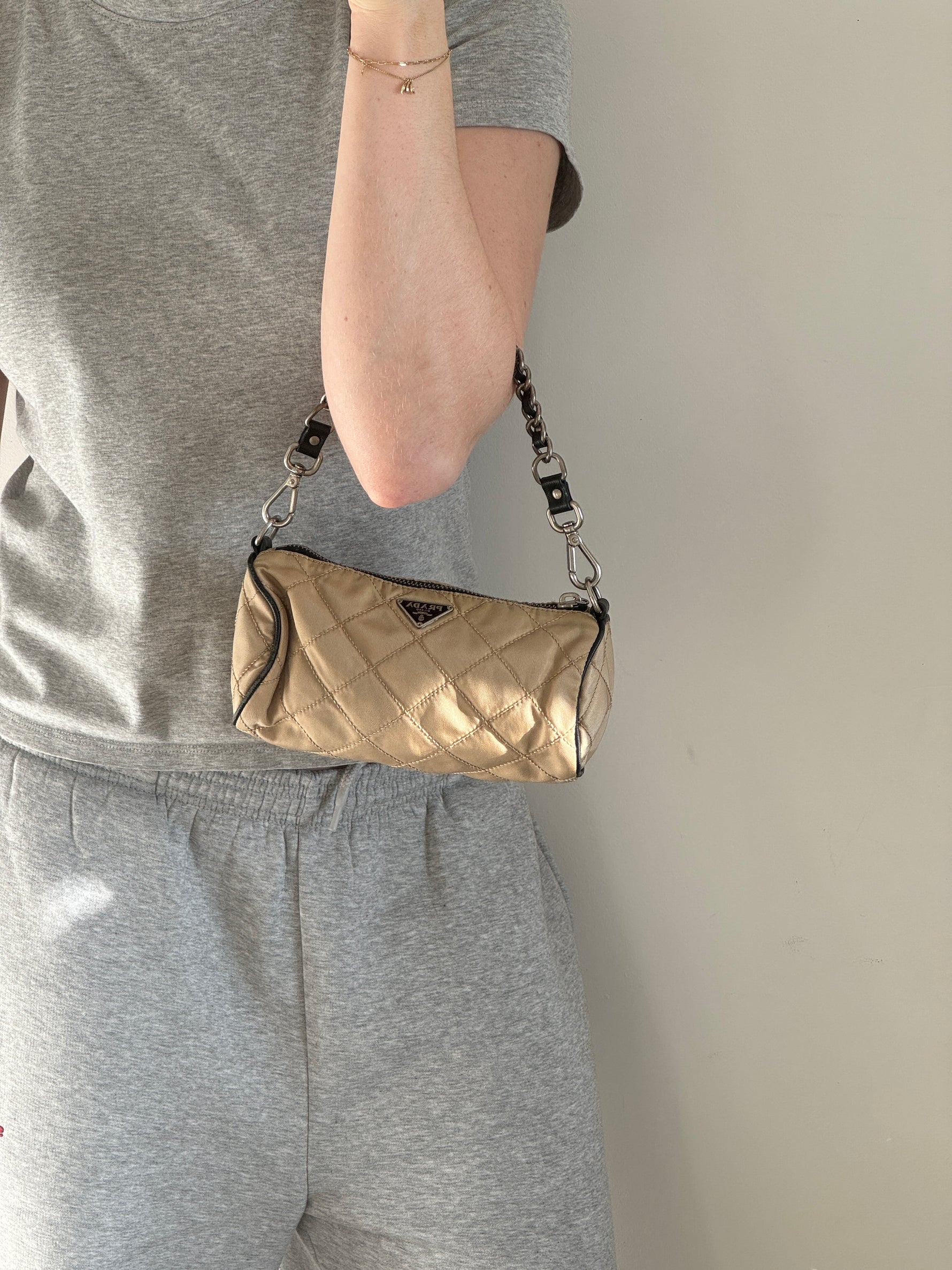 Vintage 90s Prada Quilted Nylon Barrel Mini Shoulder Bag