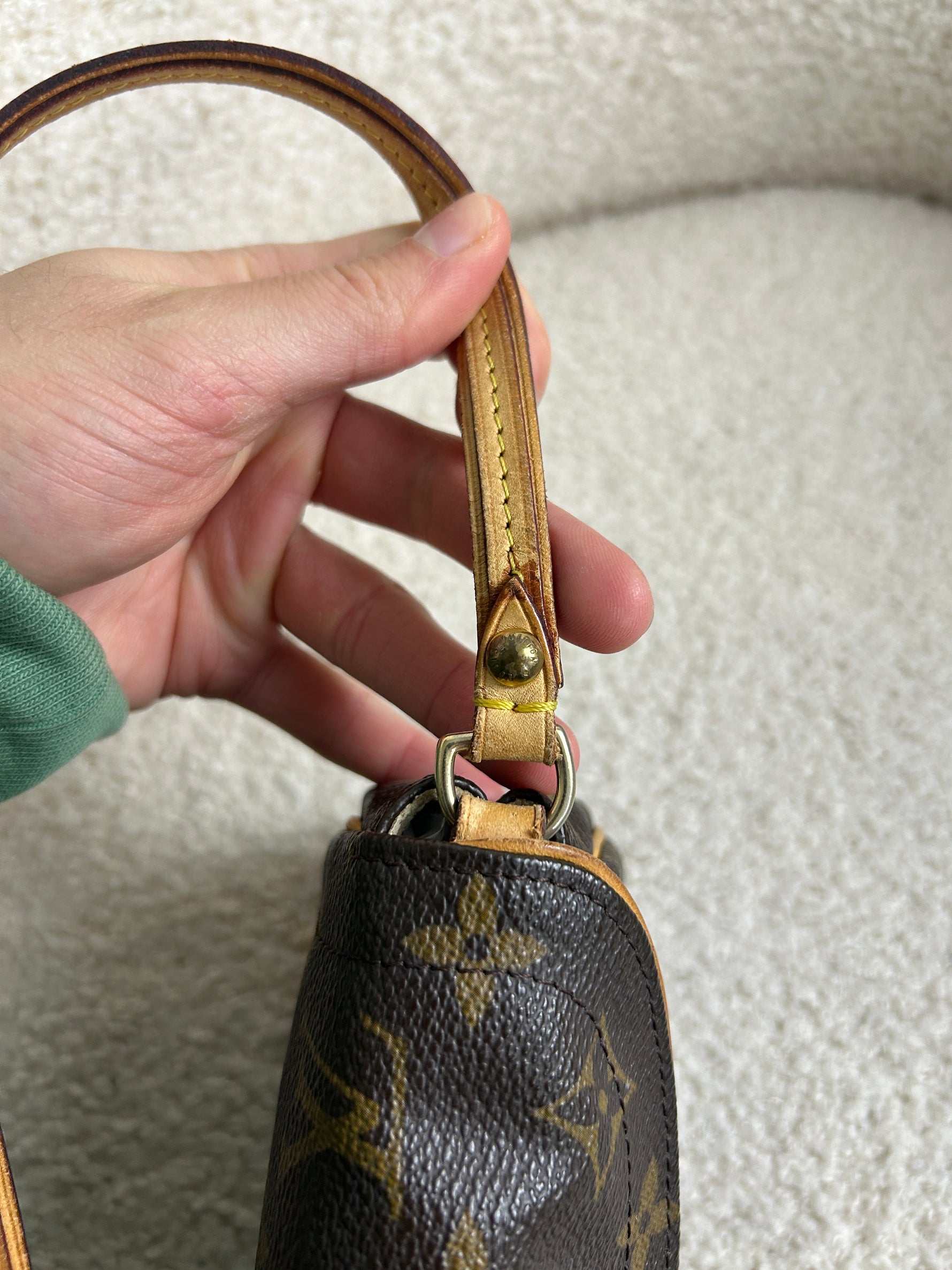 Outside: Very good, a few small marks on the bag, LV buckle beginning to very slightly tarnish. Strap is a little worn.