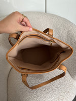 Outside: very tiny watermarks on handles and base. Hardware studs on the base of the bag are tarnished.