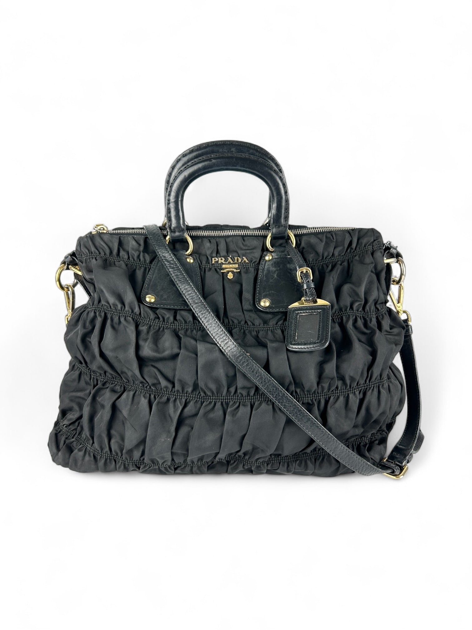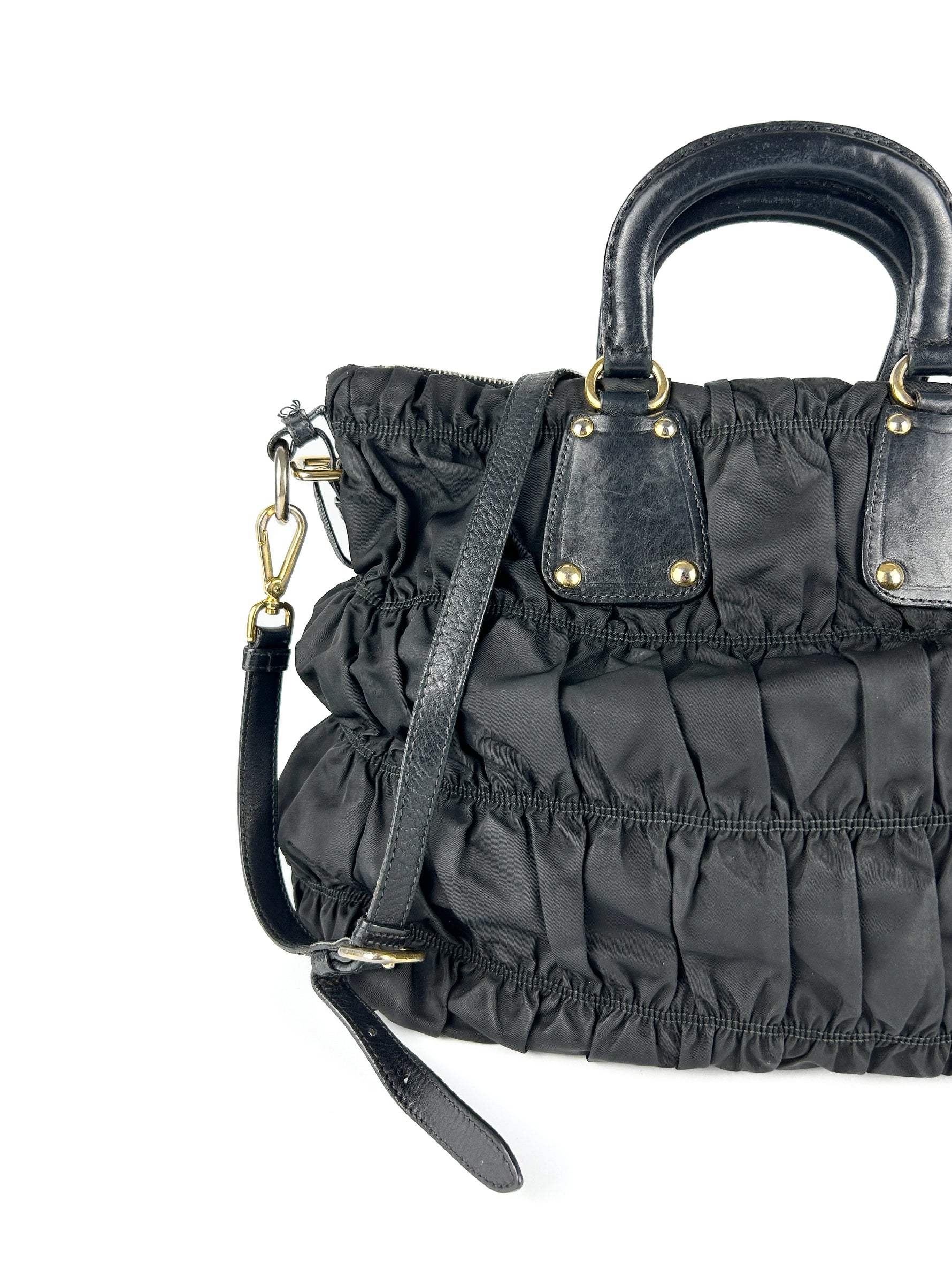 Vintage Prada Nylon Tessuto 2way Black Satchel Bag 2000s