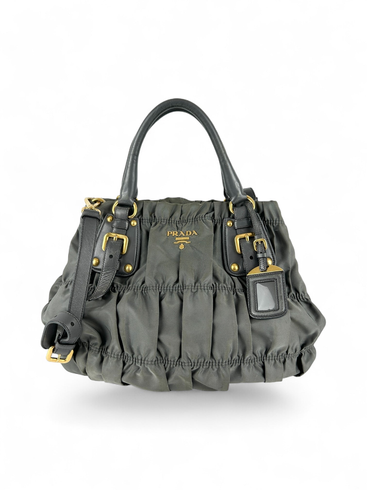 Vintage Prada Tessuto Nylon Grey 2way Satchel Bag 2000s