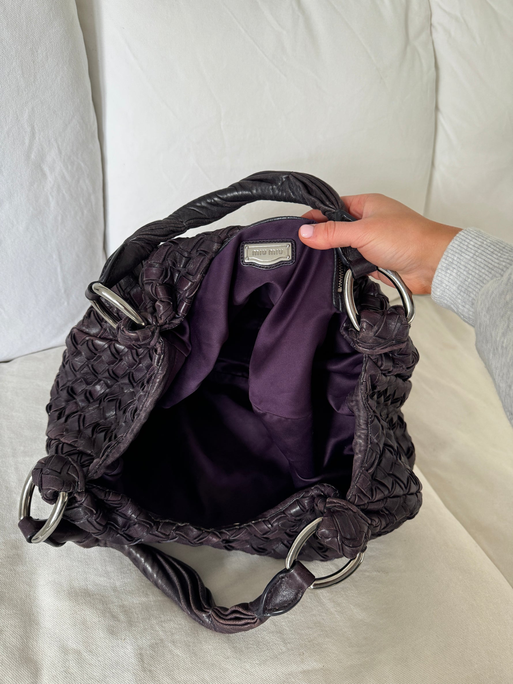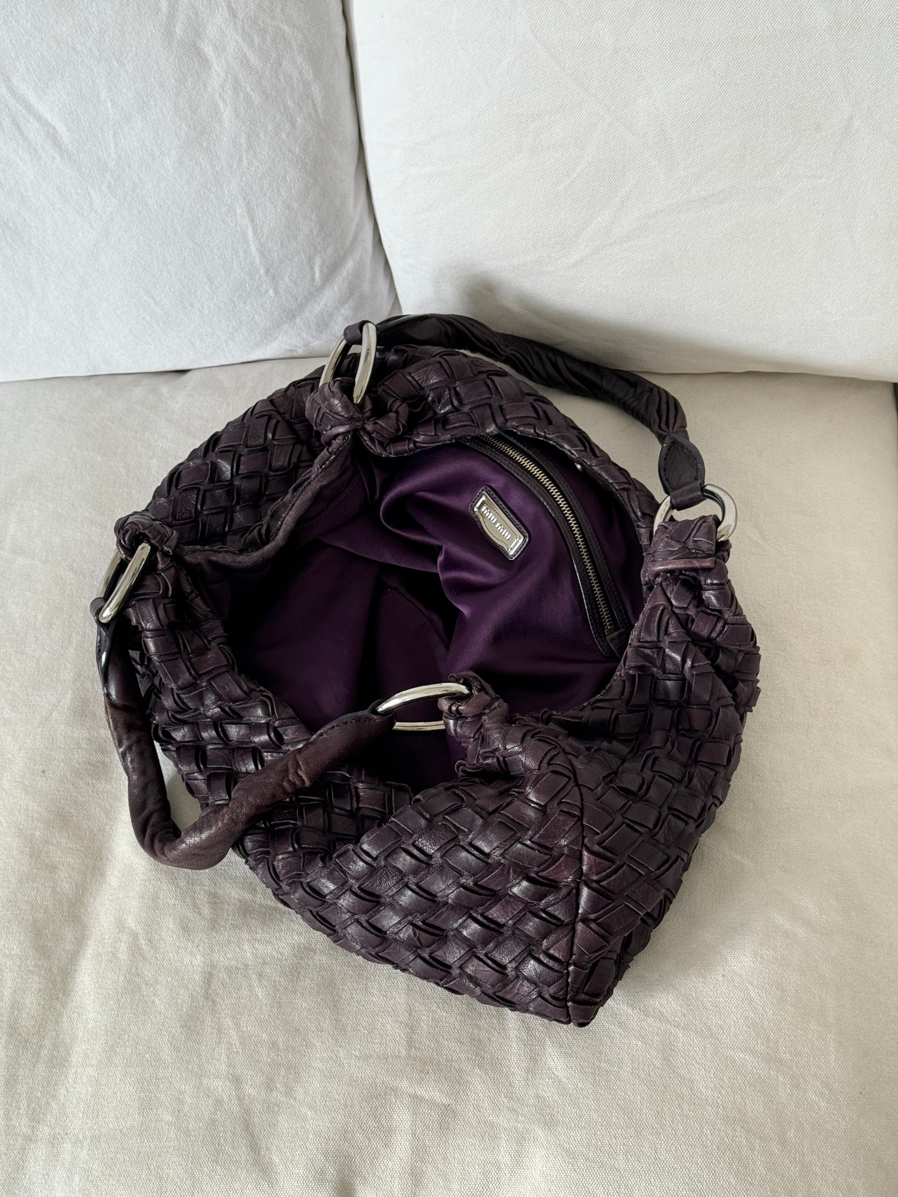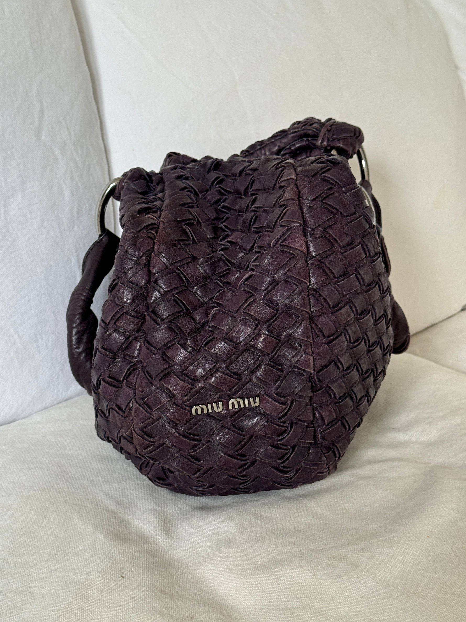 2010s Miu Miu Woven Leather Large Handbag