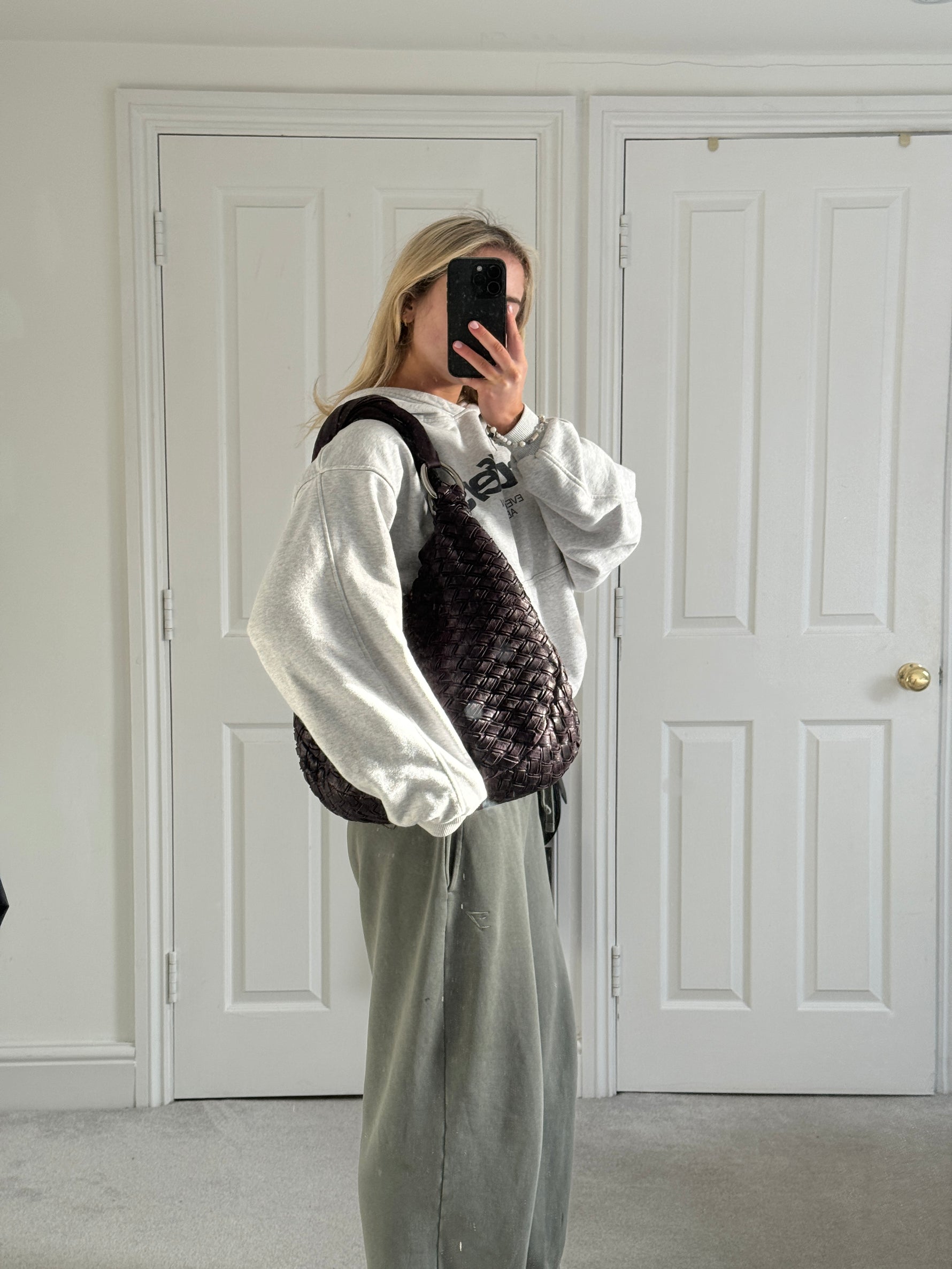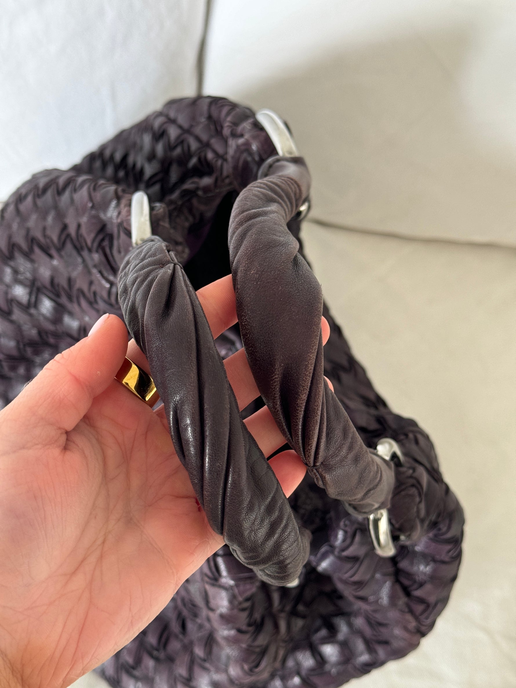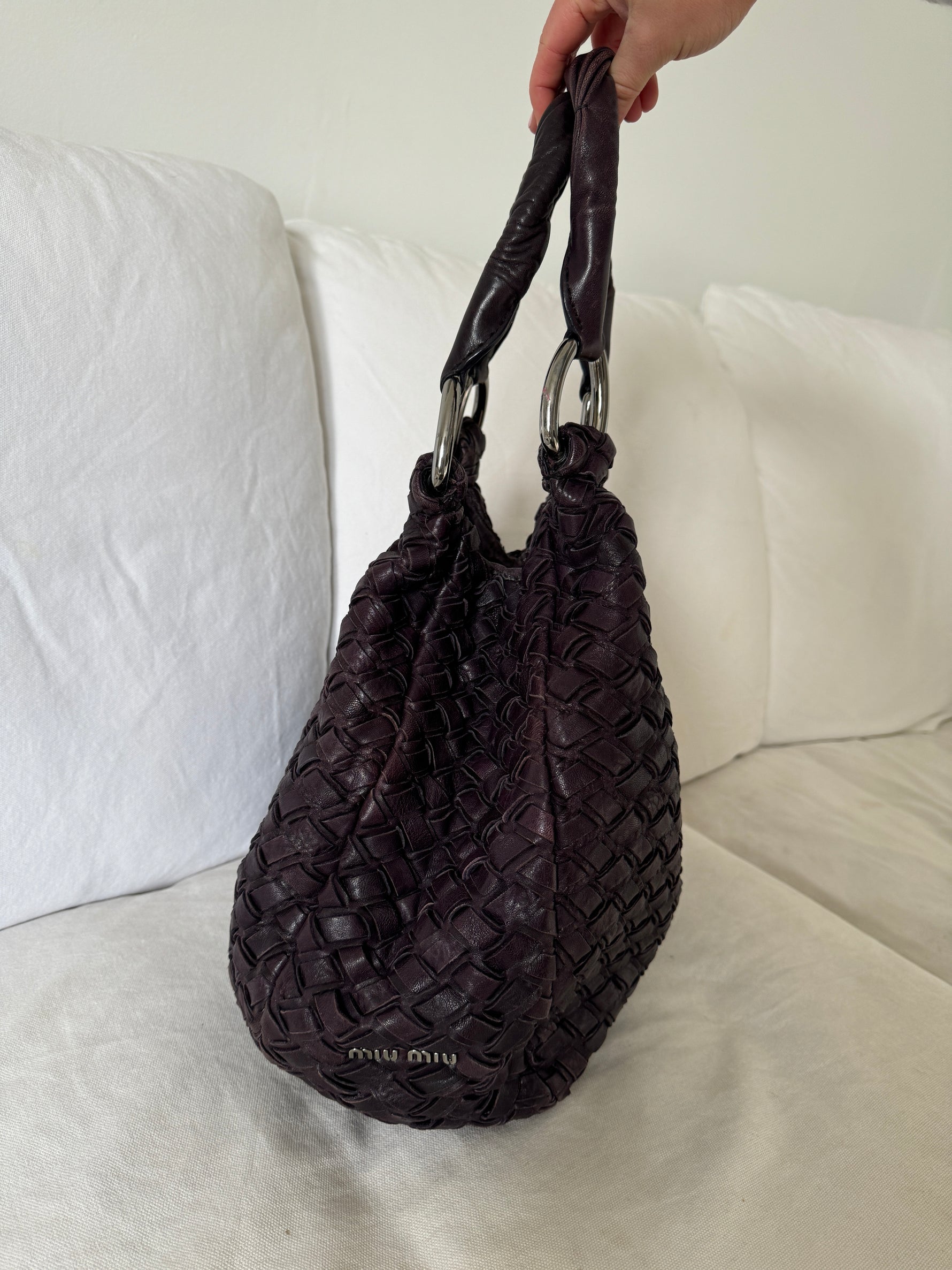 2010s Miu Miu Woven Leather Large Handbag