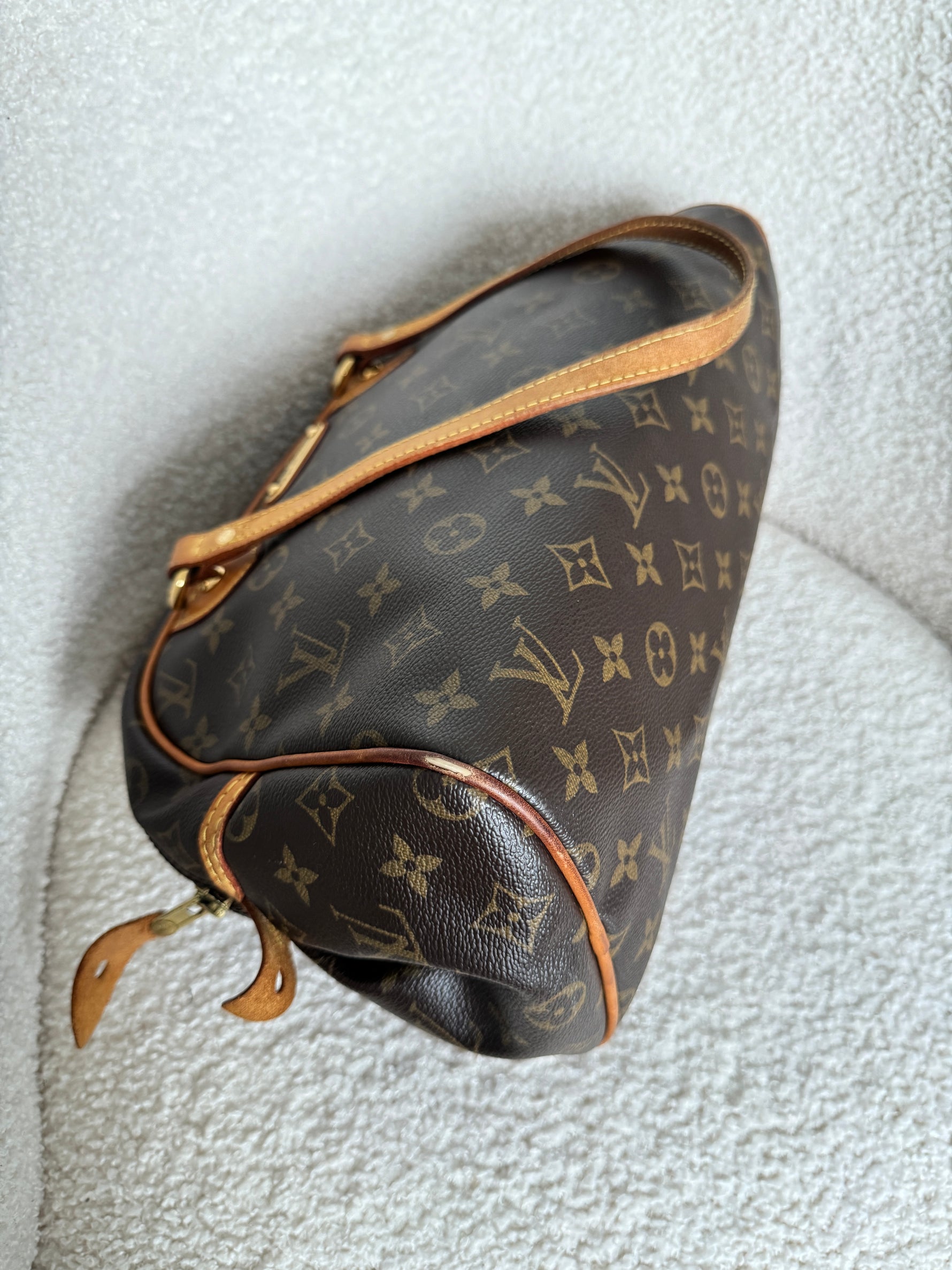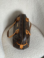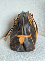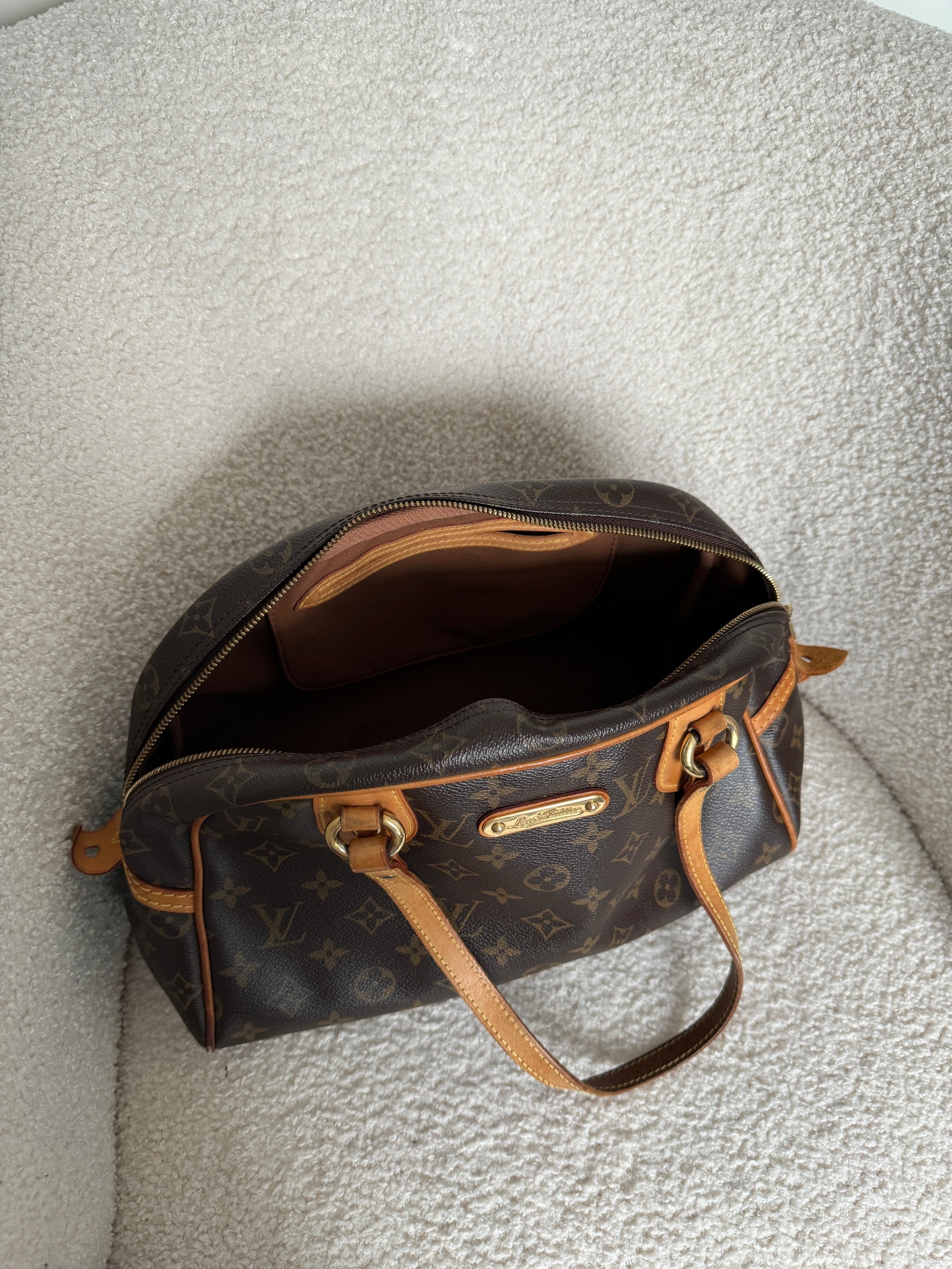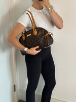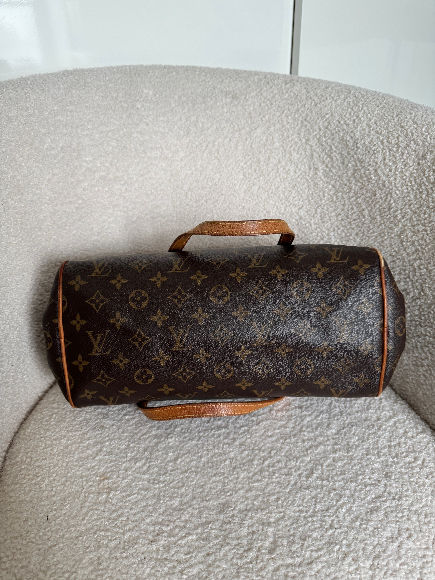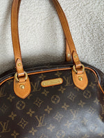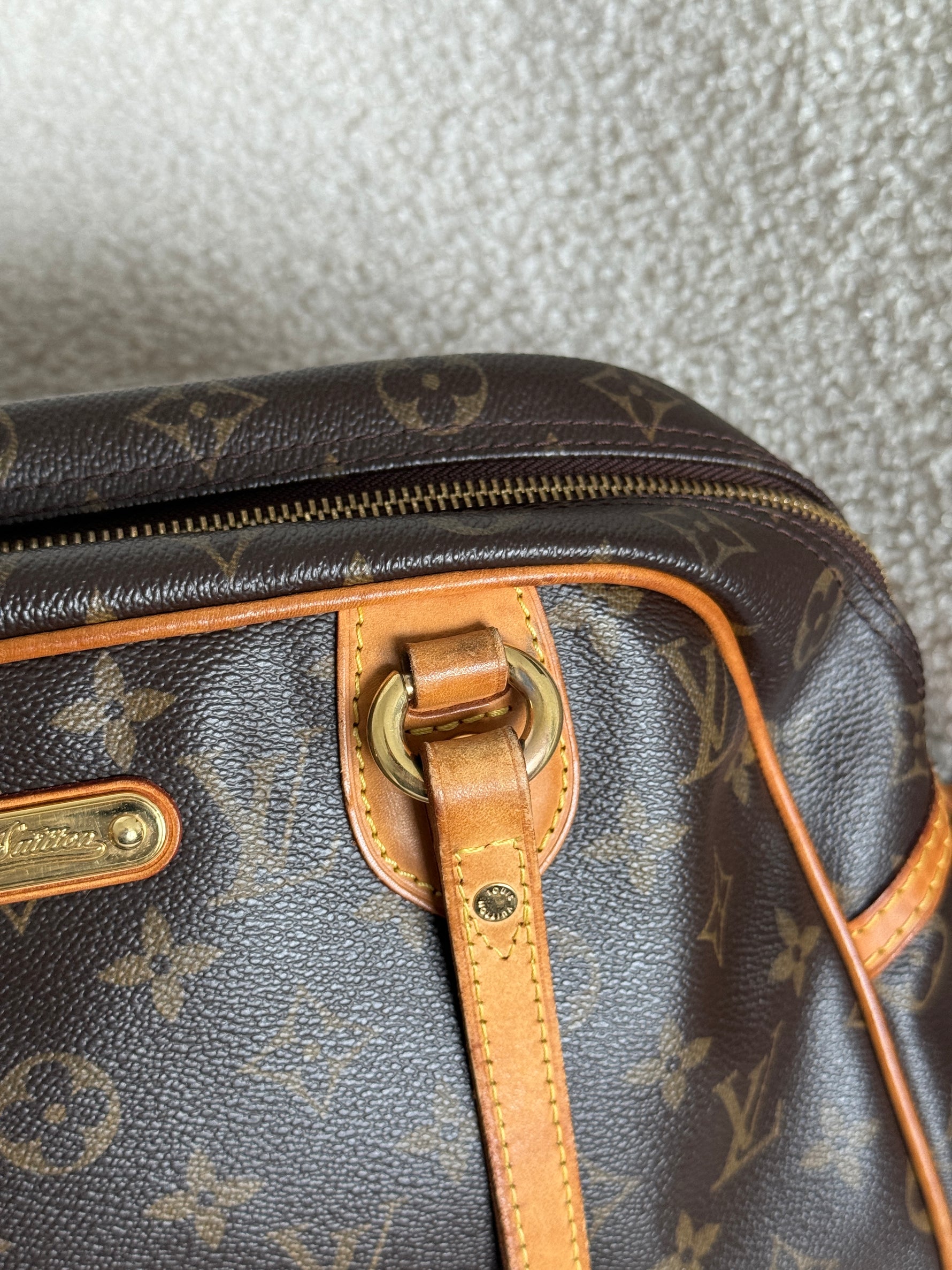 Outside: some wear to the corner edges of the bag & piping slightly exposed. Some marks on handles.
