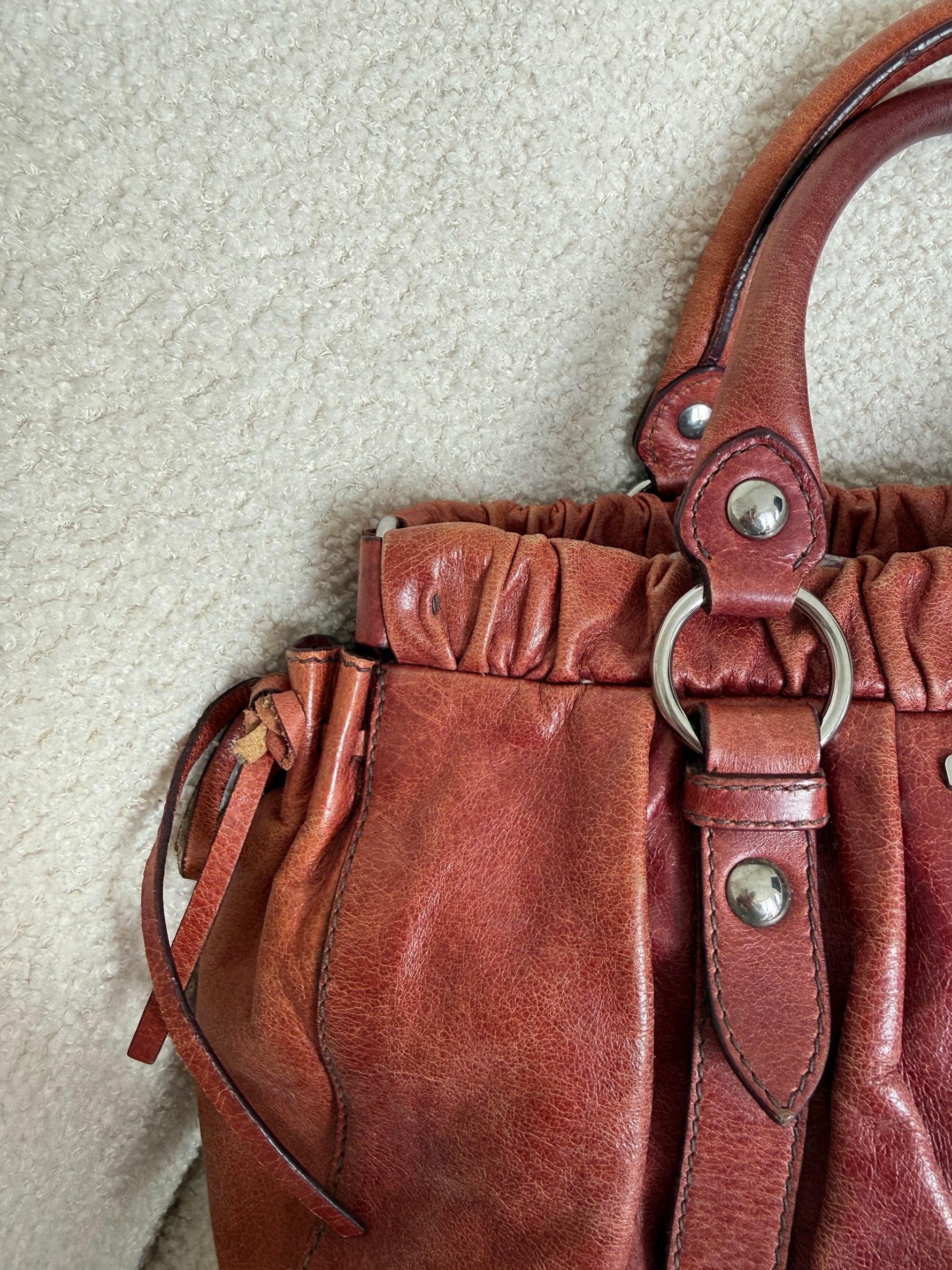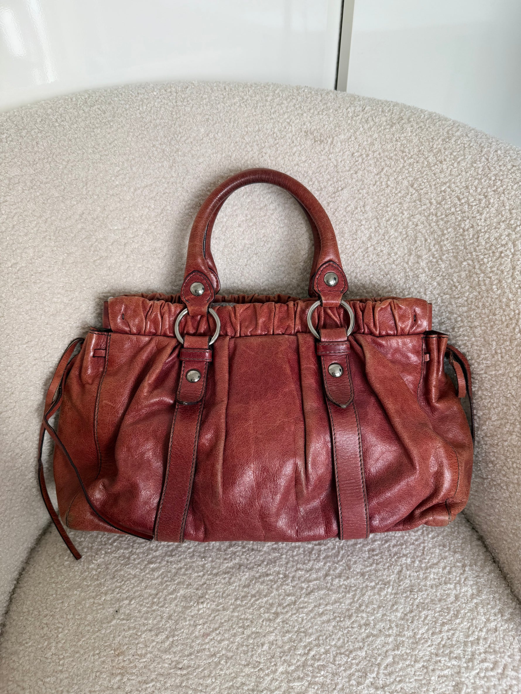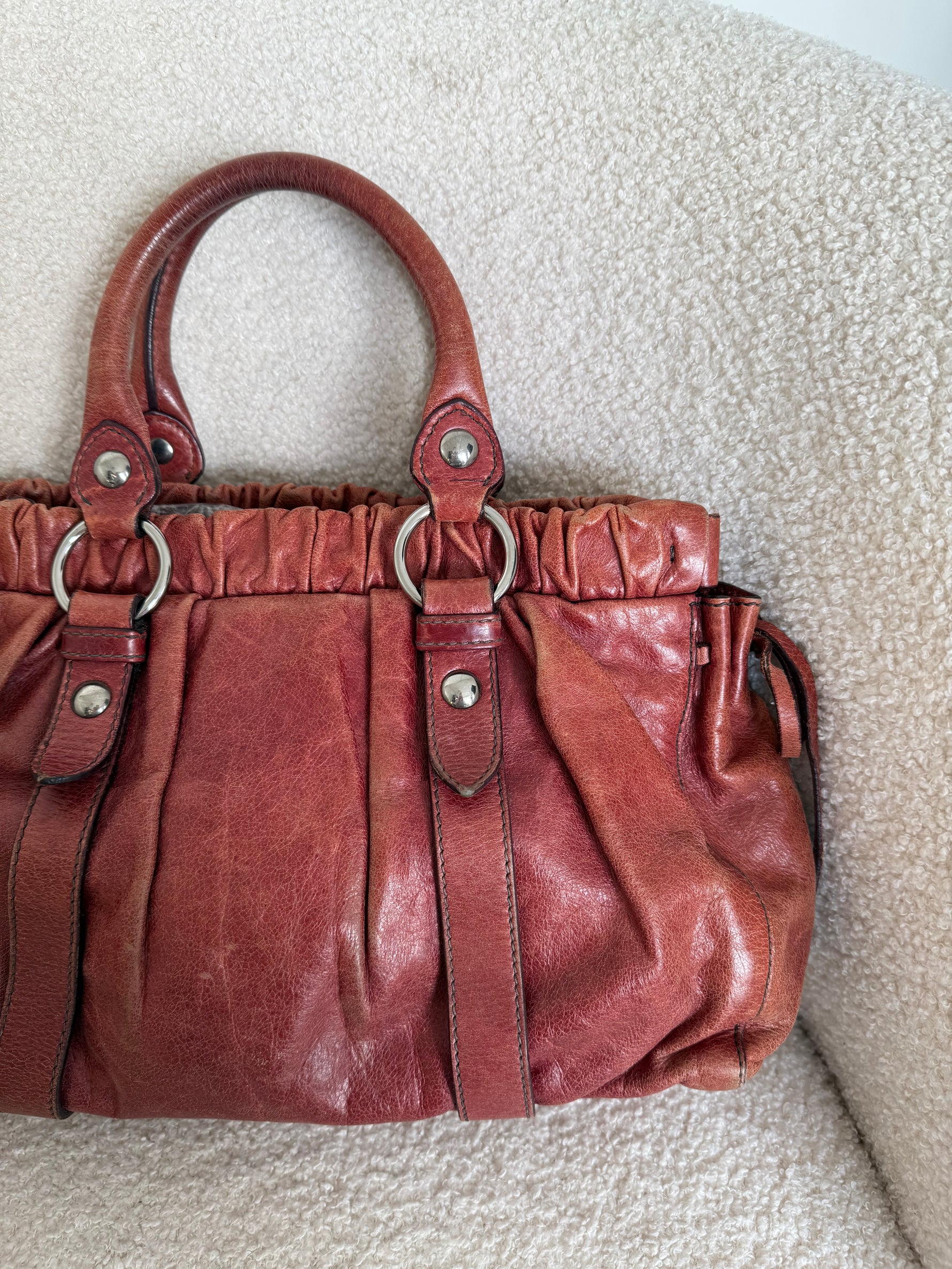 Outside: general wear / creasing to the leather. Some discolouration but this adds to the vintage effect.