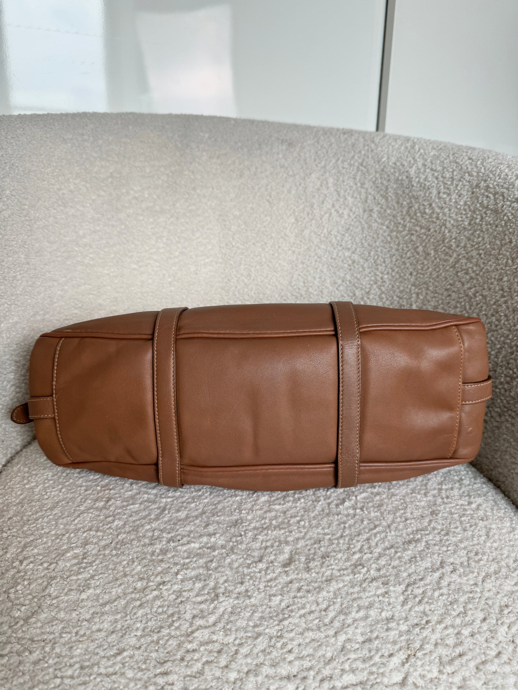 Outside: Excellent, some softening to leather on handle and corners. One corner has been painted (last picture).