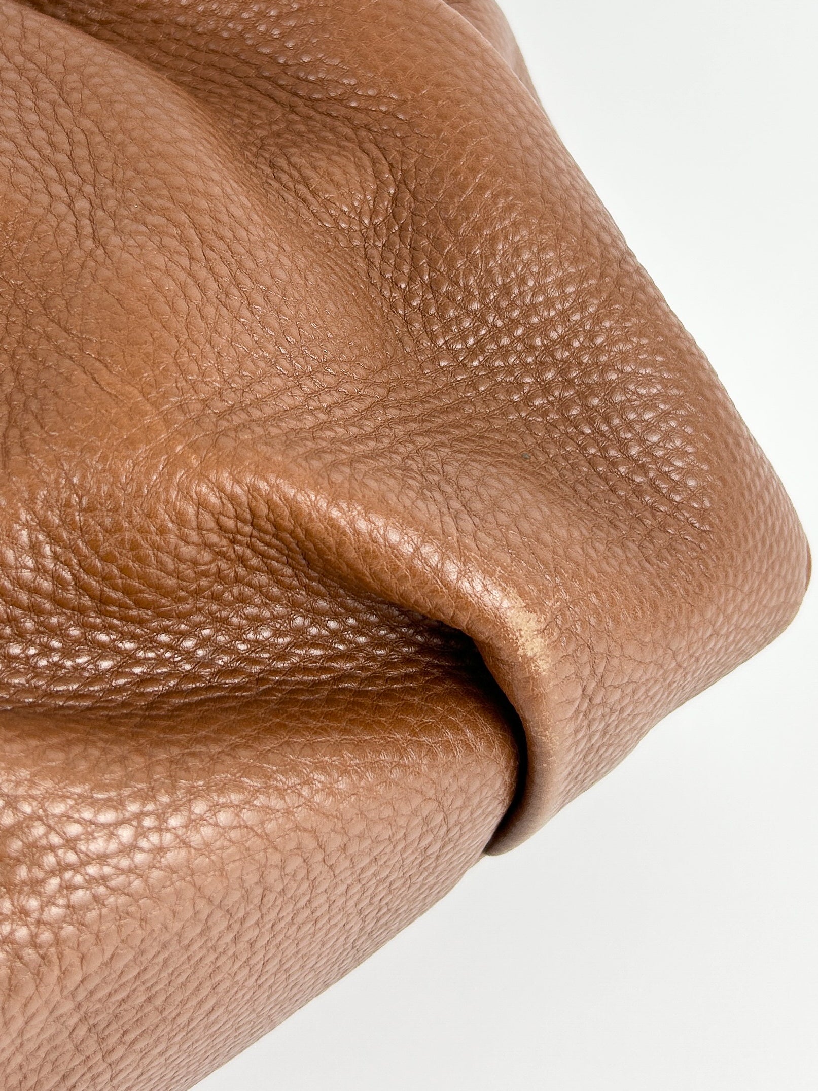 Outside: leather is very faintly beginning to scuff at the corners which isn’t noticeable unless looked for due to the ruched body of the bag, excellent condition throughout.