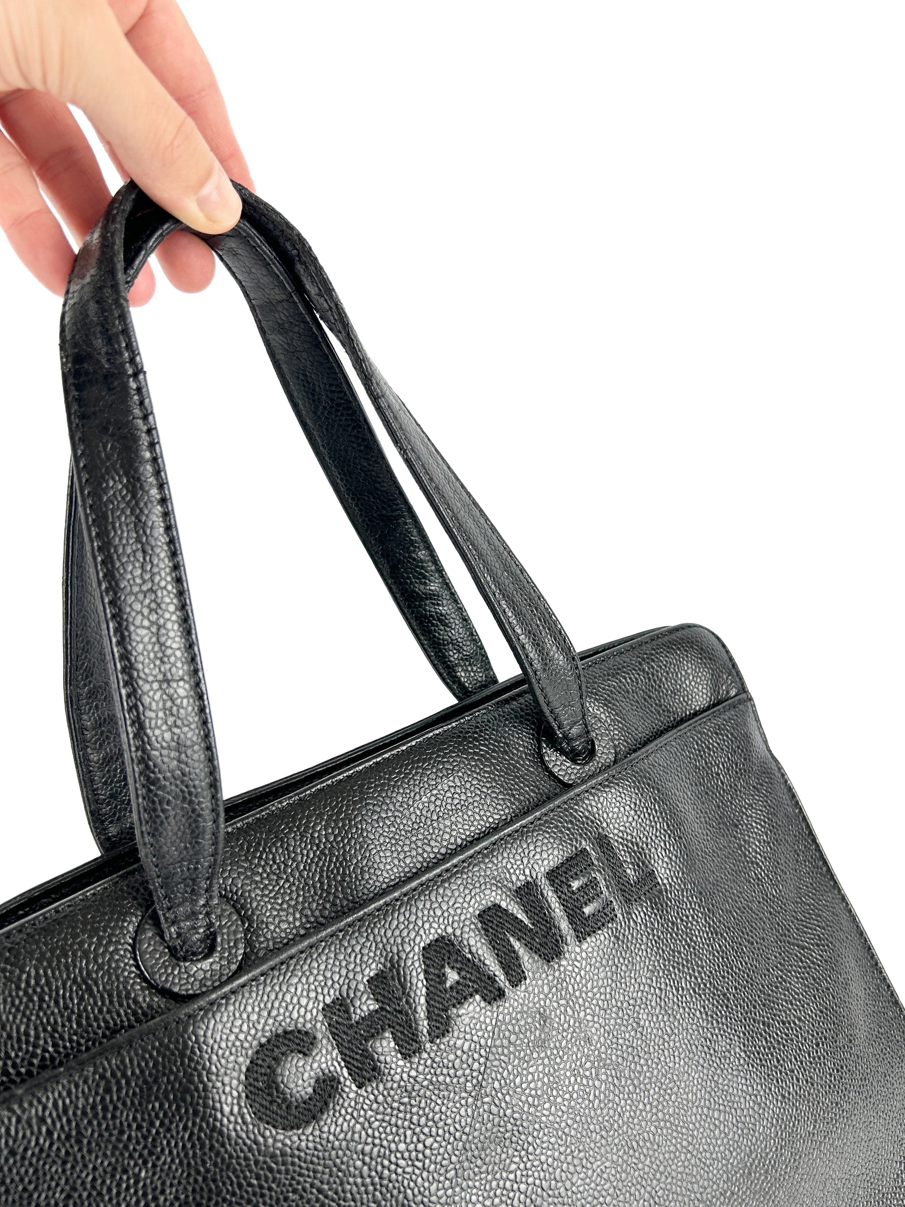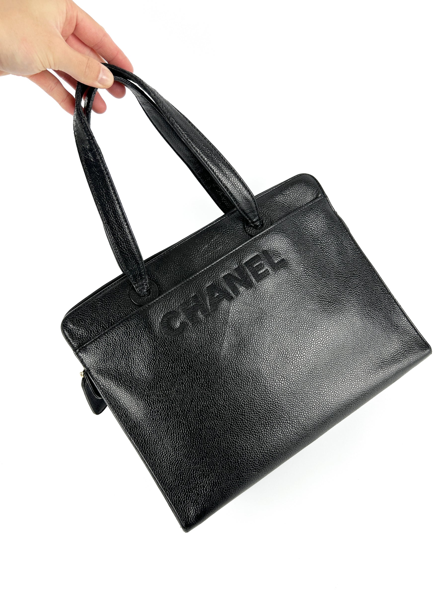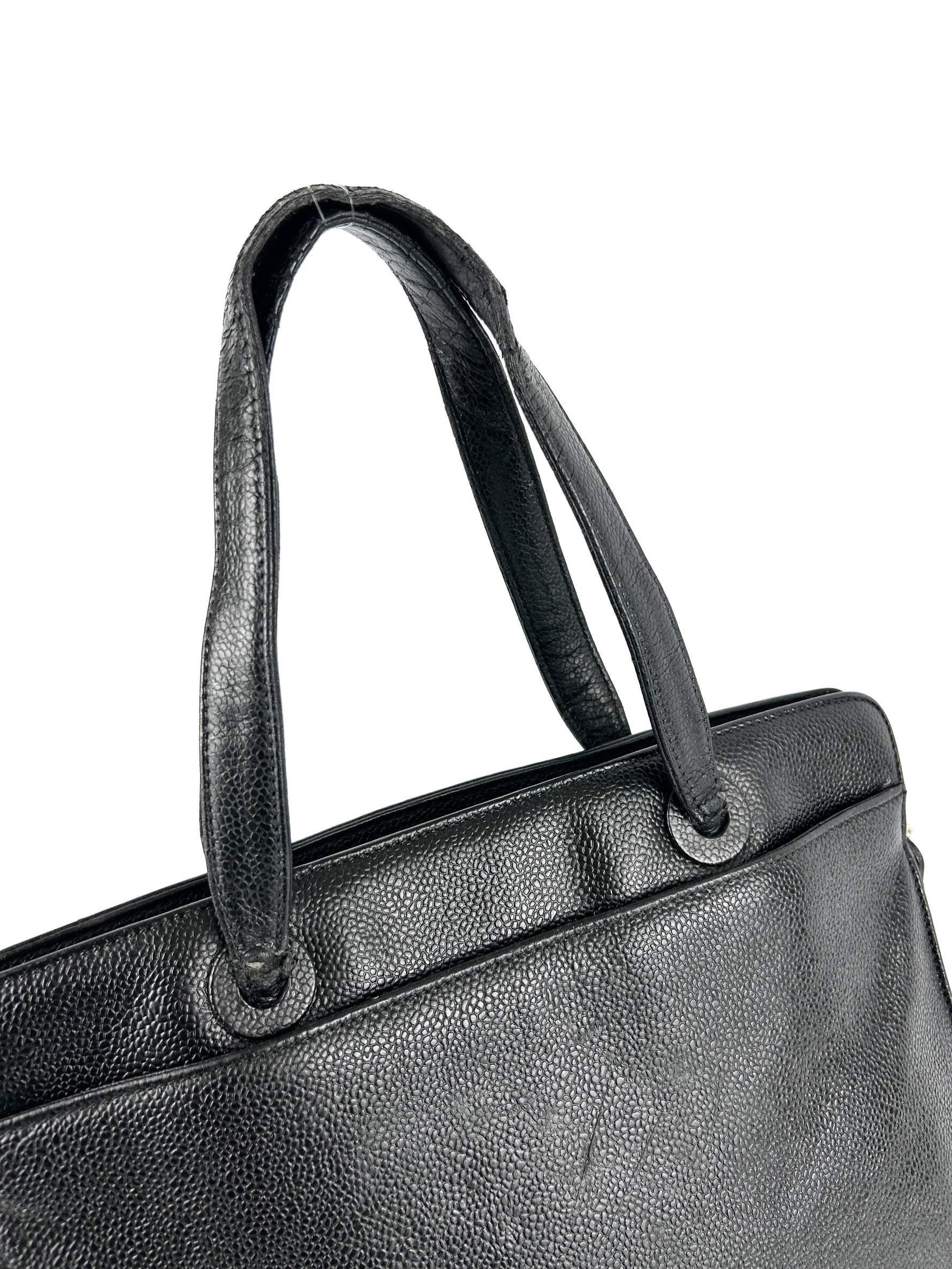 Vintage Chanel Black Caviar Leather Petite Tote Bag (1997-1999)