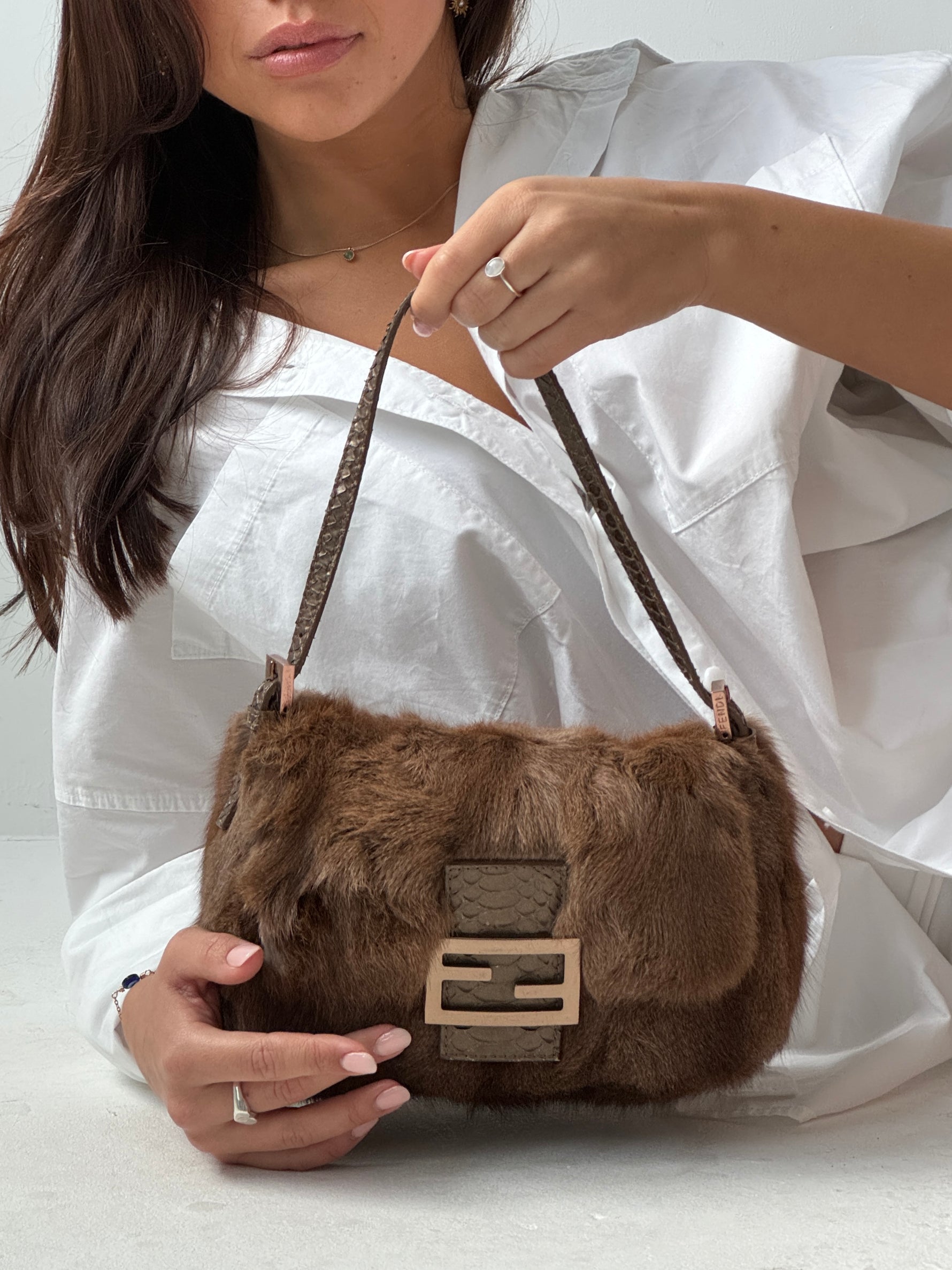 Vintage Fendi Mink Fur Mini Baguette Shoulder Bag