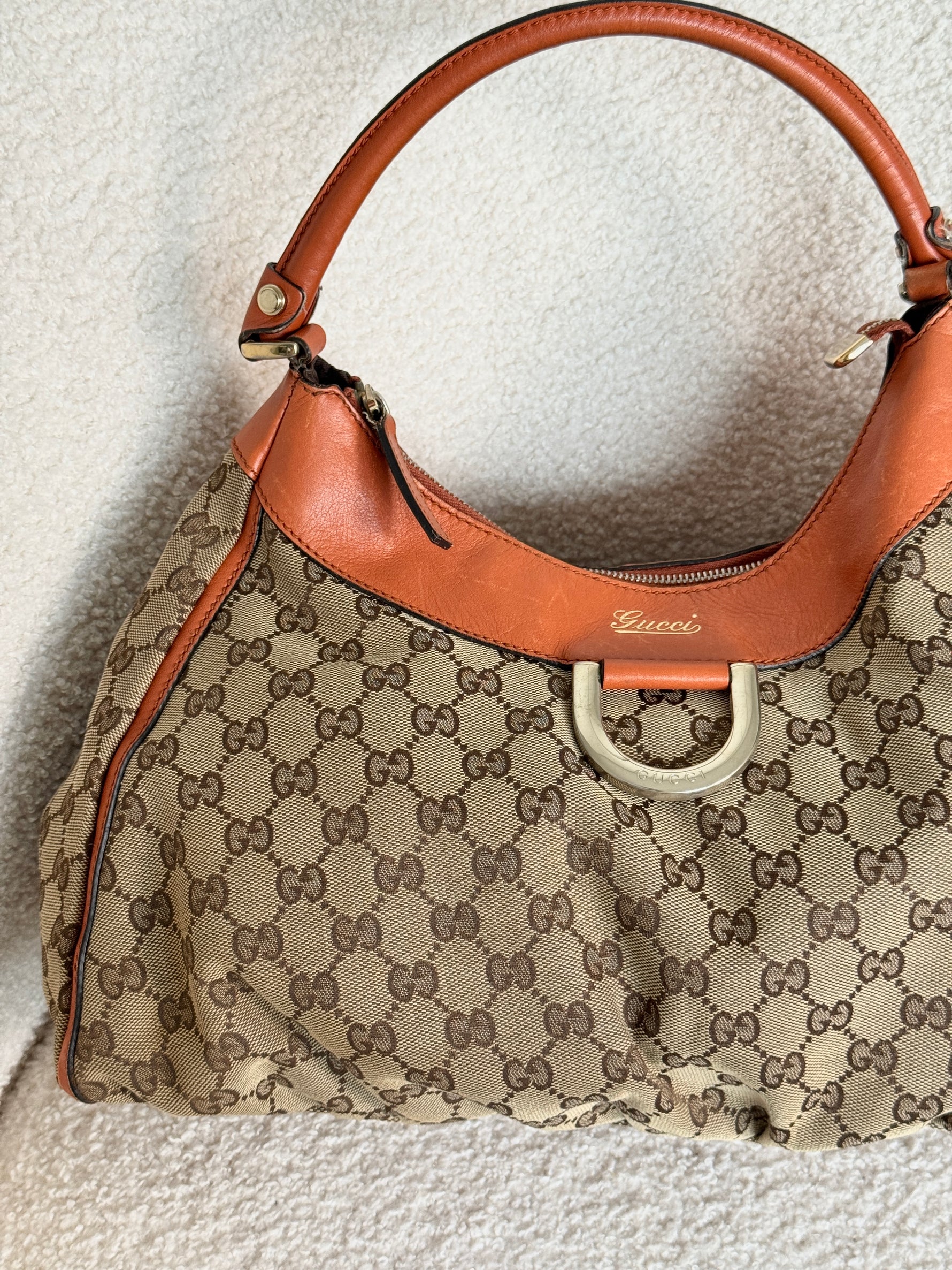 Vintage 90s Gucci Monogram Large D-Ring Shoulder Bag