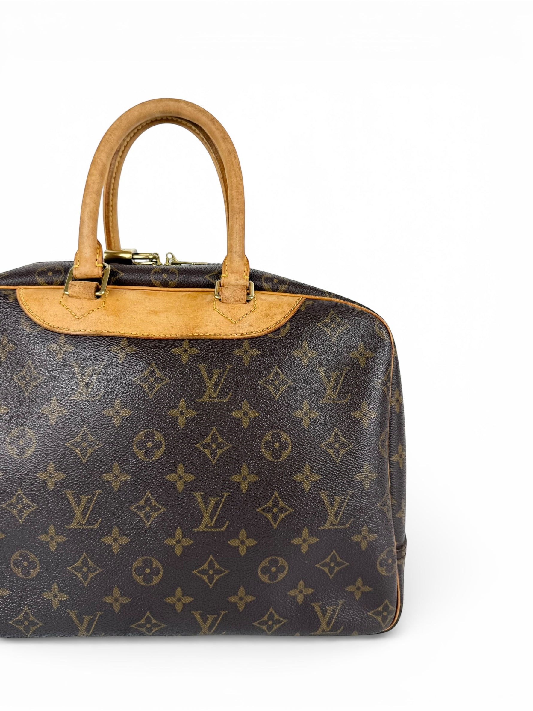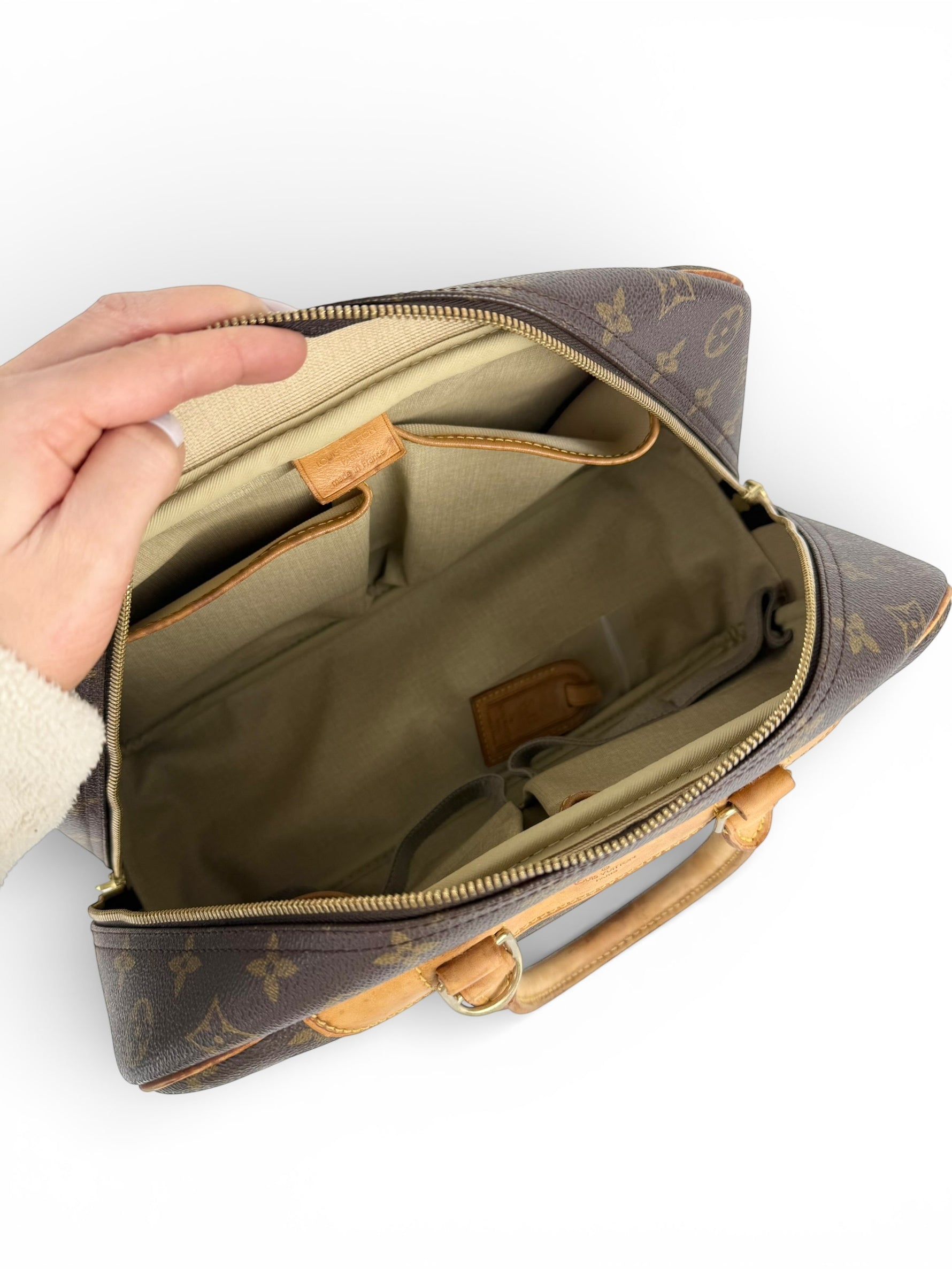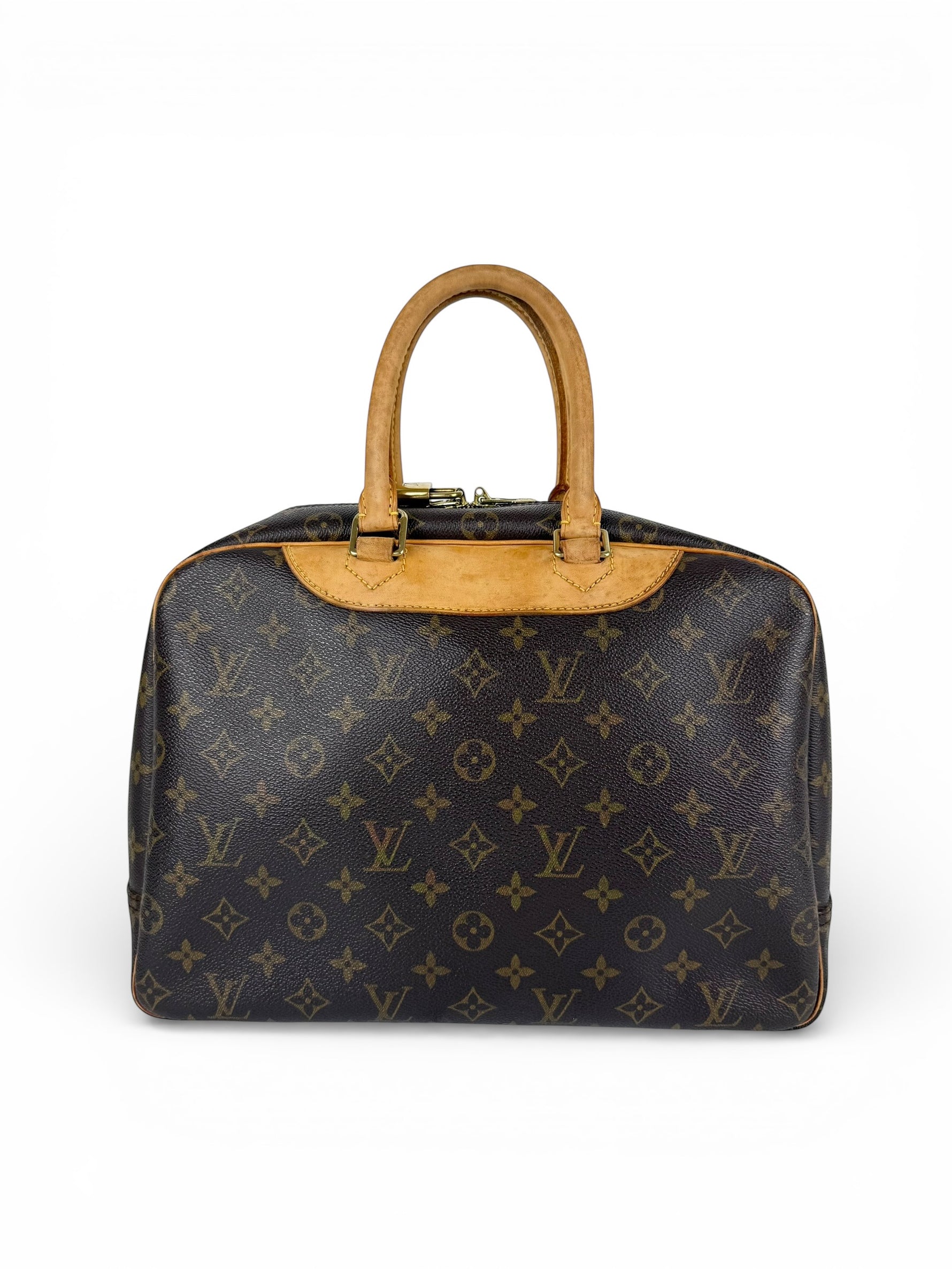 Outside: Very good, some scuffing to leather piping around to edges of the bag, handles are marked.