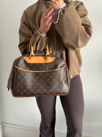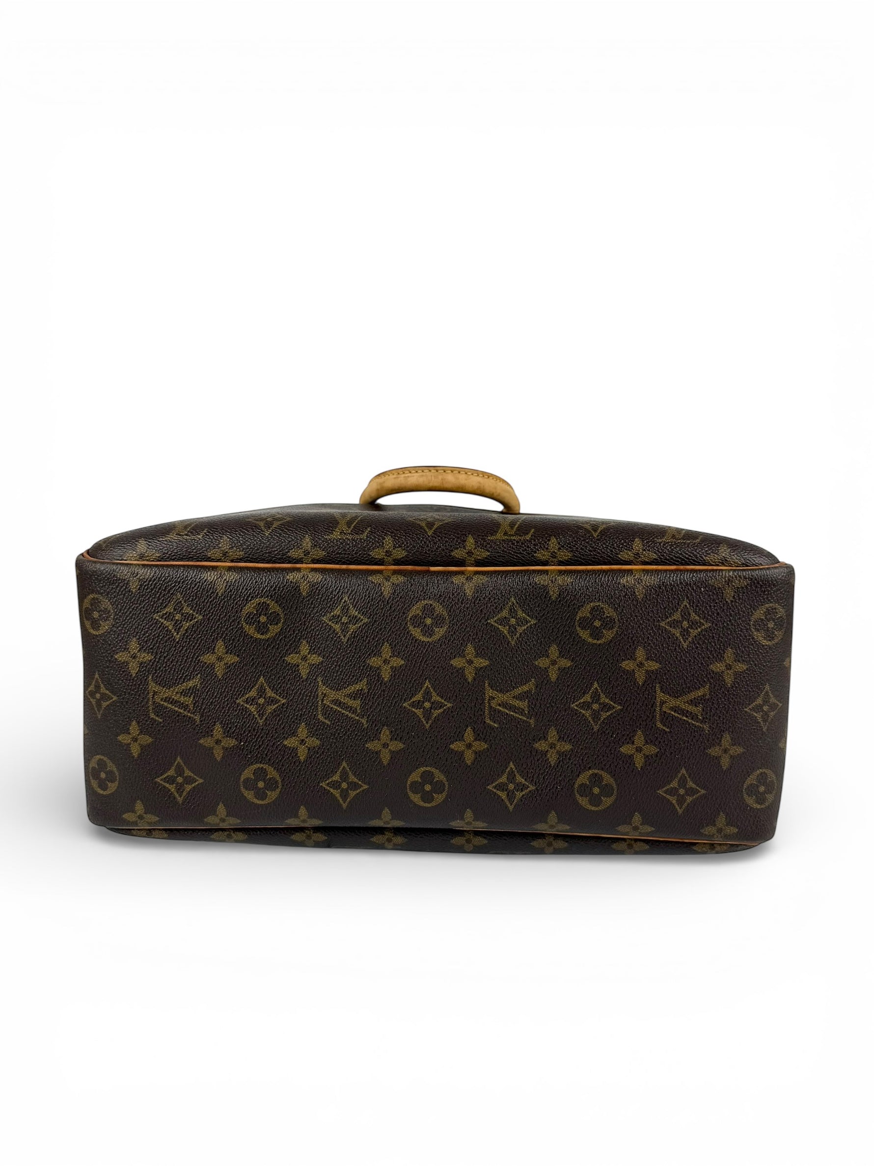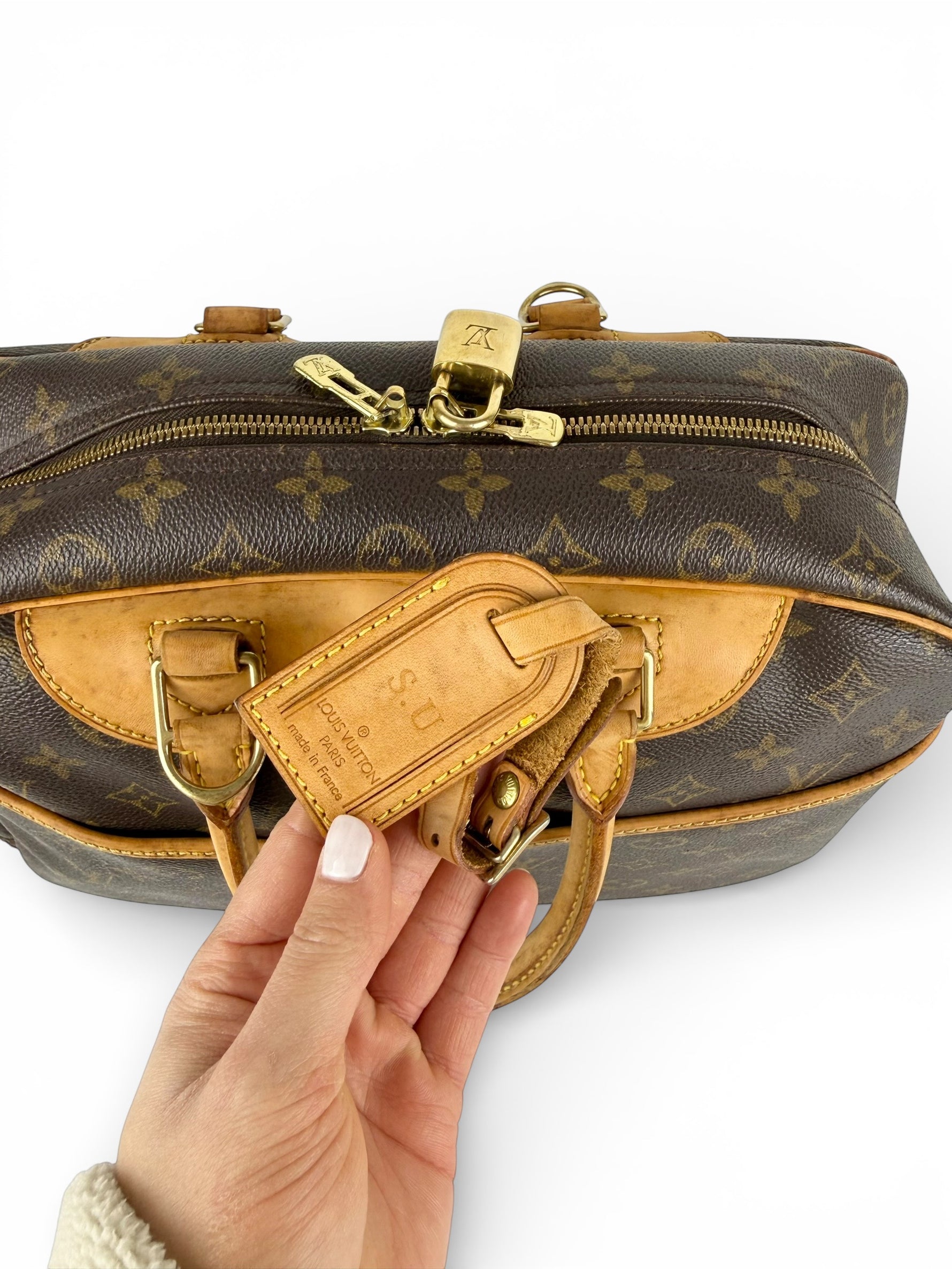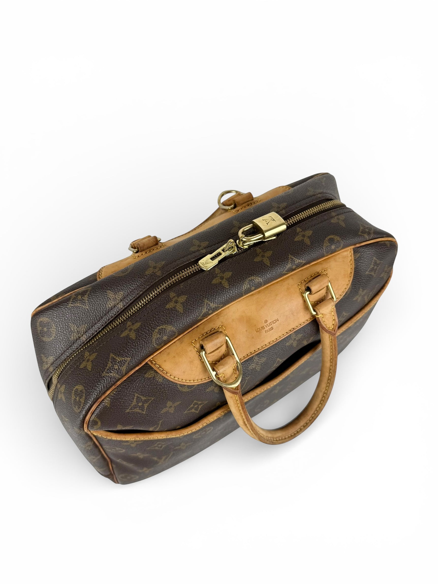 Outside: Very good, some scuffing to leather piping around to edges of the bag, handles are marked.