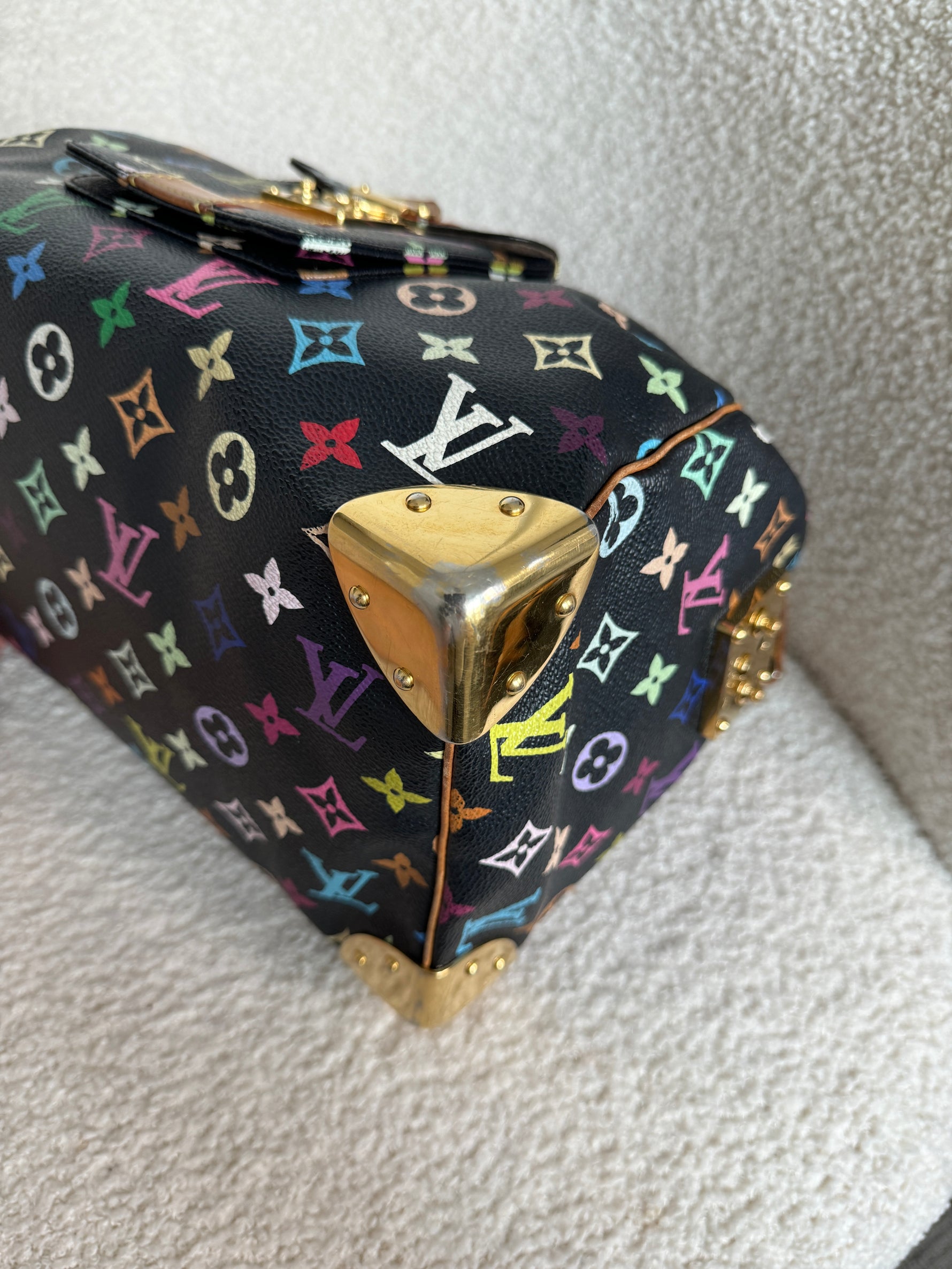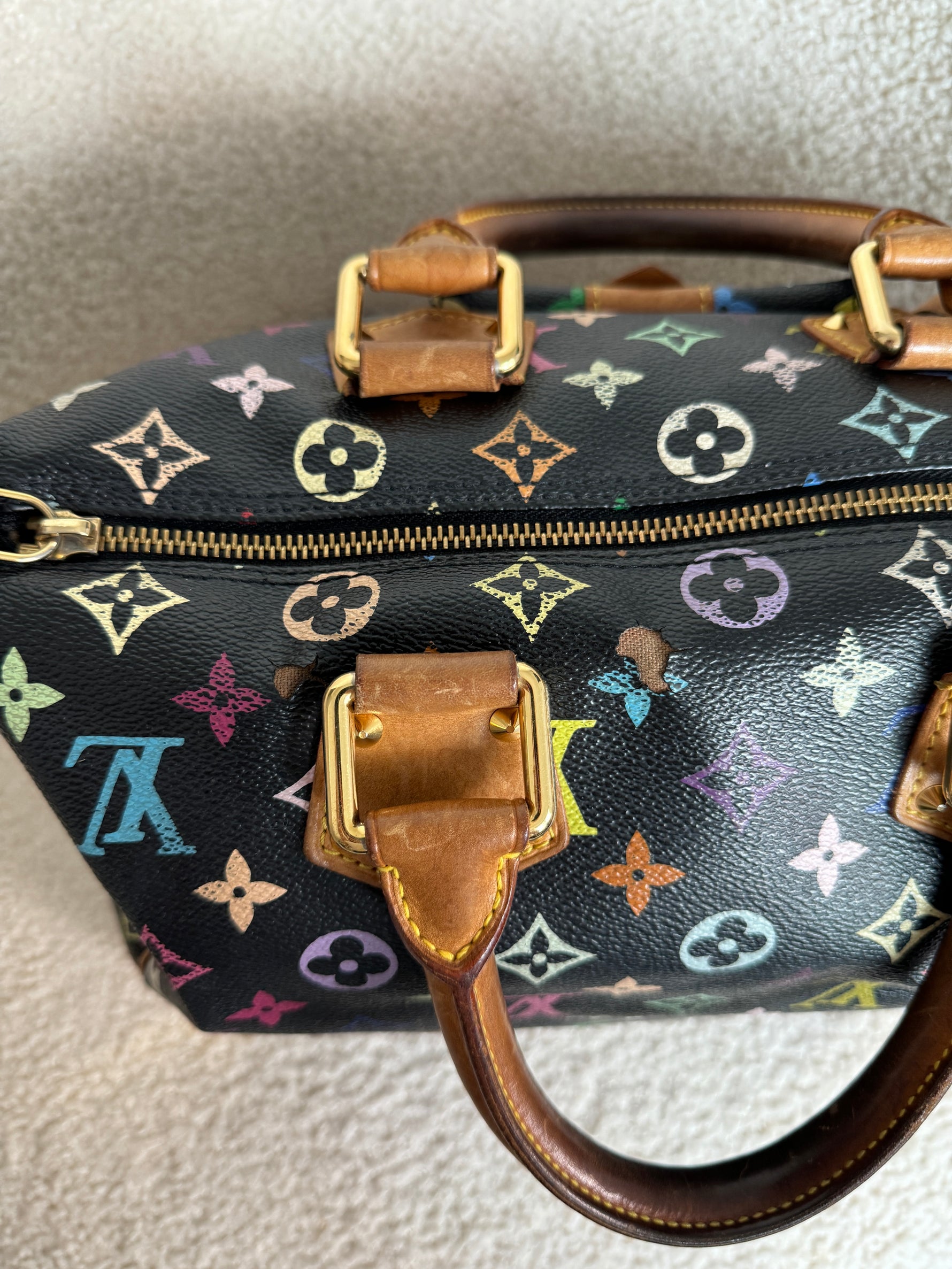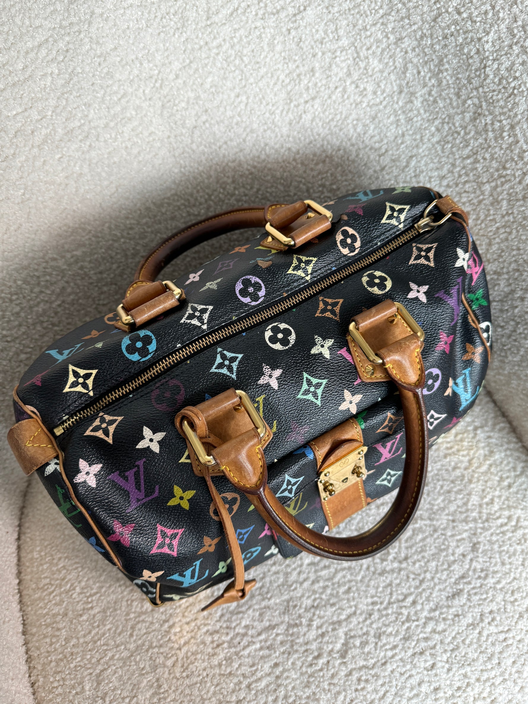 2004 Vintage Louis Vuitton x Takashi Murakami Black Speedy 30 Handbag