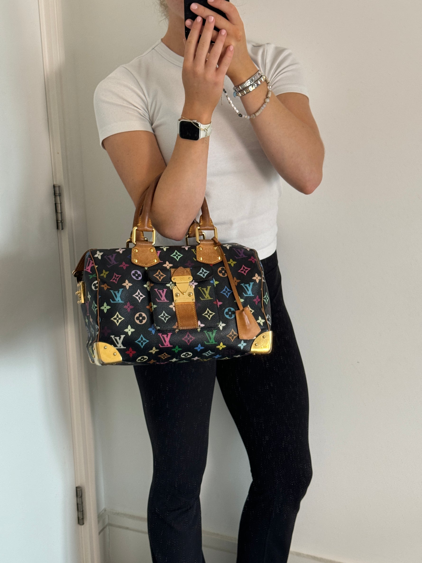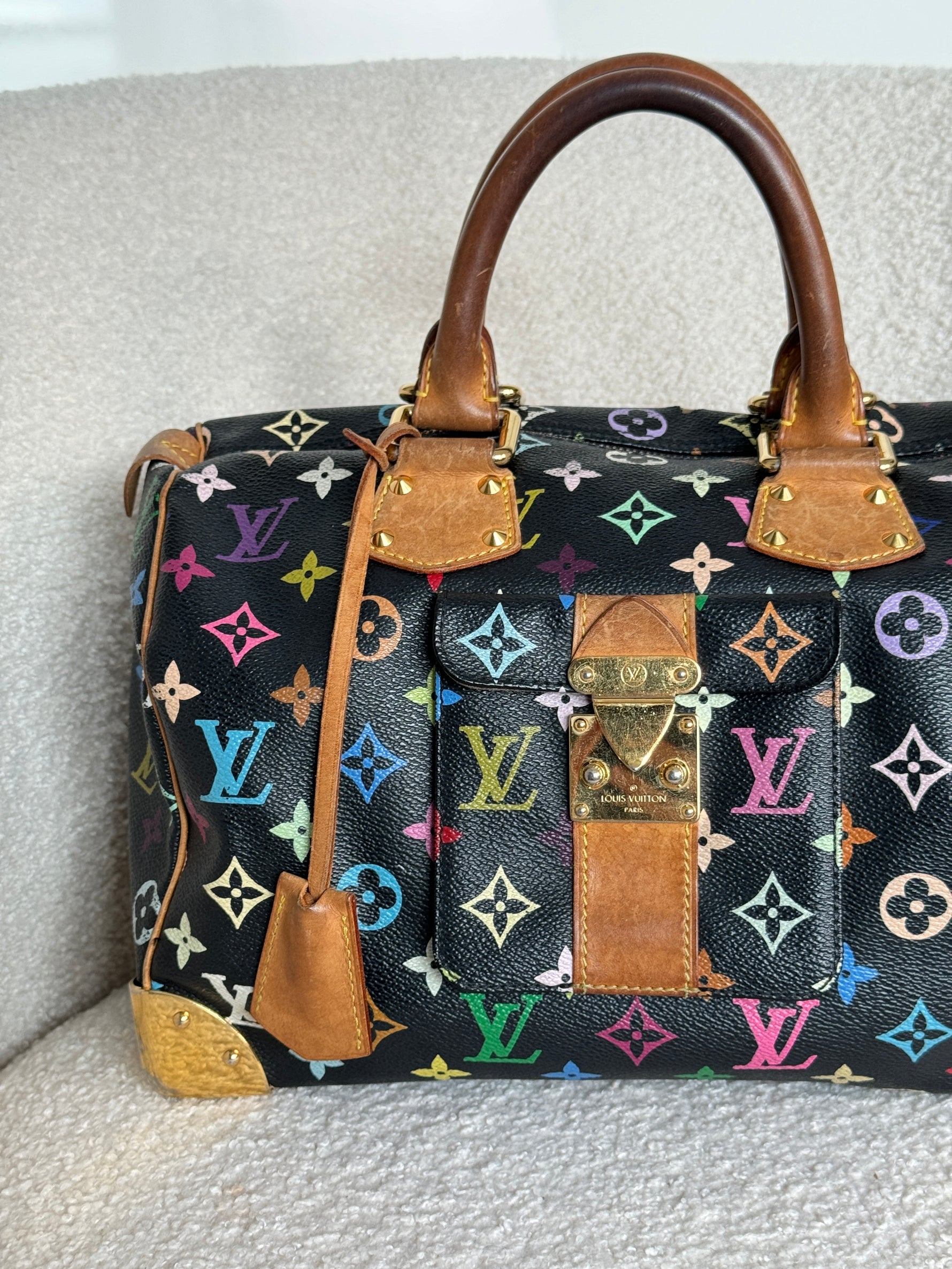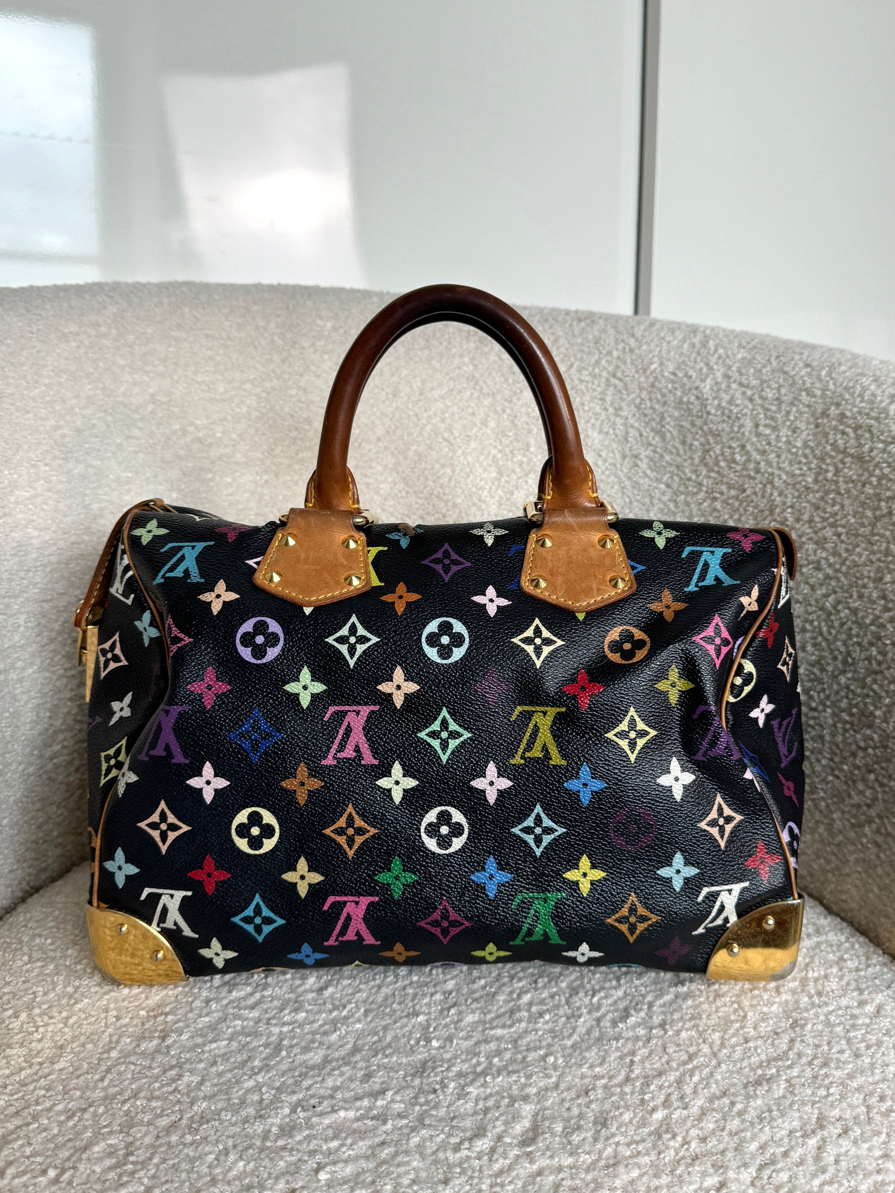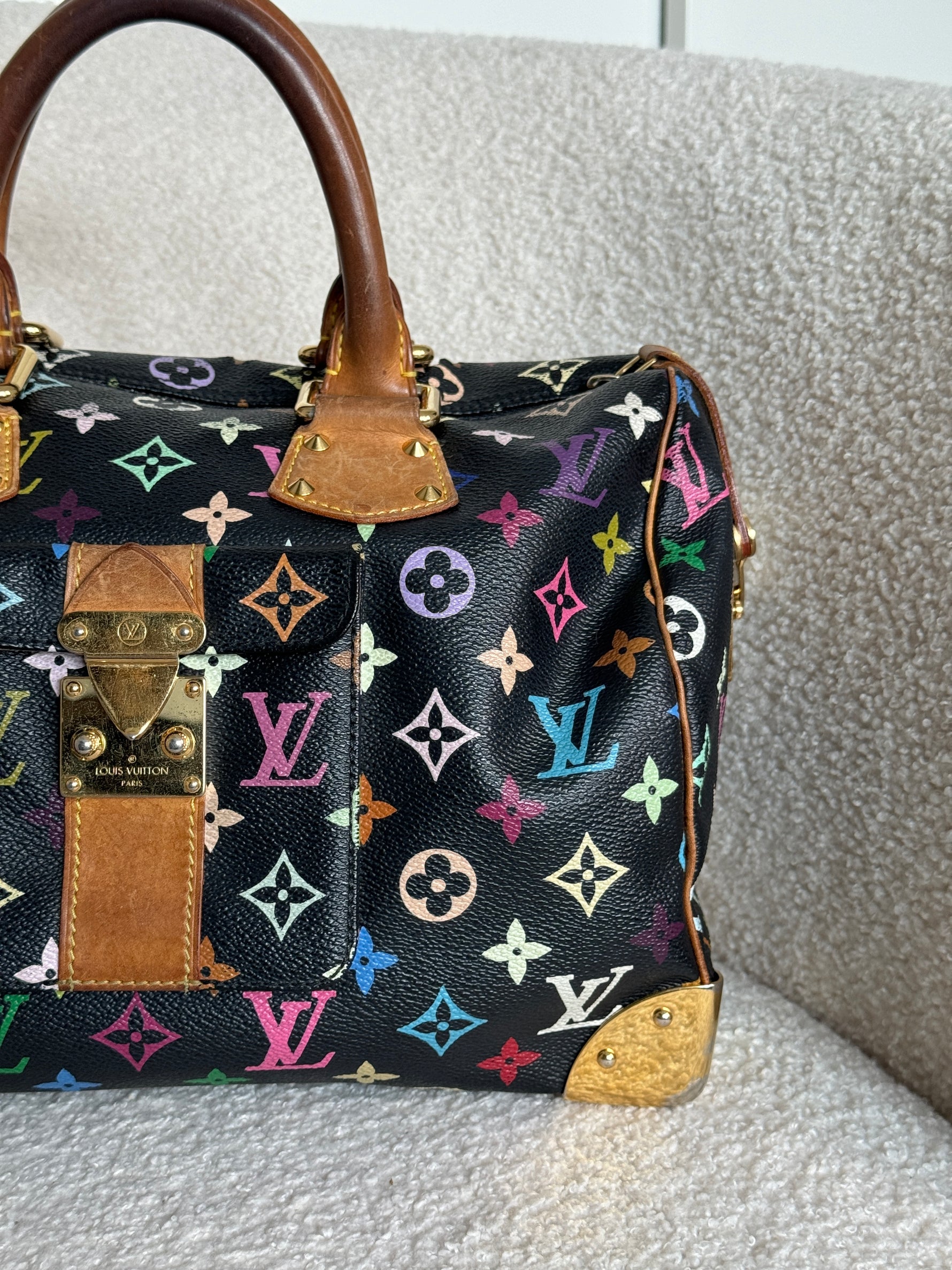 2004 Vintage Louis Vuitton x Takashi Murakami Black Speedy 30 Handbag