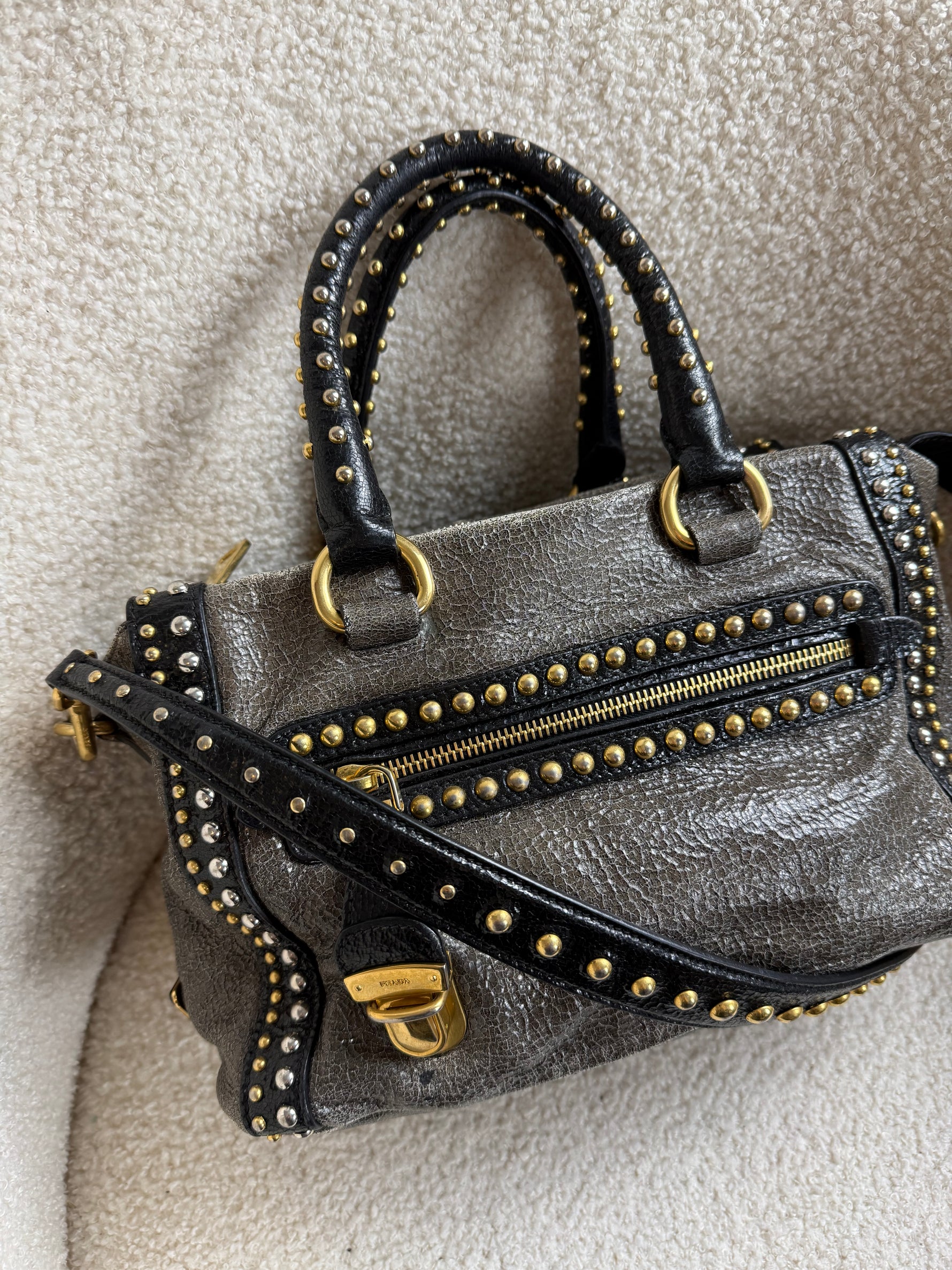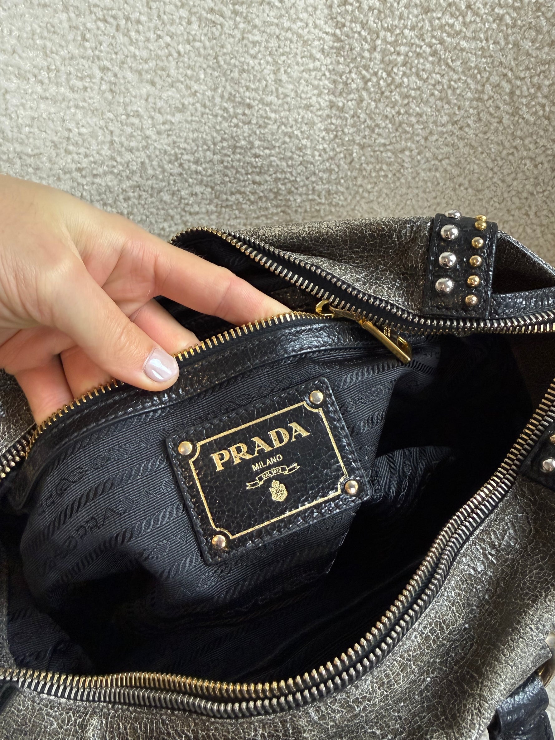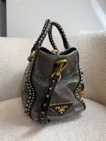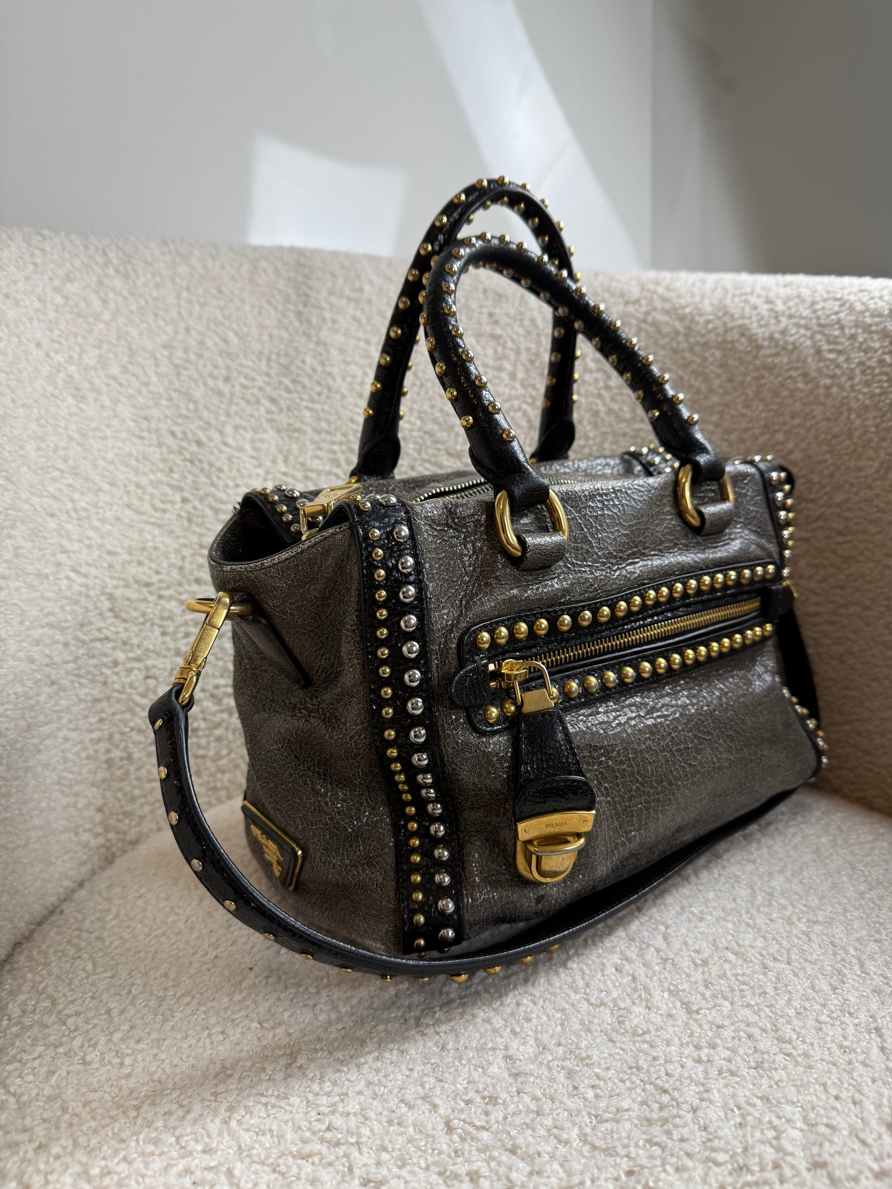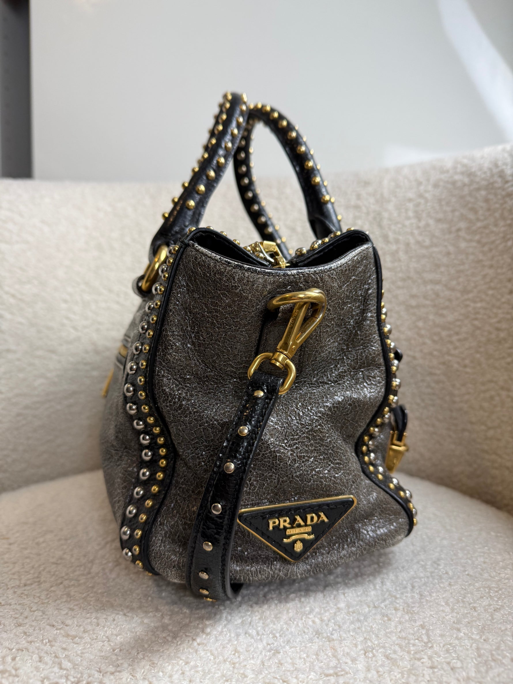 2010s Prada Studded 2Way Vitello Shimmer Handbag