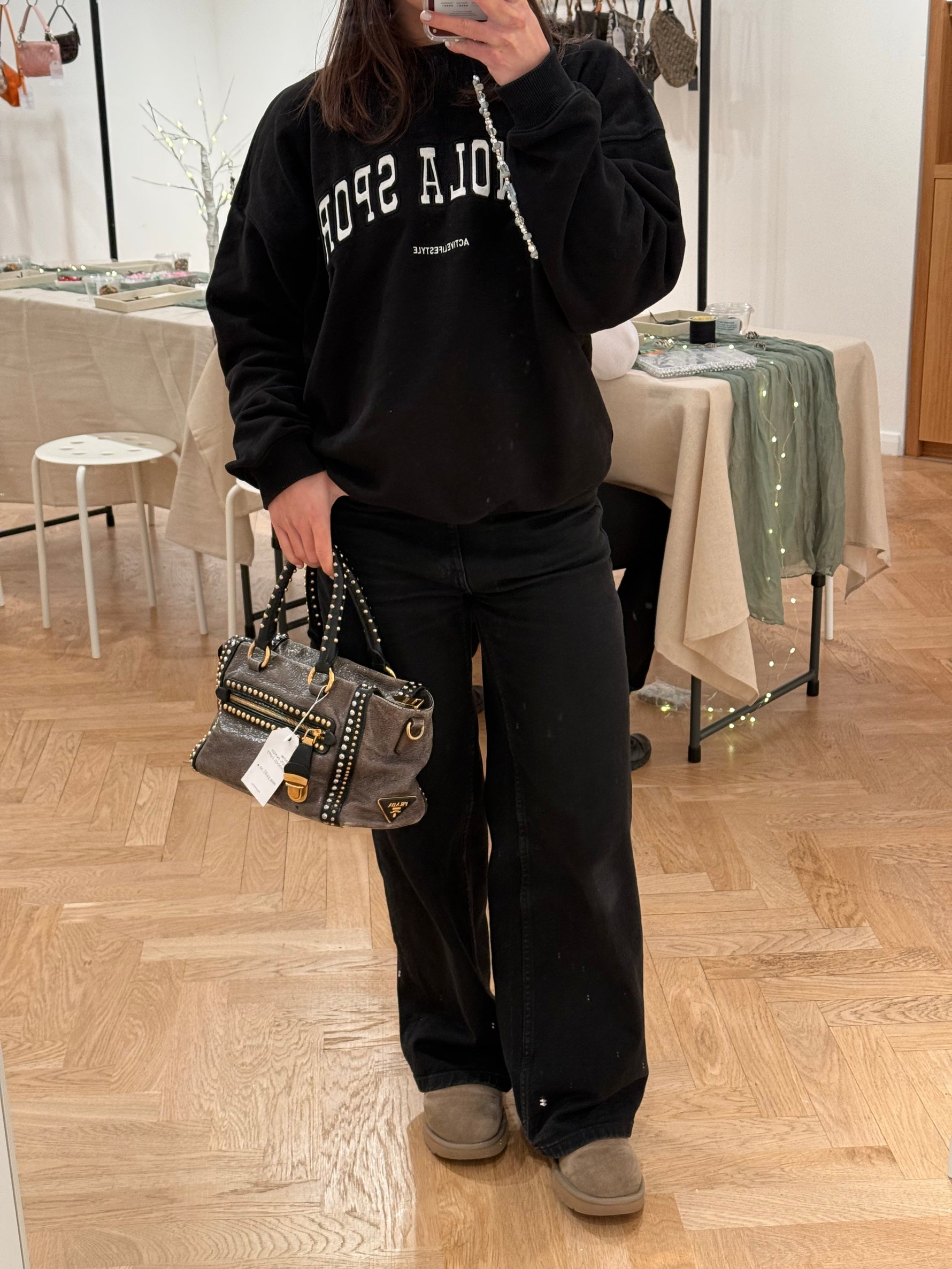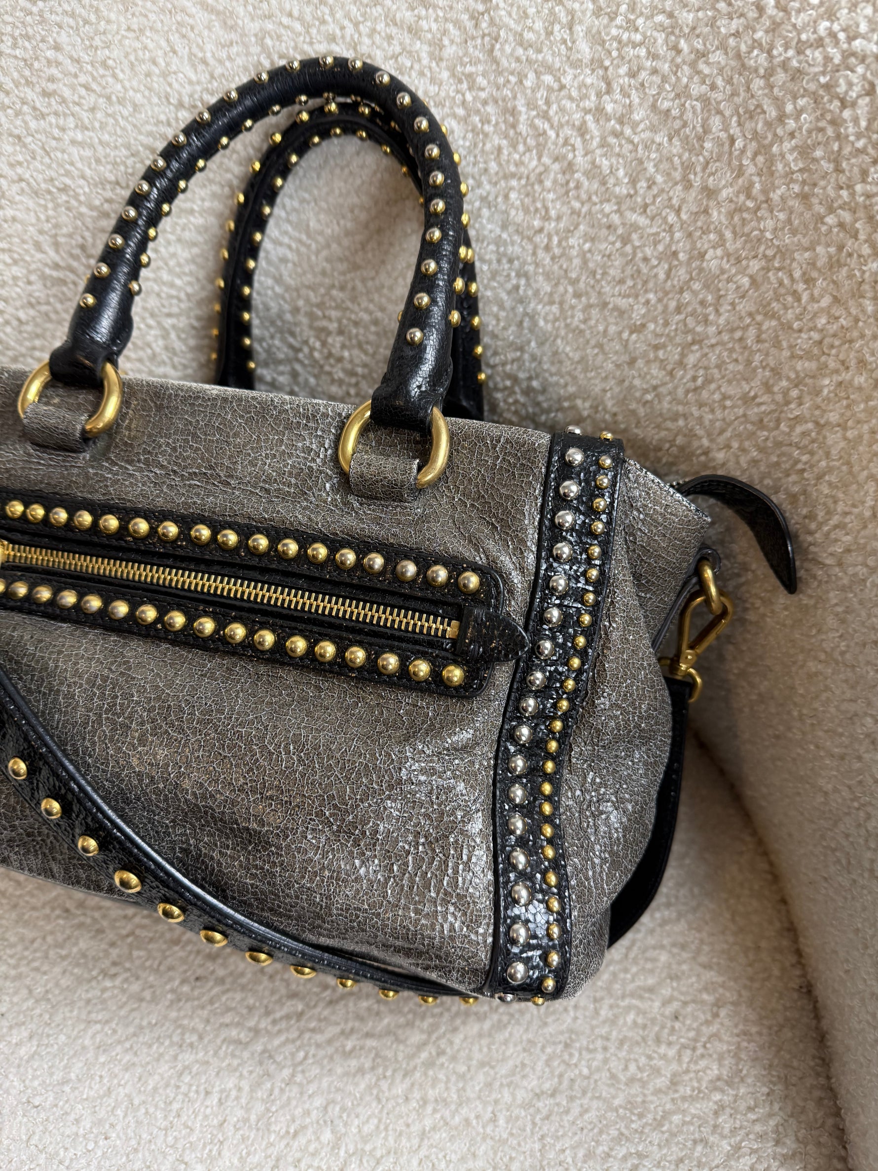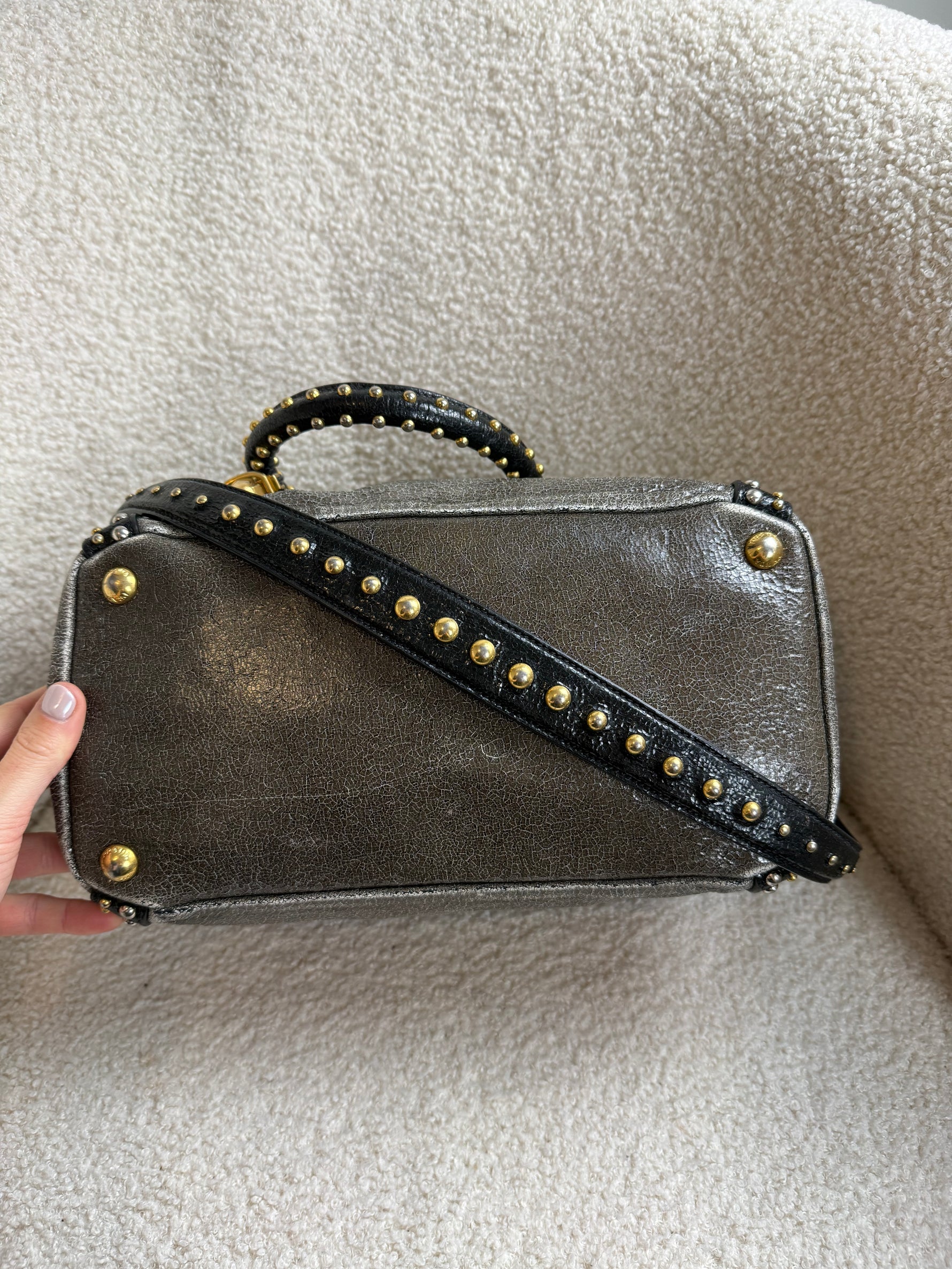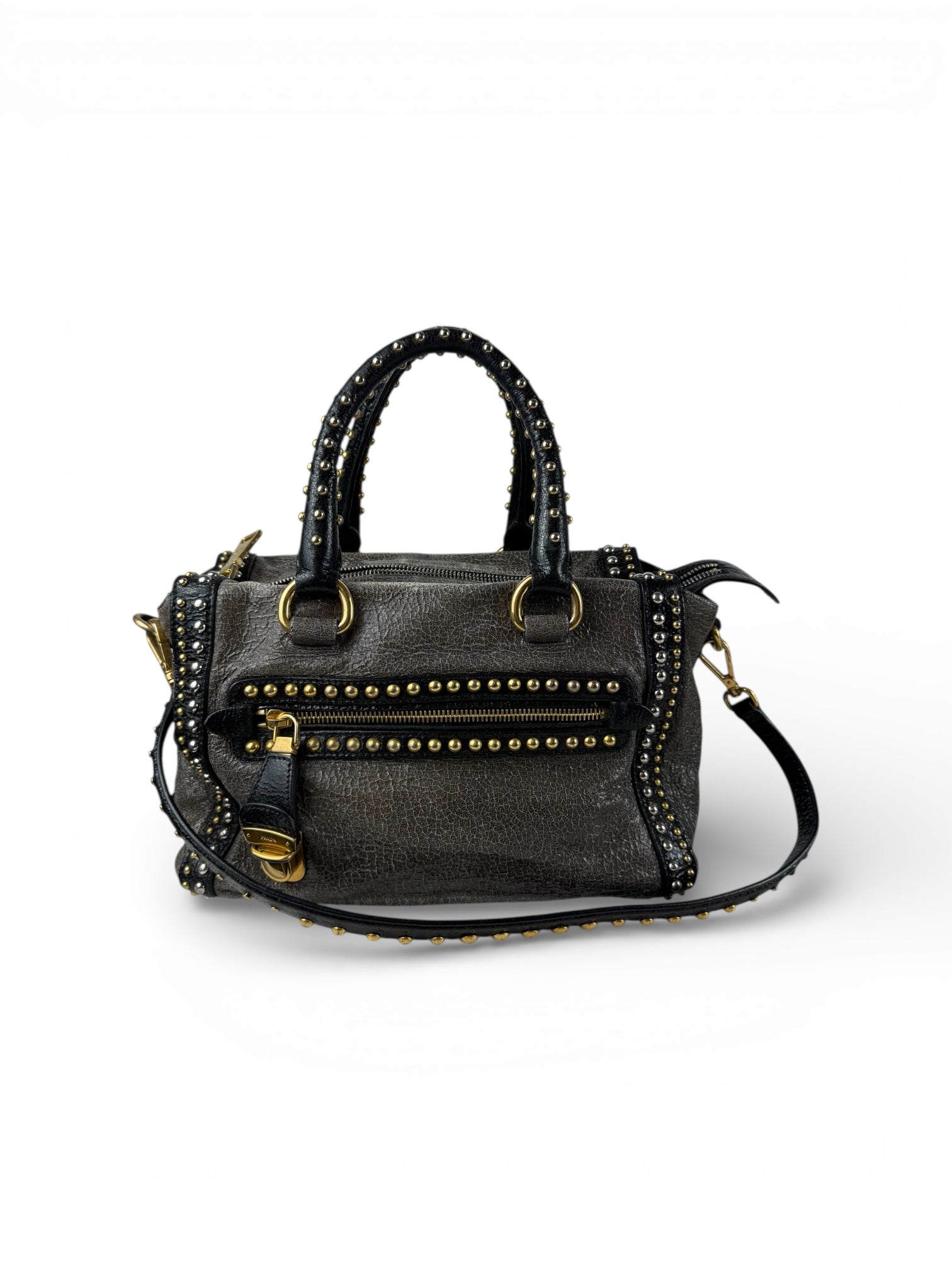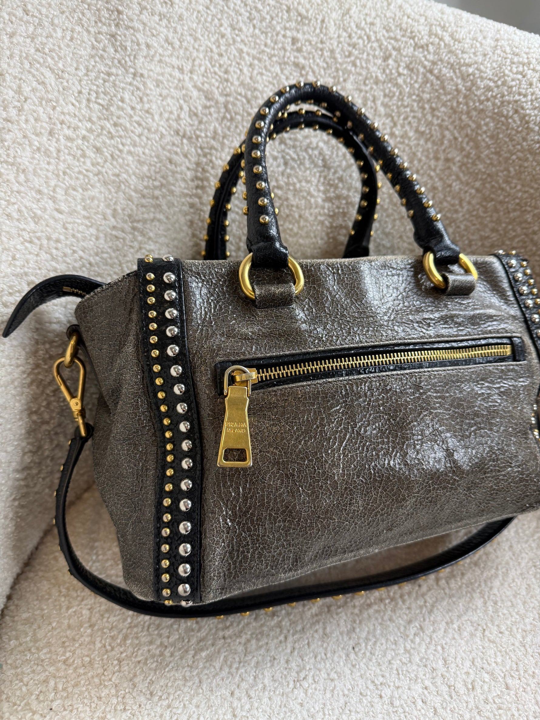 2010s Prada Studded 2Way Vitello Shimmer Handbag