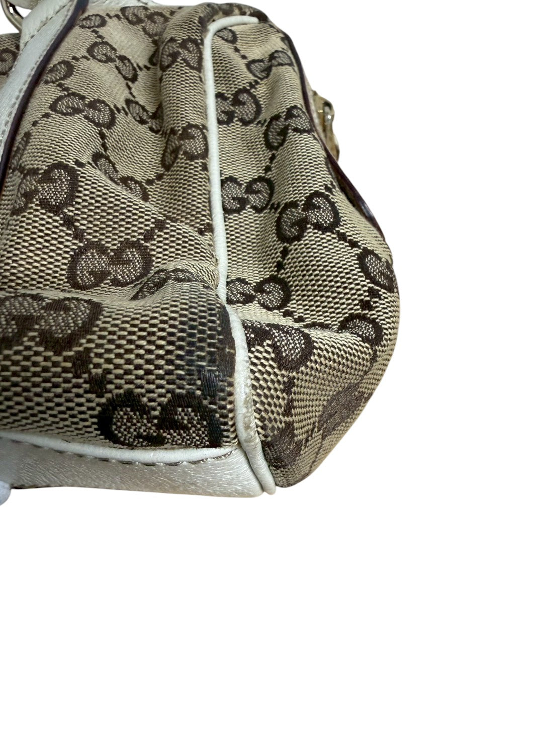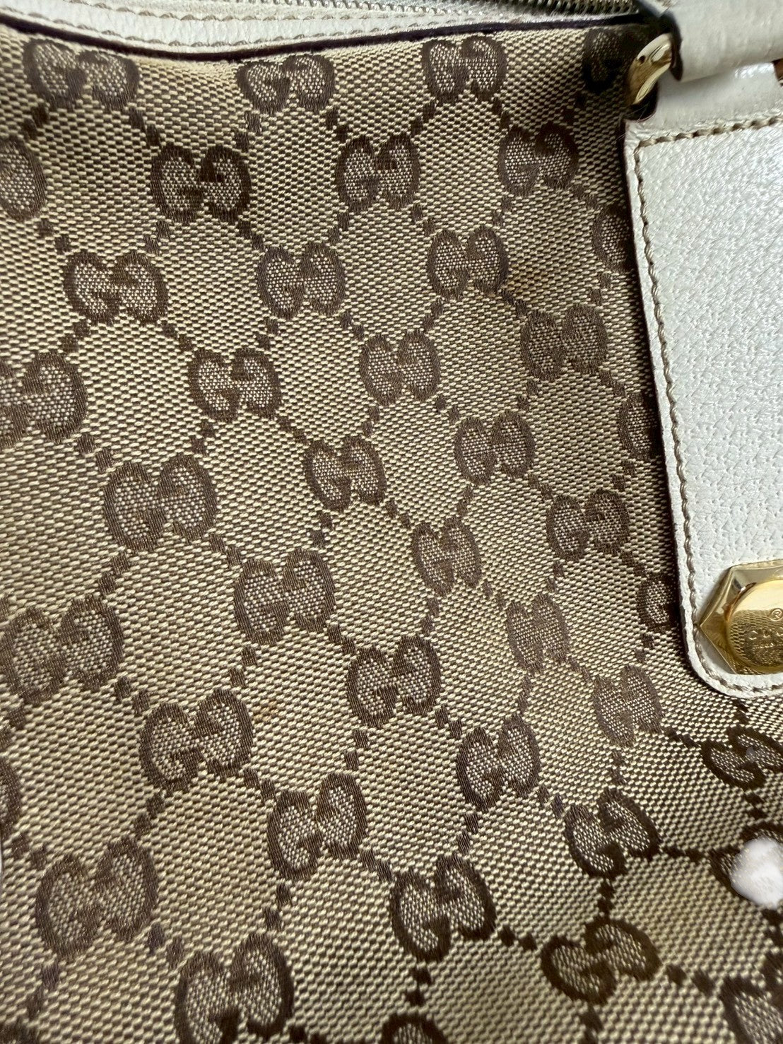 A few small marks to the canvas. Some scuffing to corner edges of the bag.