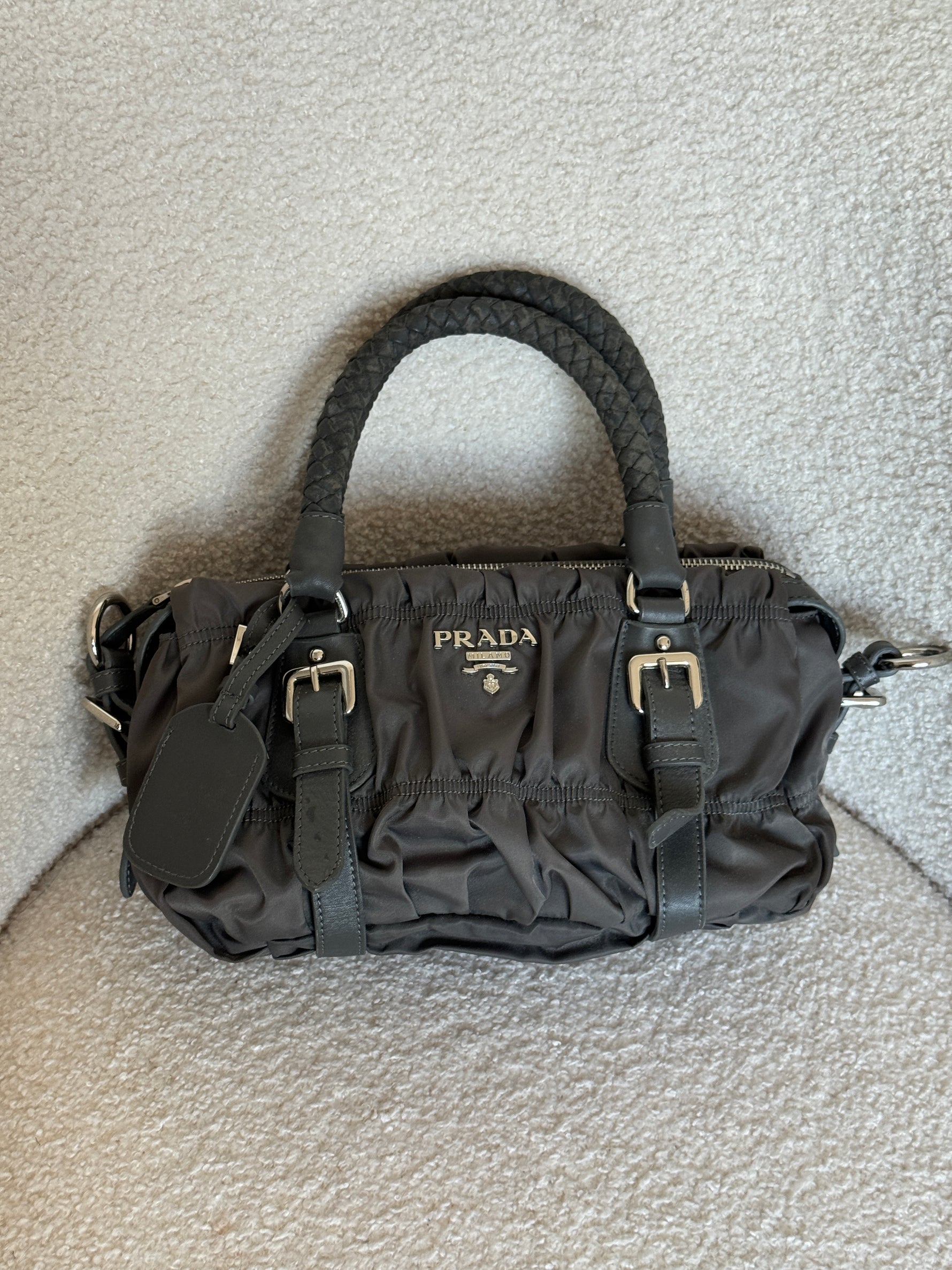 Vintage 2000s Prada Tessuto Nylon Grey Handbag