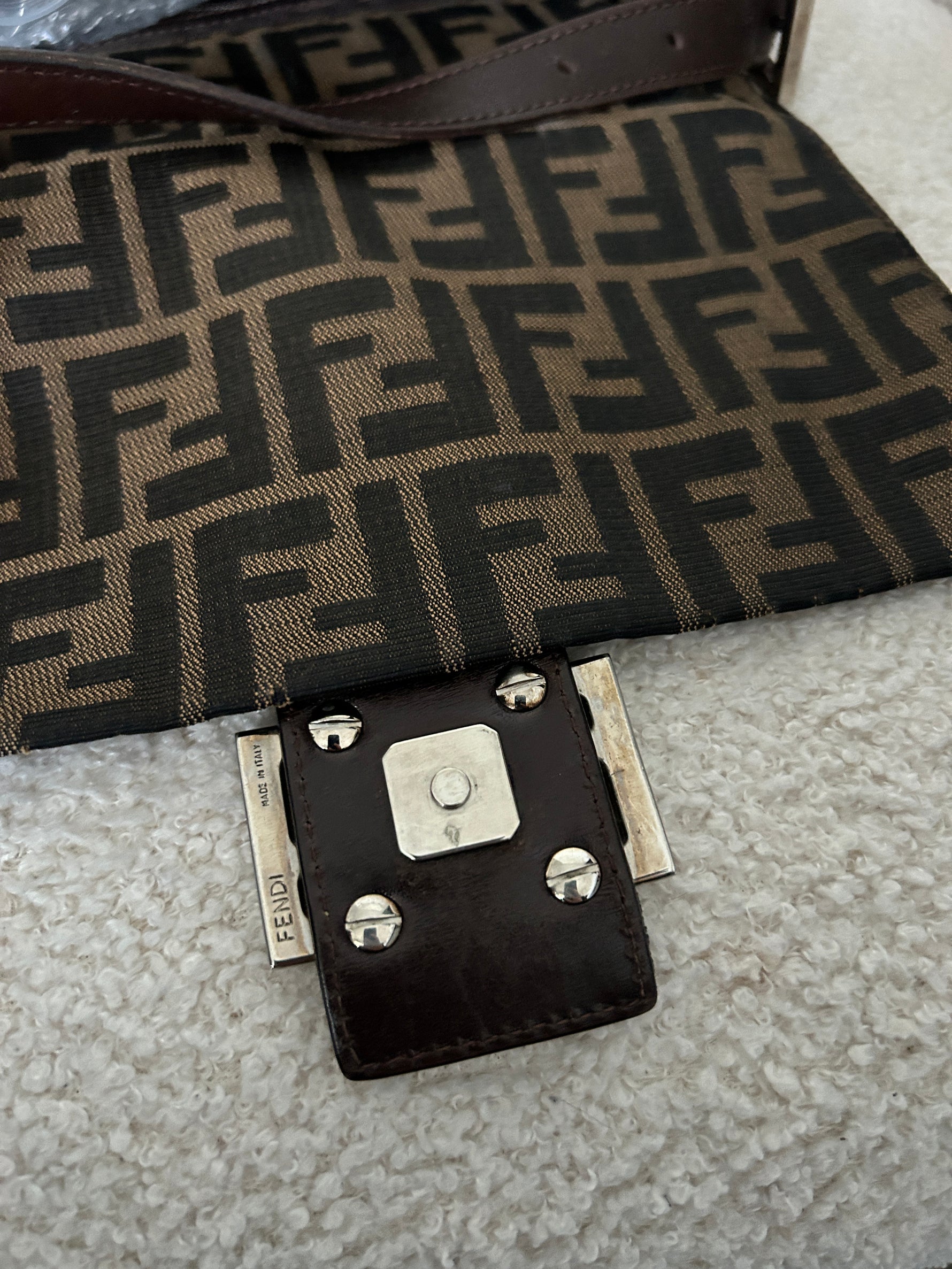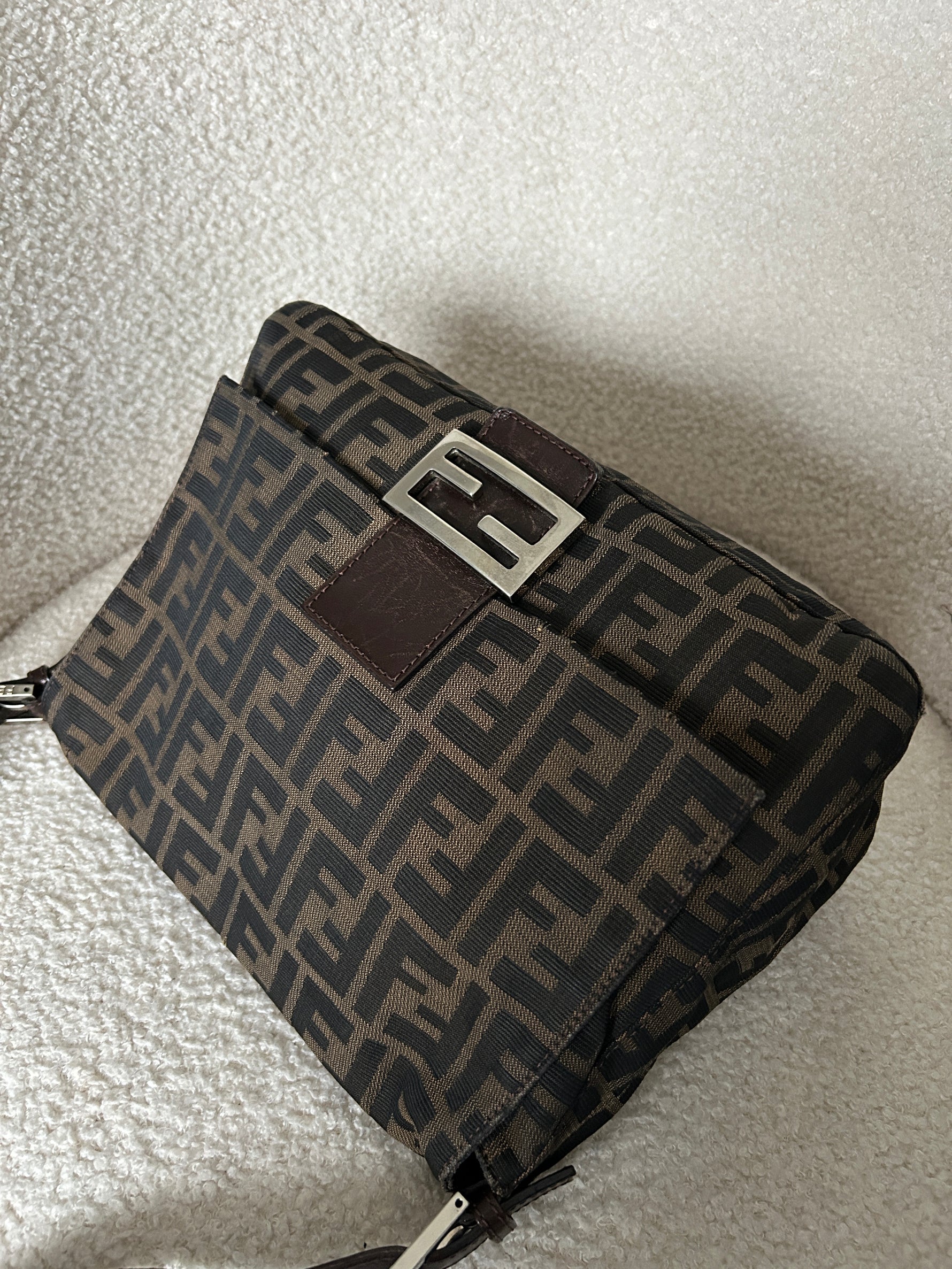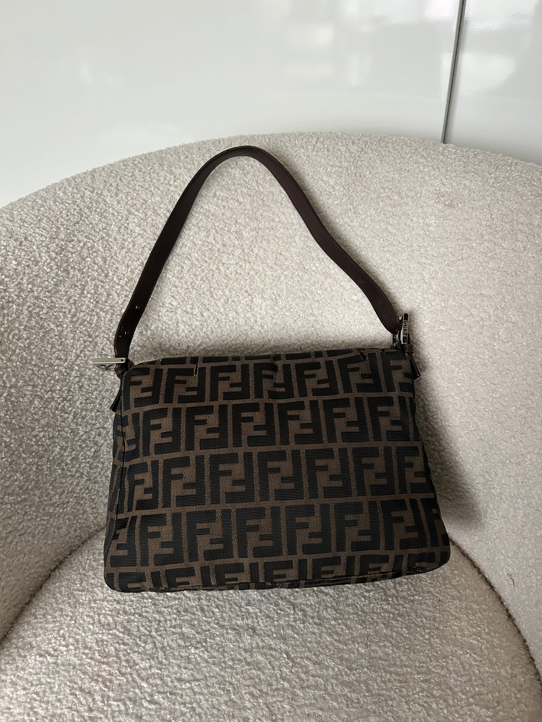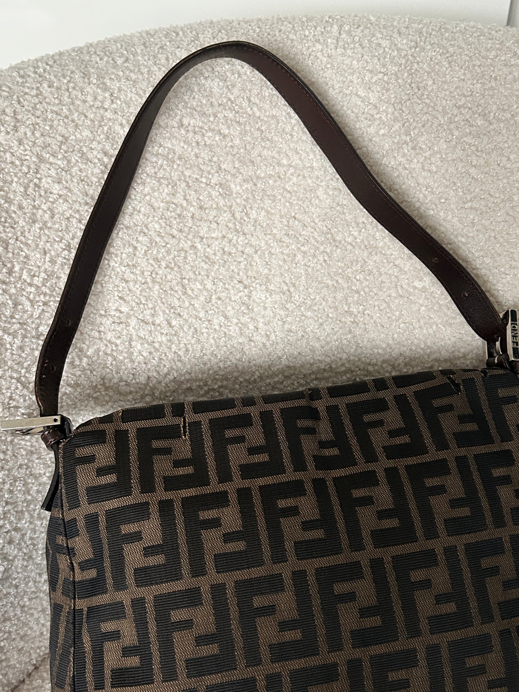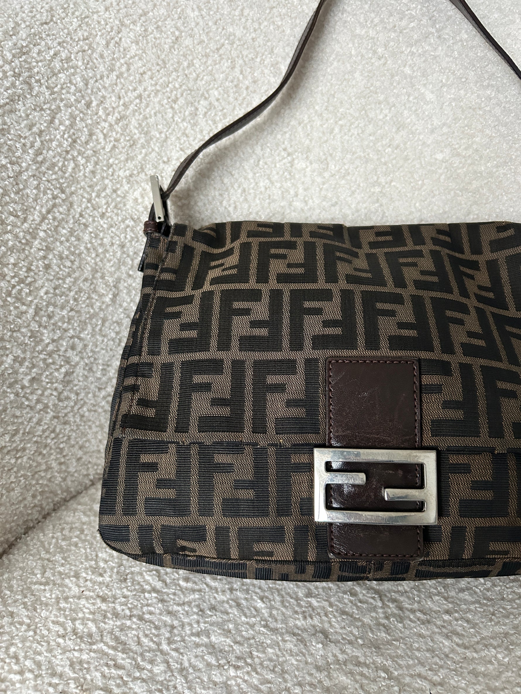 Vintage 90s Fendi Zucca Classic Mamma Baguette Shoulder Bag