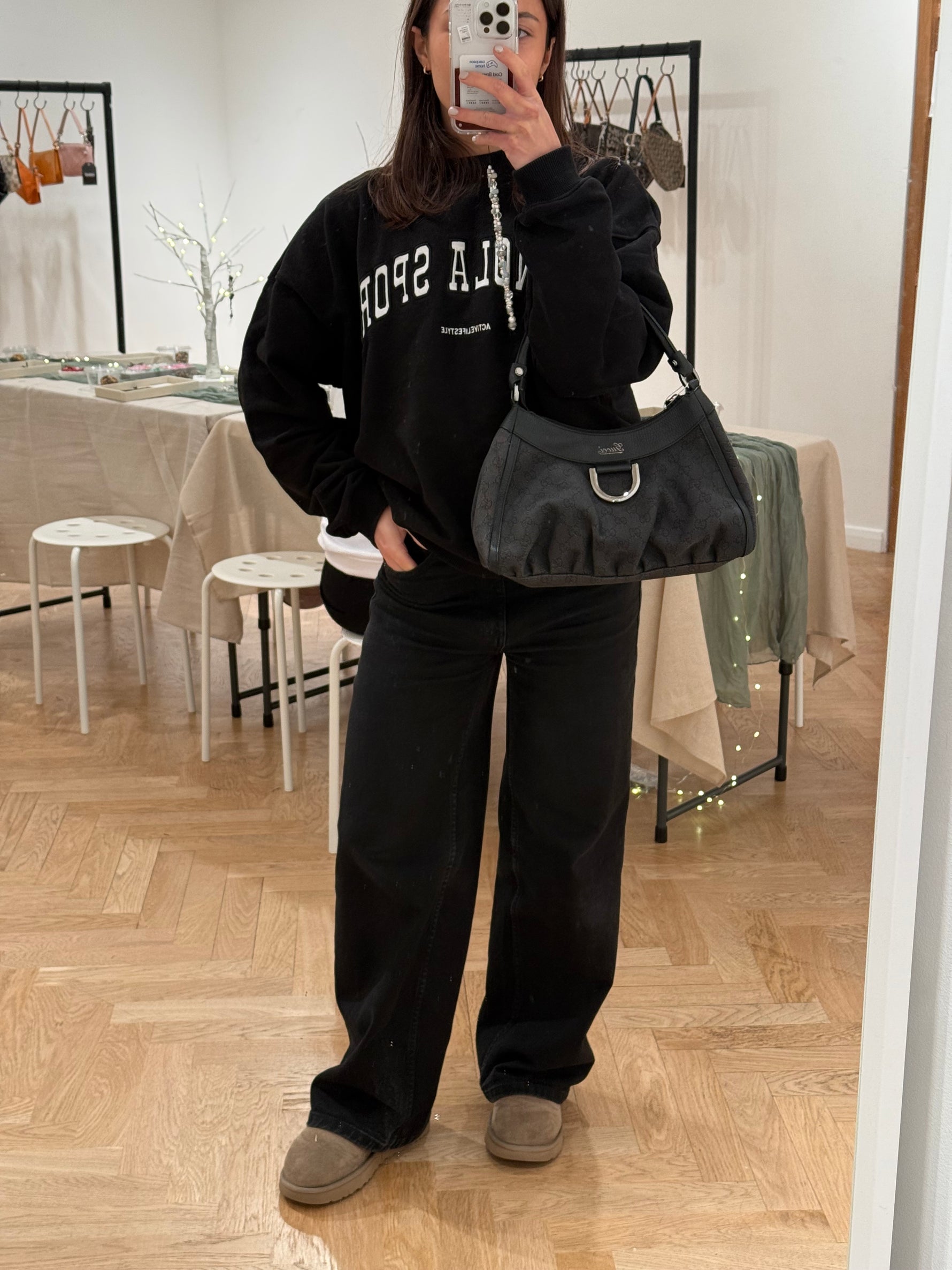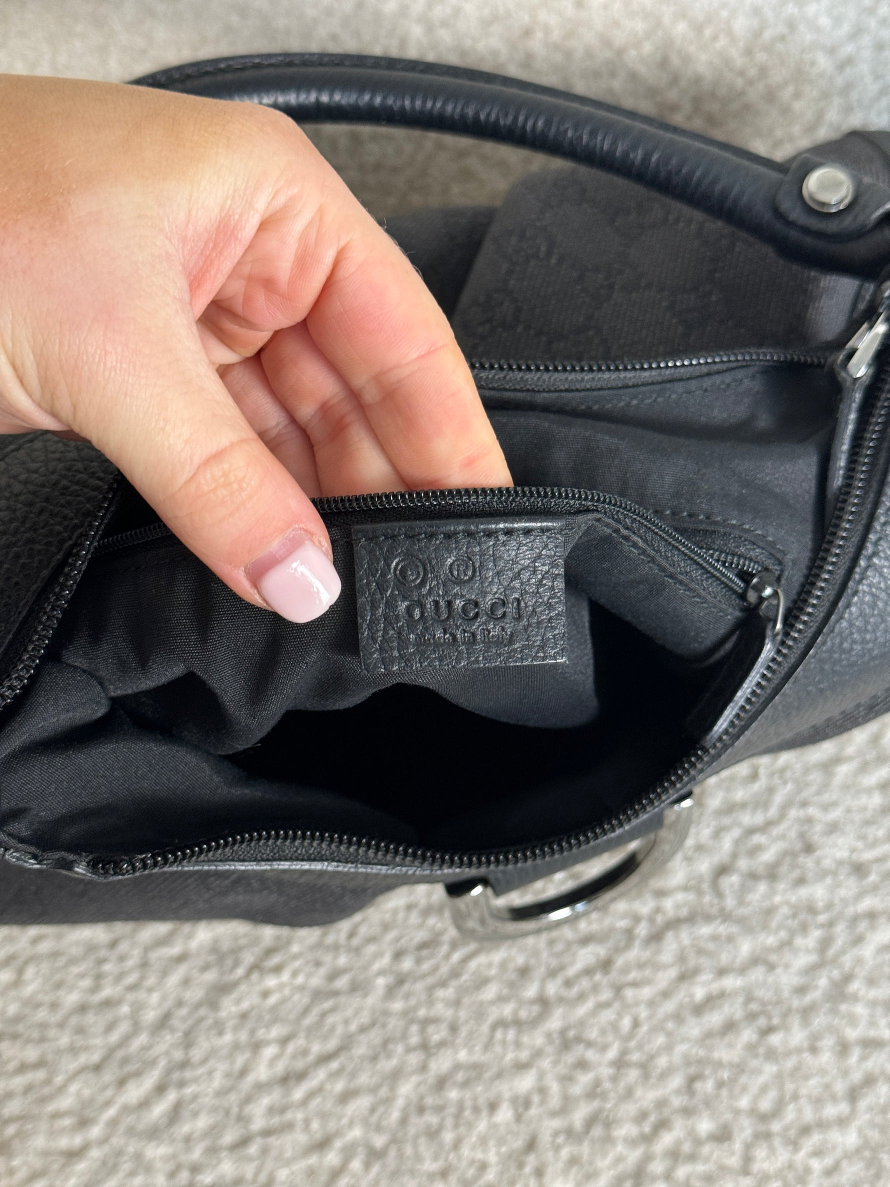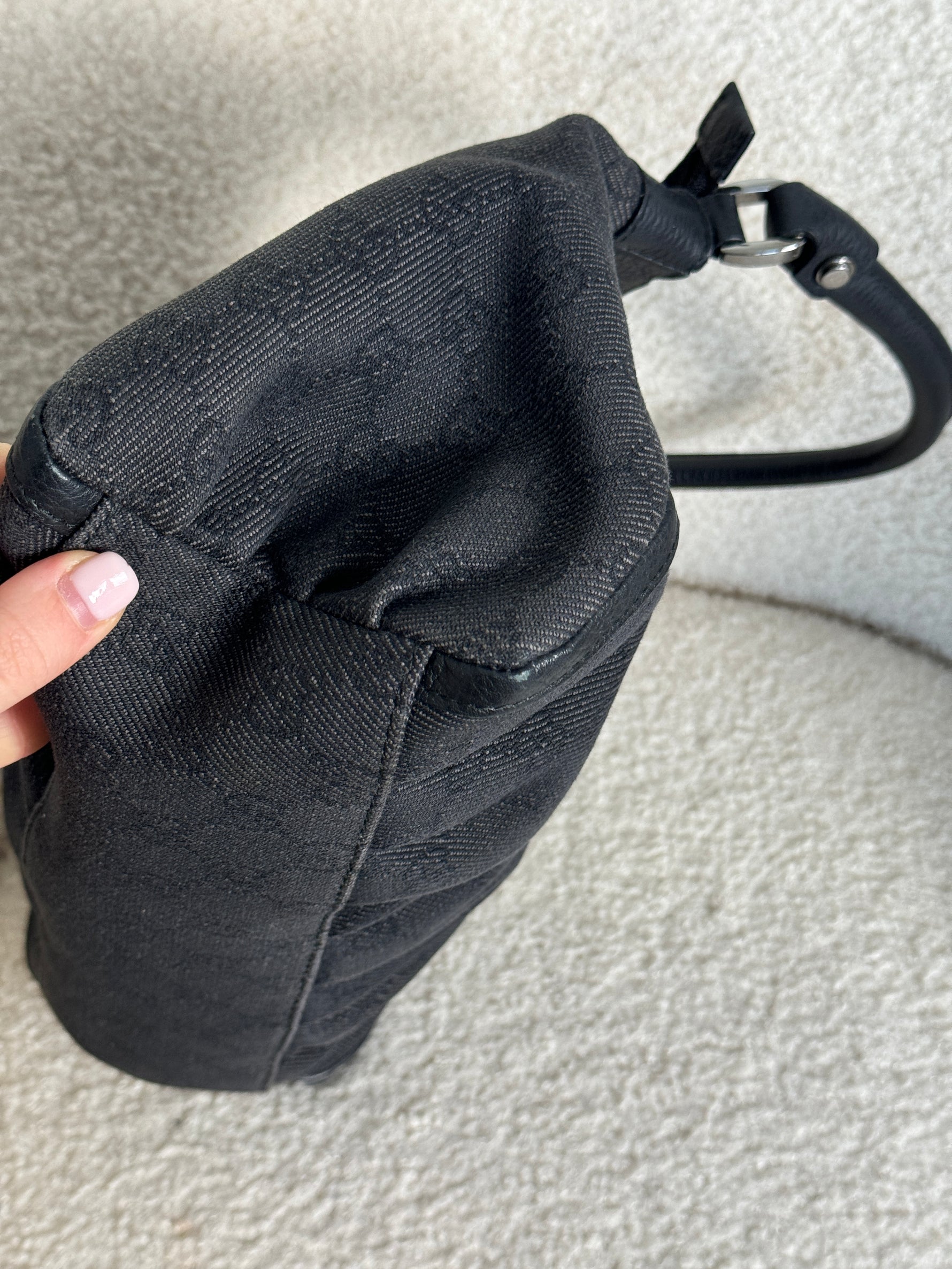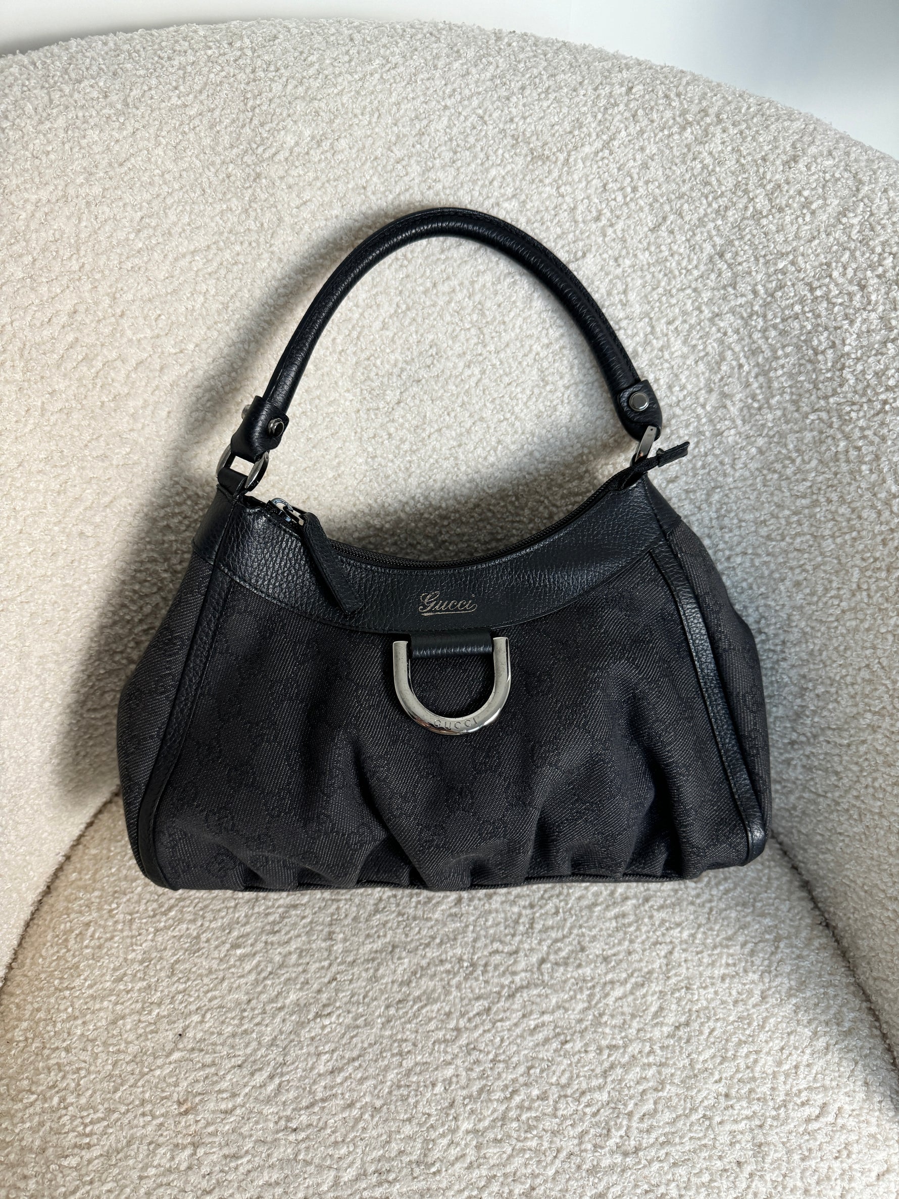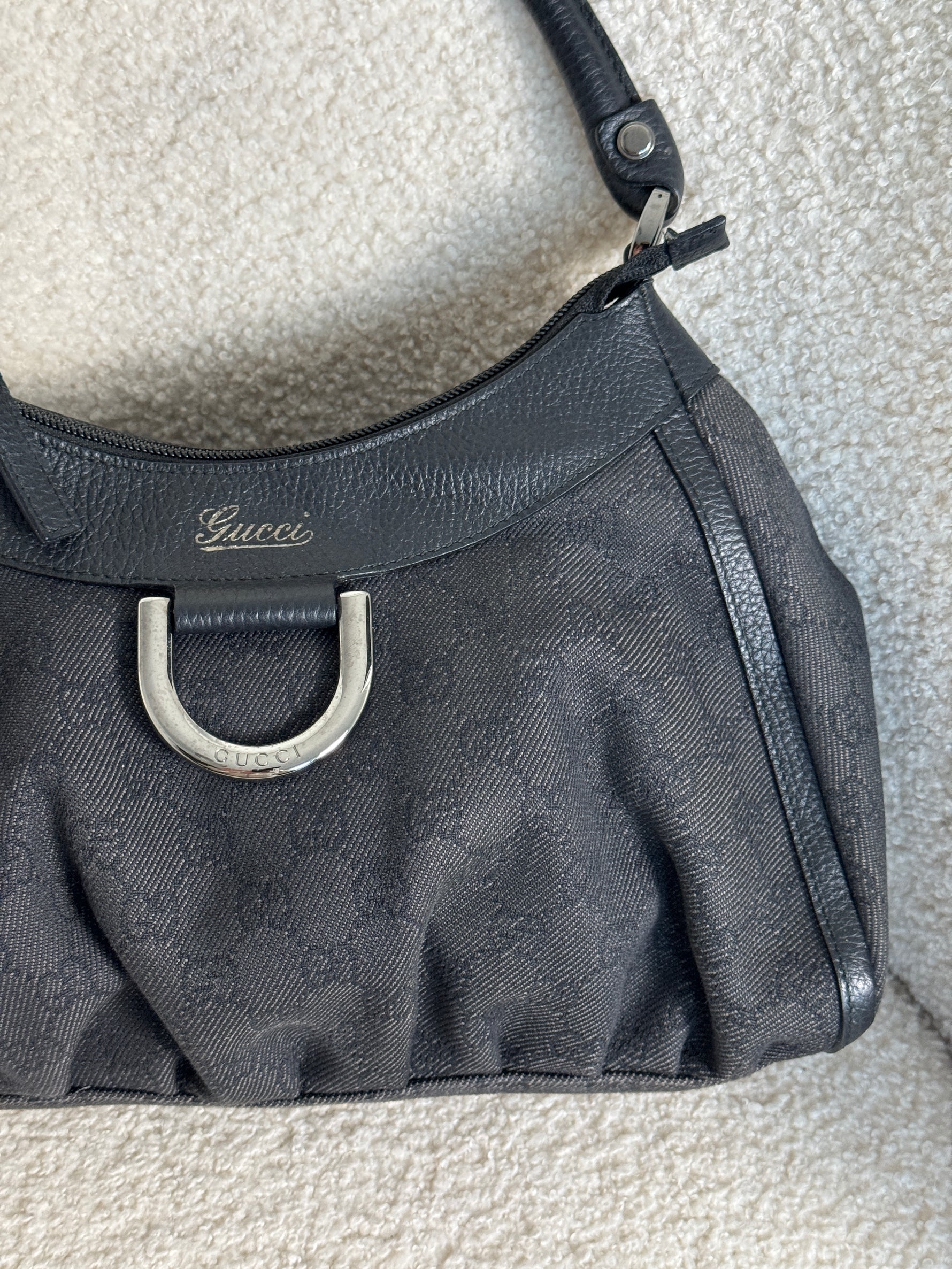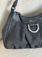 Vintage 90s Gucci Monogram Black Denim Mini D-Ring Shoulder Bag