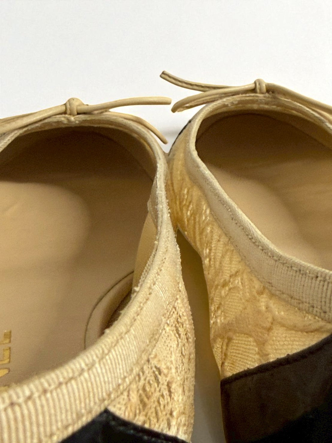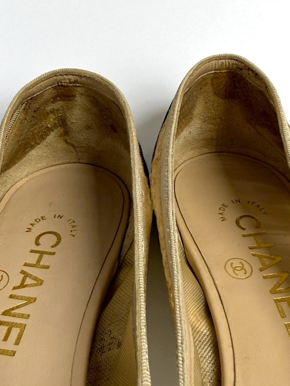 Interior of the shoes have some marks and signs of wear, particularly around the inside back of the heel.