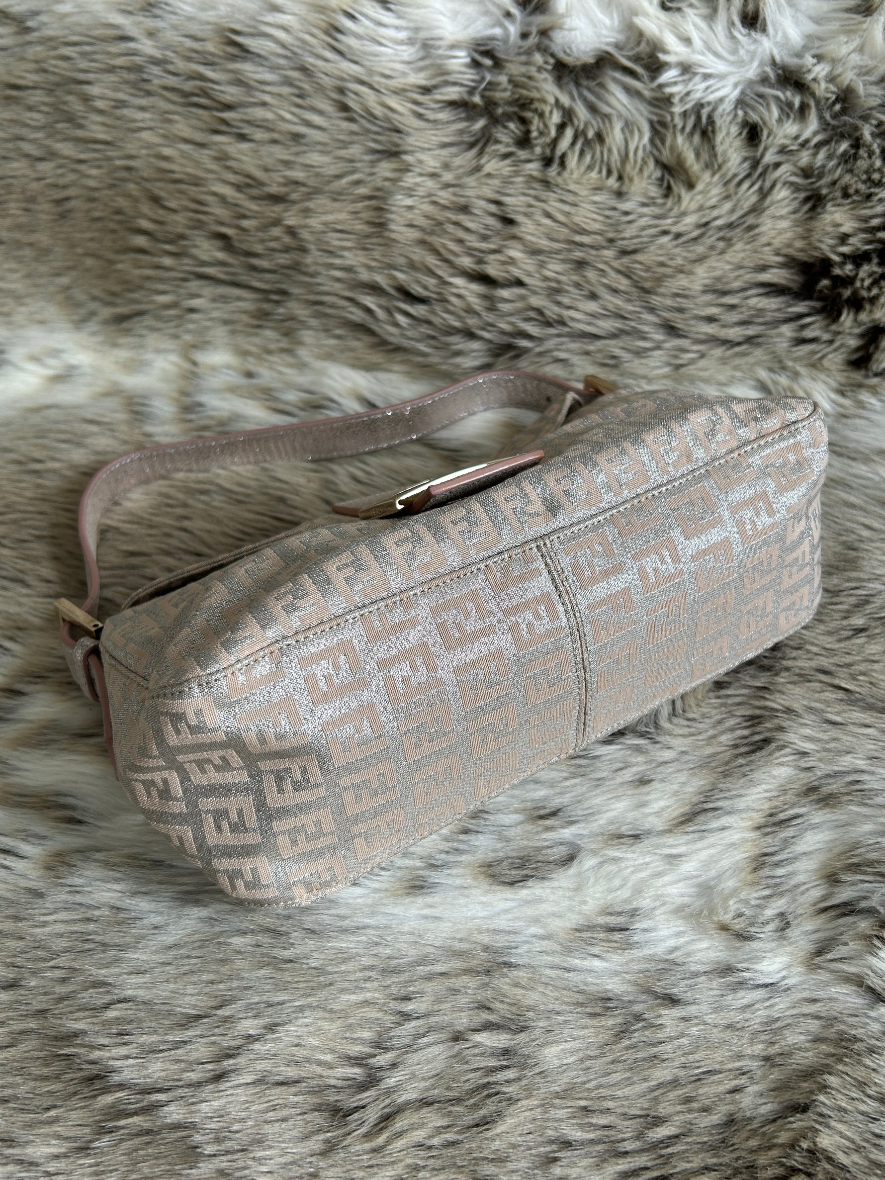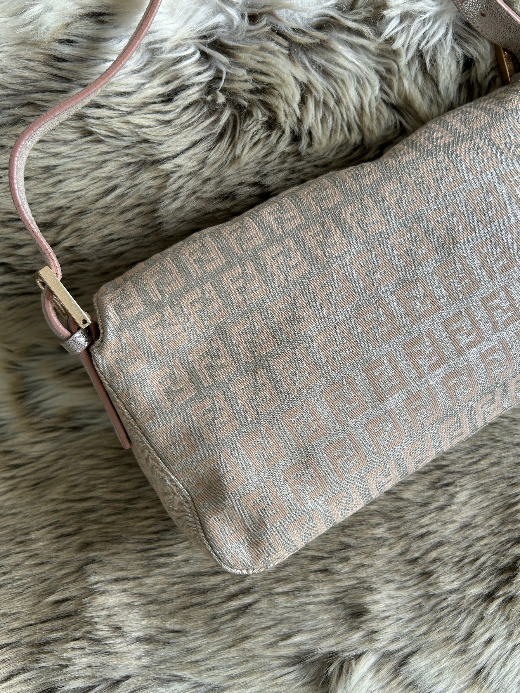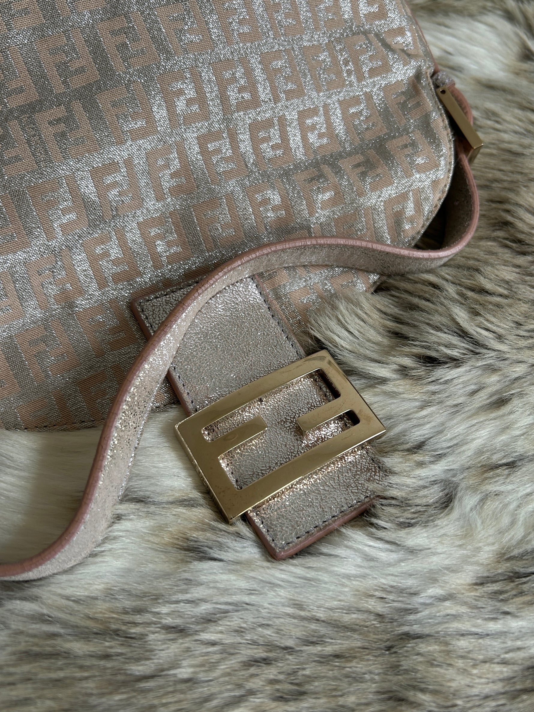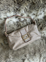 Vintage Fendi Zucca Metallic Baguette Shoulder Bag 90s