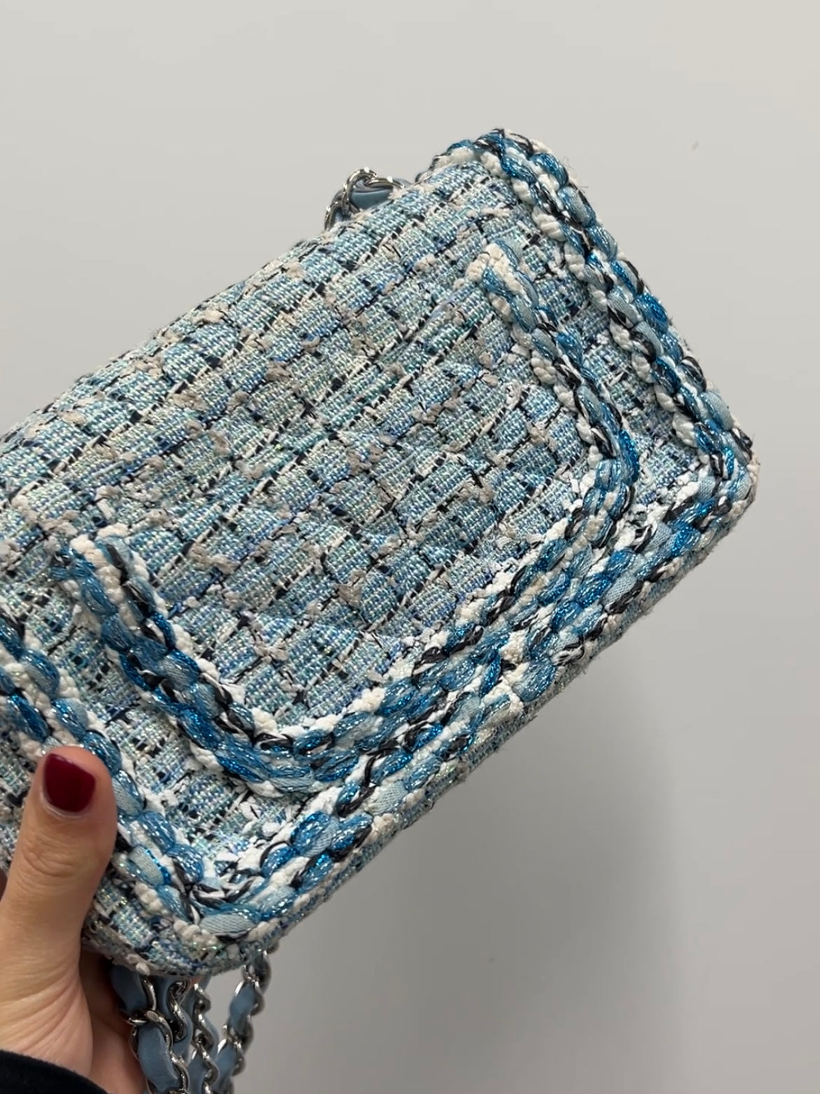 Chanel Tweed 20 Classic Flap Blue Chain Shoulder Bag