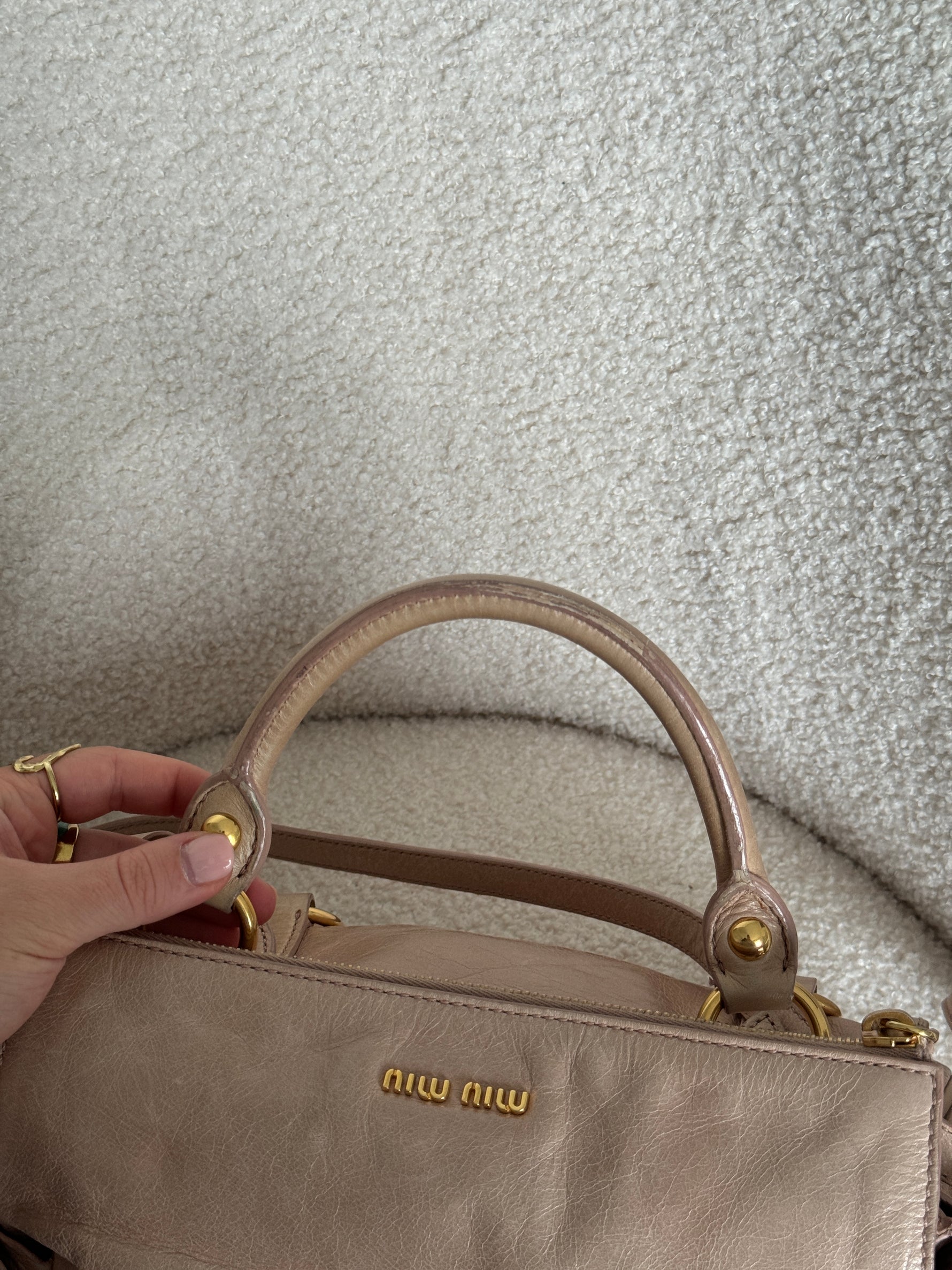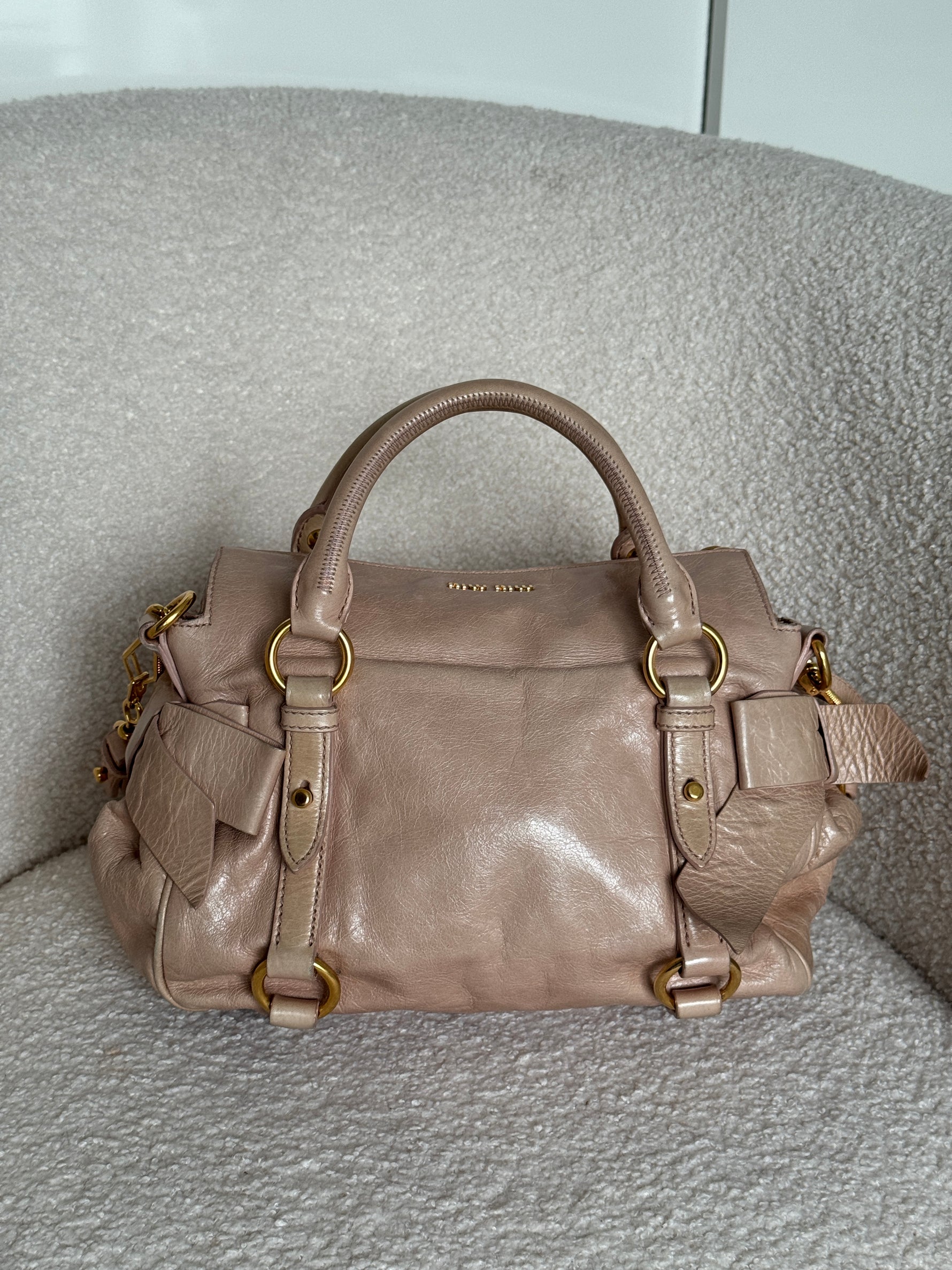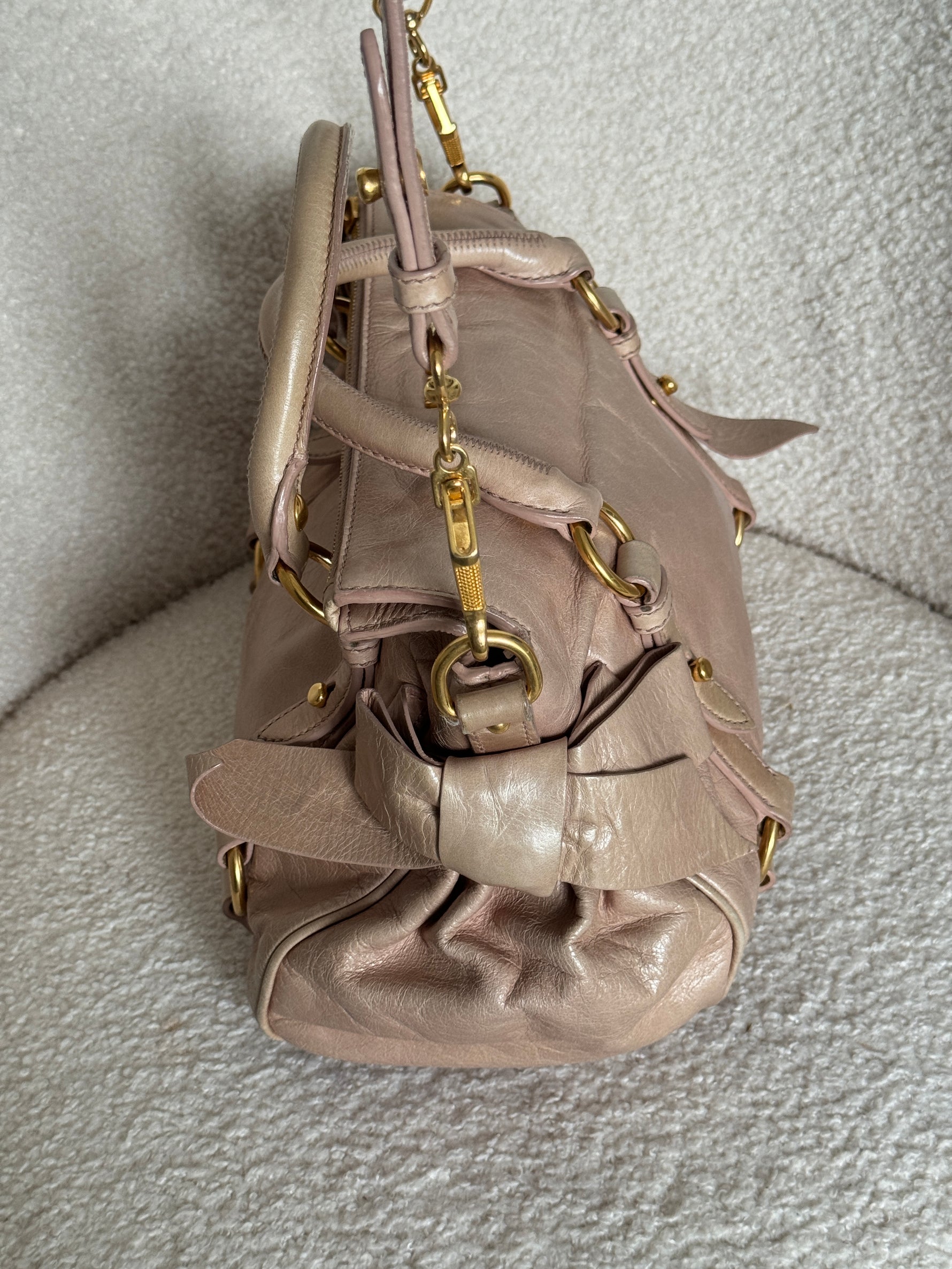 2012 Miu Miu Vitello Lux Bow Beige 2way Handbag