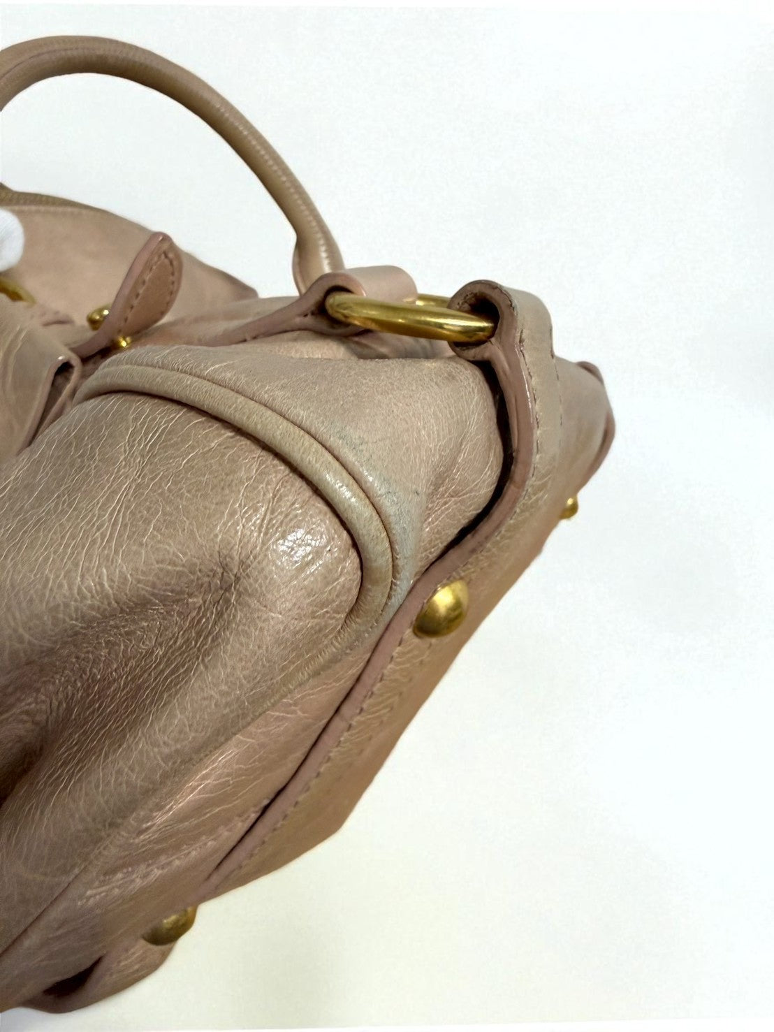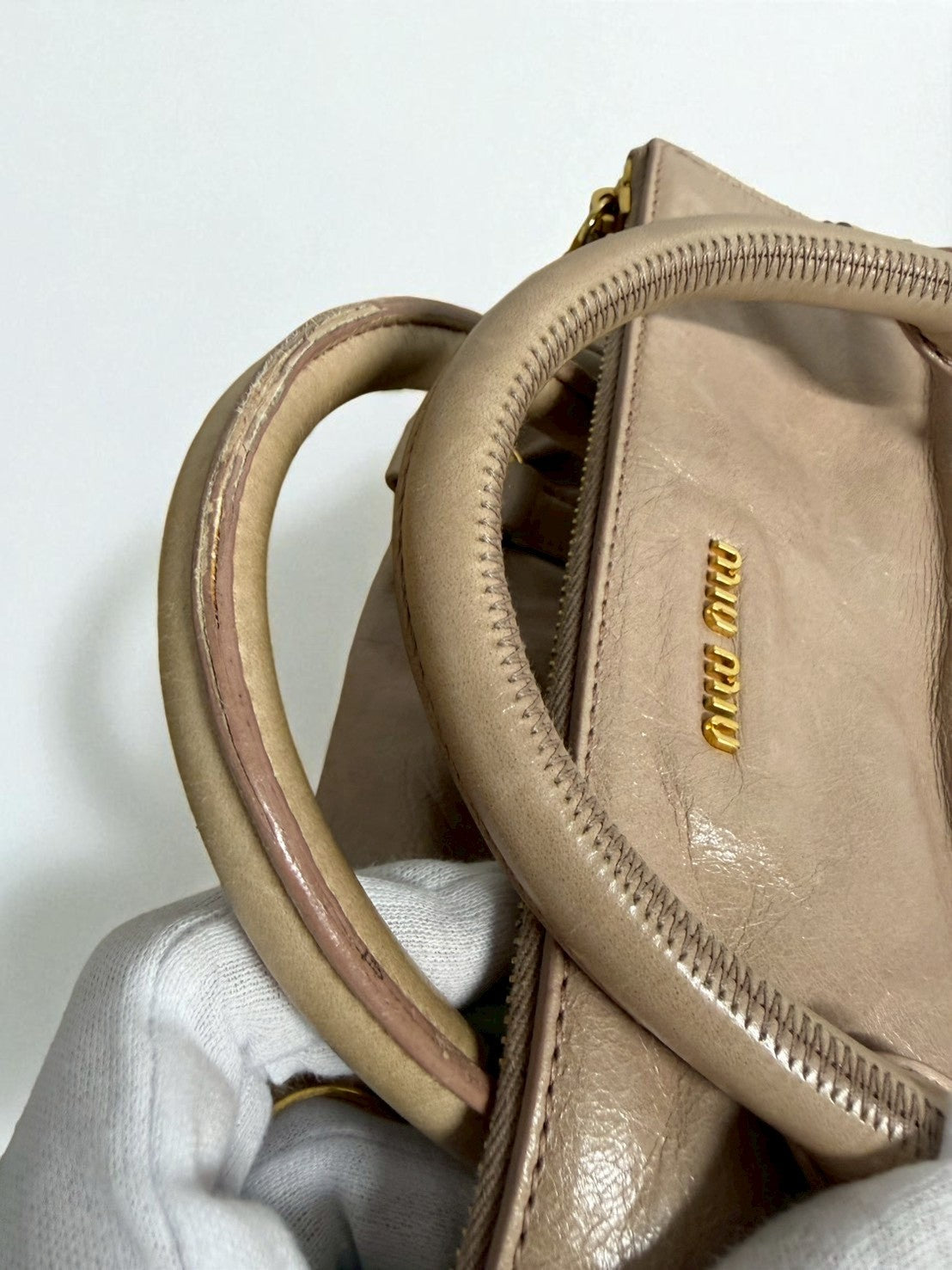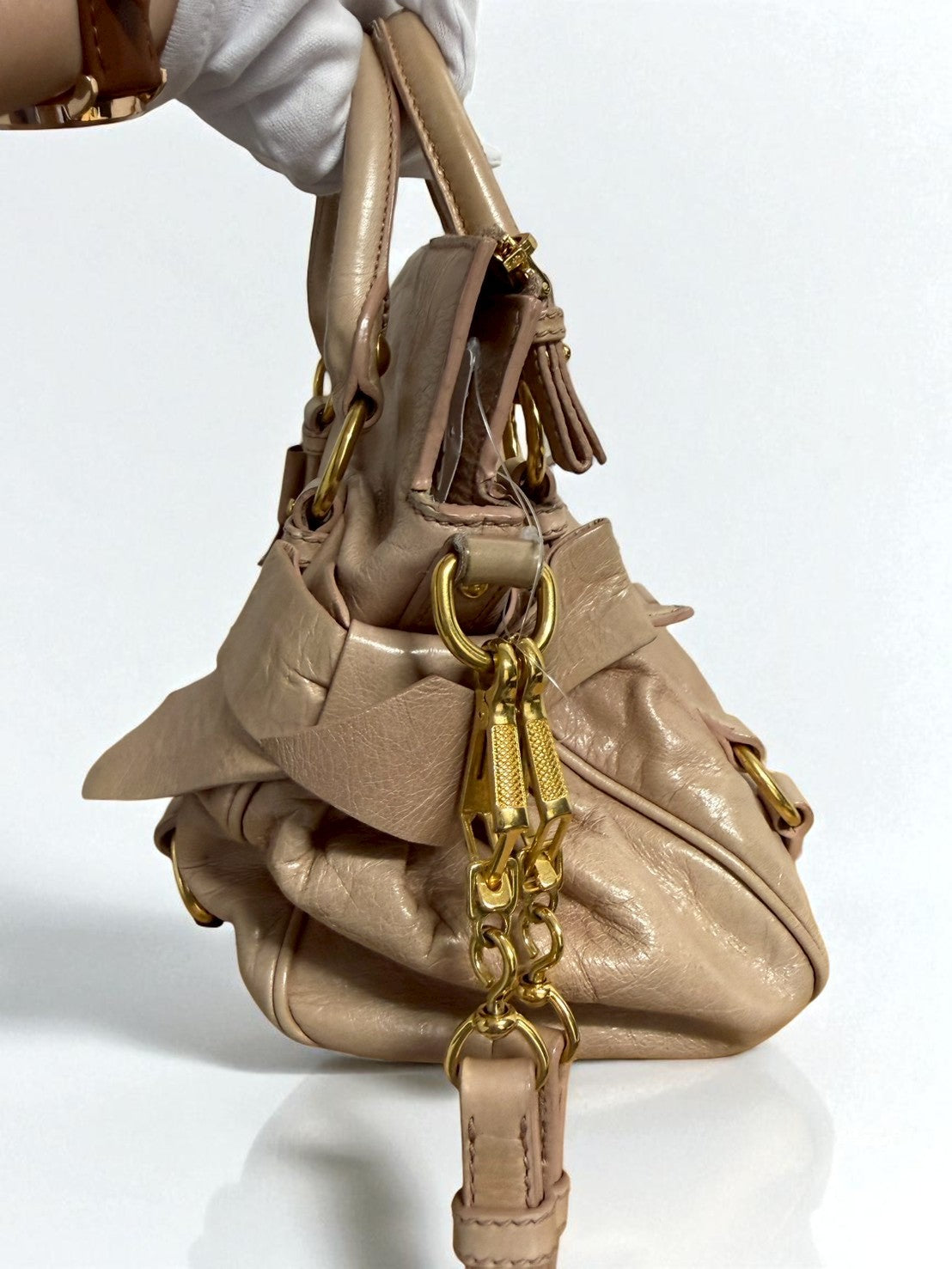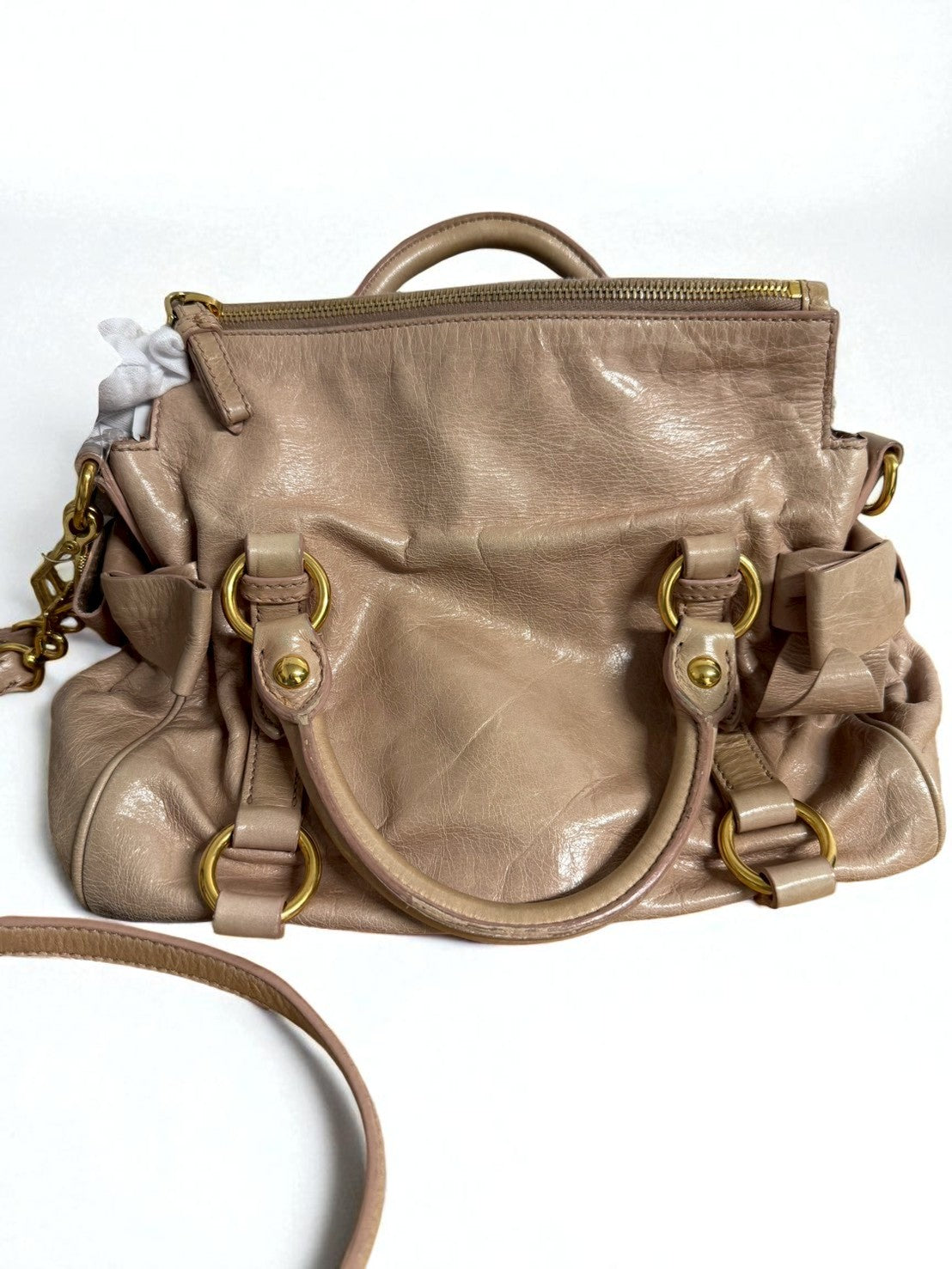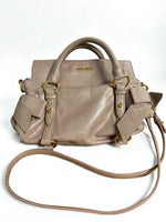 Miu Miu Vitello Lux Bow Satchel Beige 2way Handbag